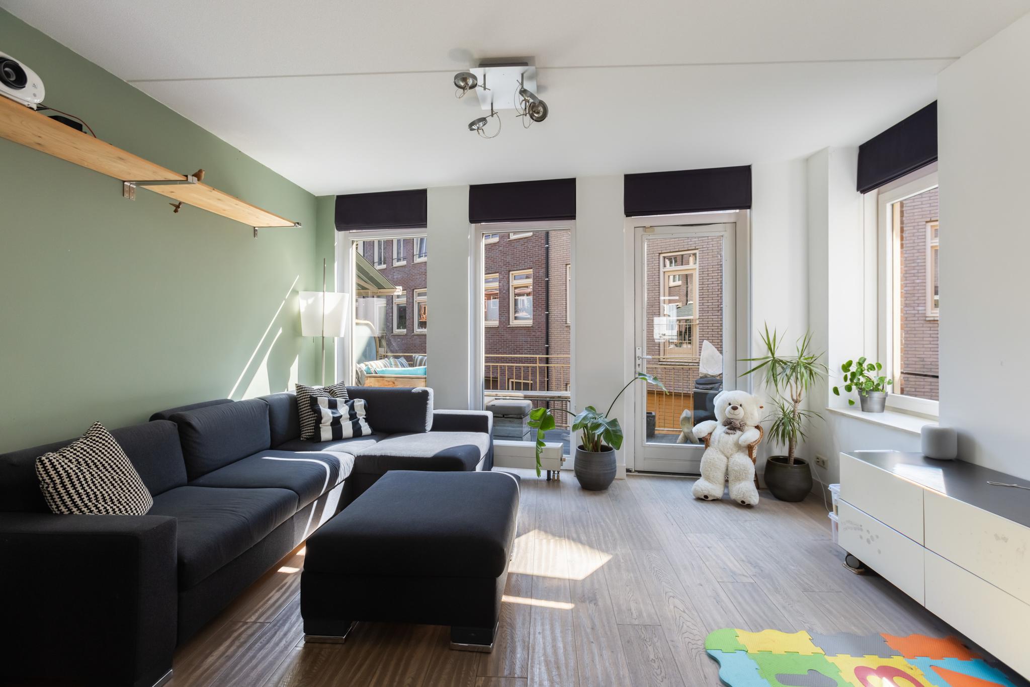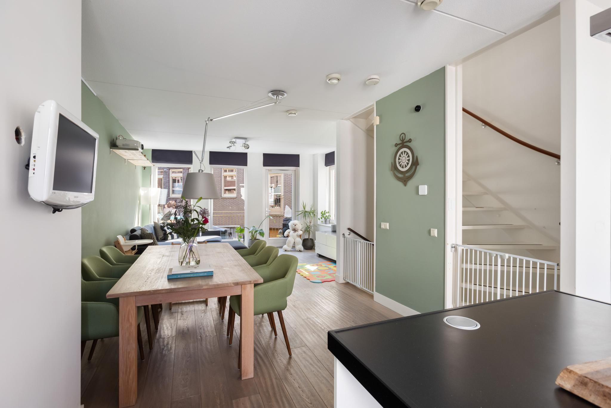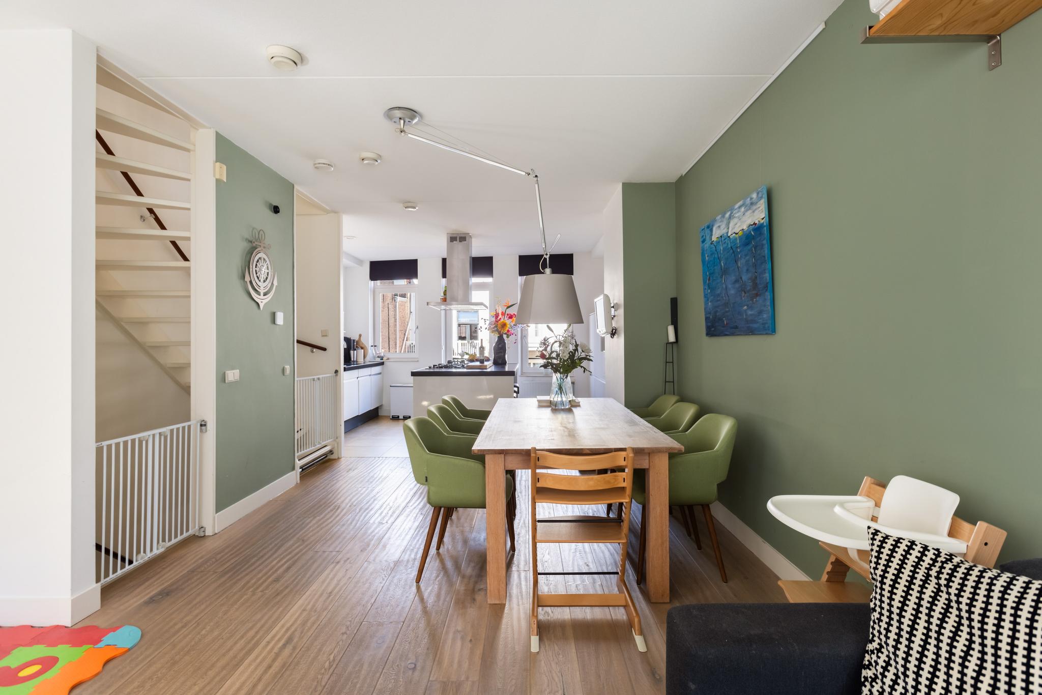 De gehele eerste verdieping is in gebruik als woonruimte met ruime open keuken en een fijn balkon gelegen op het zuiden. Door de ligging op de 1e verdieping heeft de woonverdieping veel lichtinval wat de ruimte zeer behaaglijk maakt.
