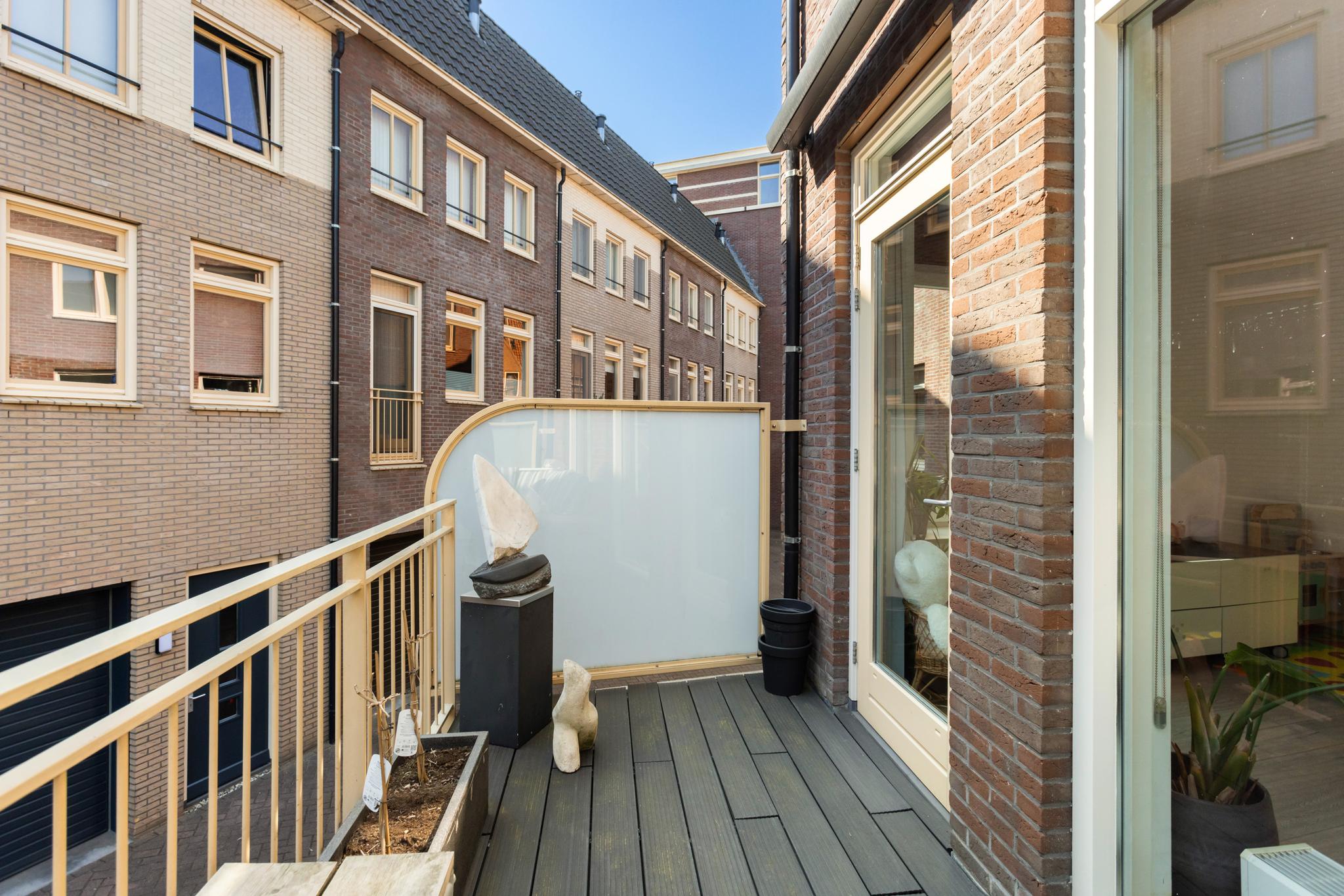 Het ruime balkon is gelegen op het zuiden en voorzien van kunststof vlonderpanelen en een elektrisch zonnescherm. Doordat het balkon boven het binnenterrein gelegen is, zit je hier heerlijk rustig.