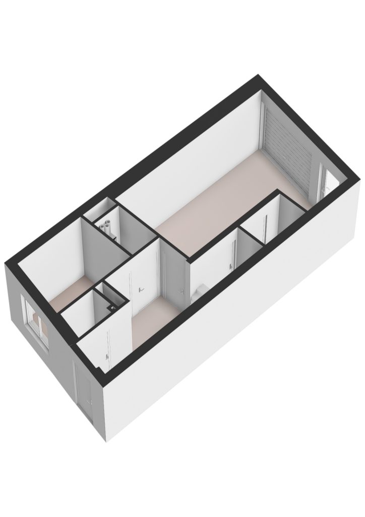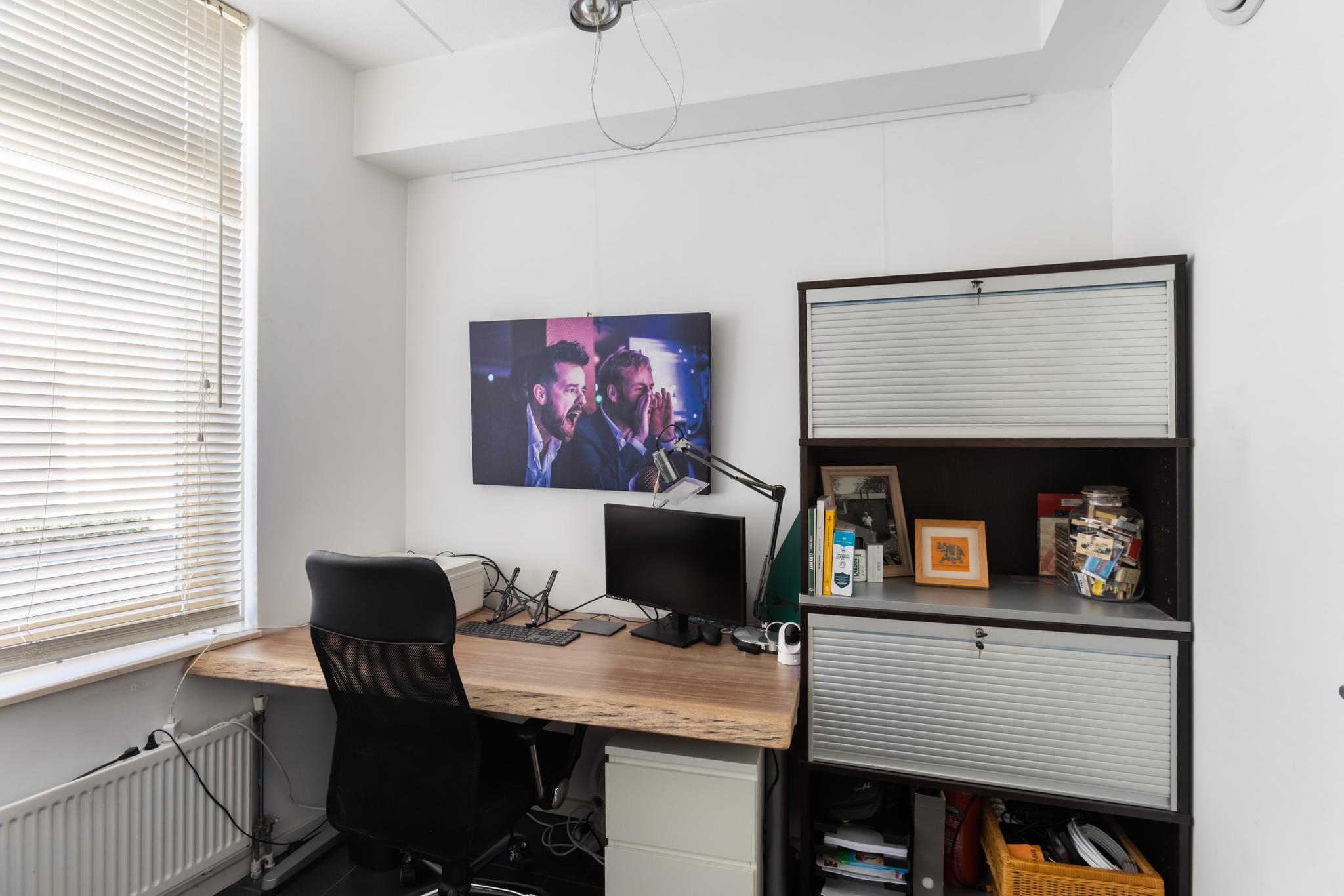 De kamer aan voorzijde wordt momenteel gebruikt als werkkamer, maar kan ook goed worden gebruikt als slaapkamer. Deze kamer is voorzien van een vast bureau, een tegelvloer en stucwerk wandafwerking.