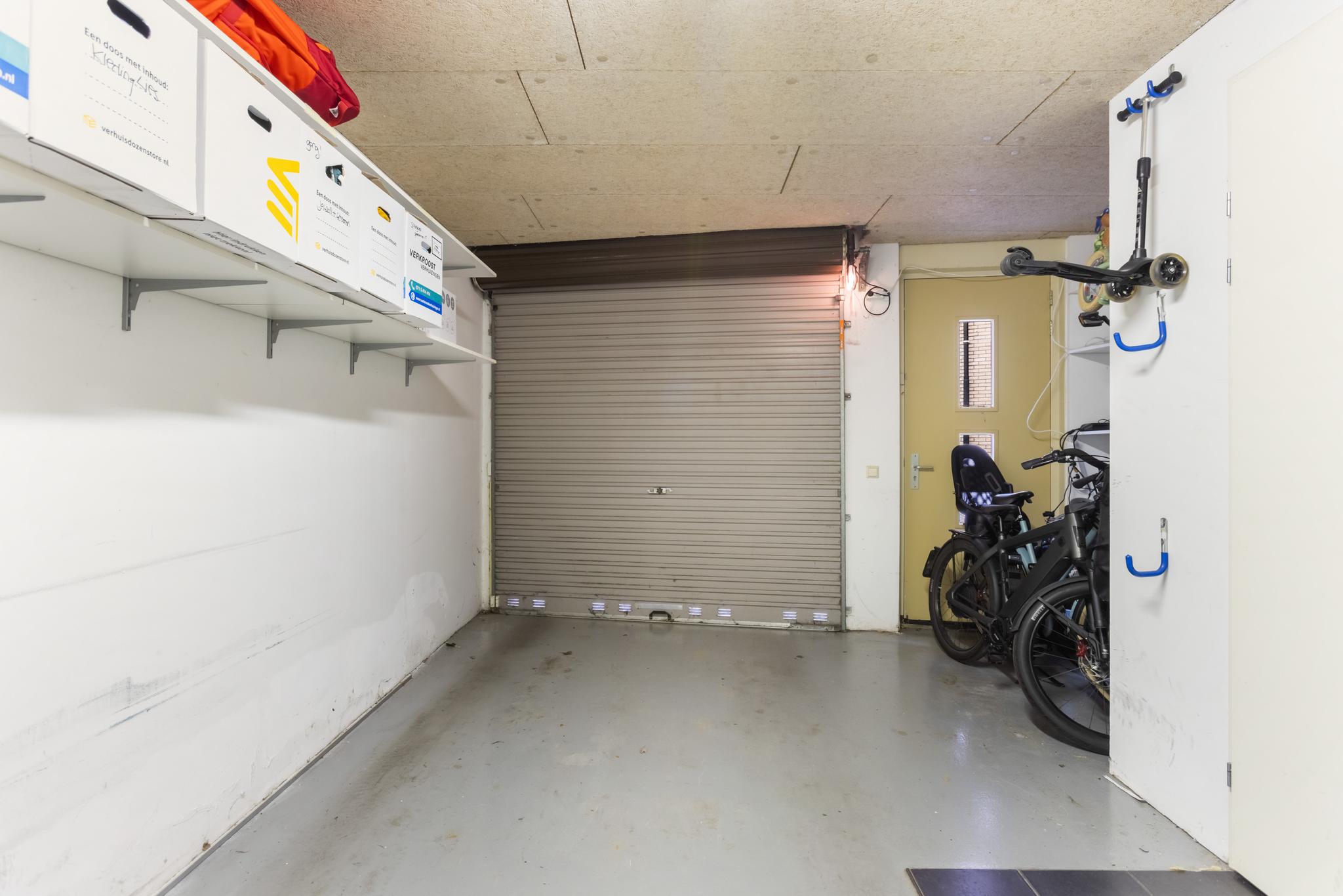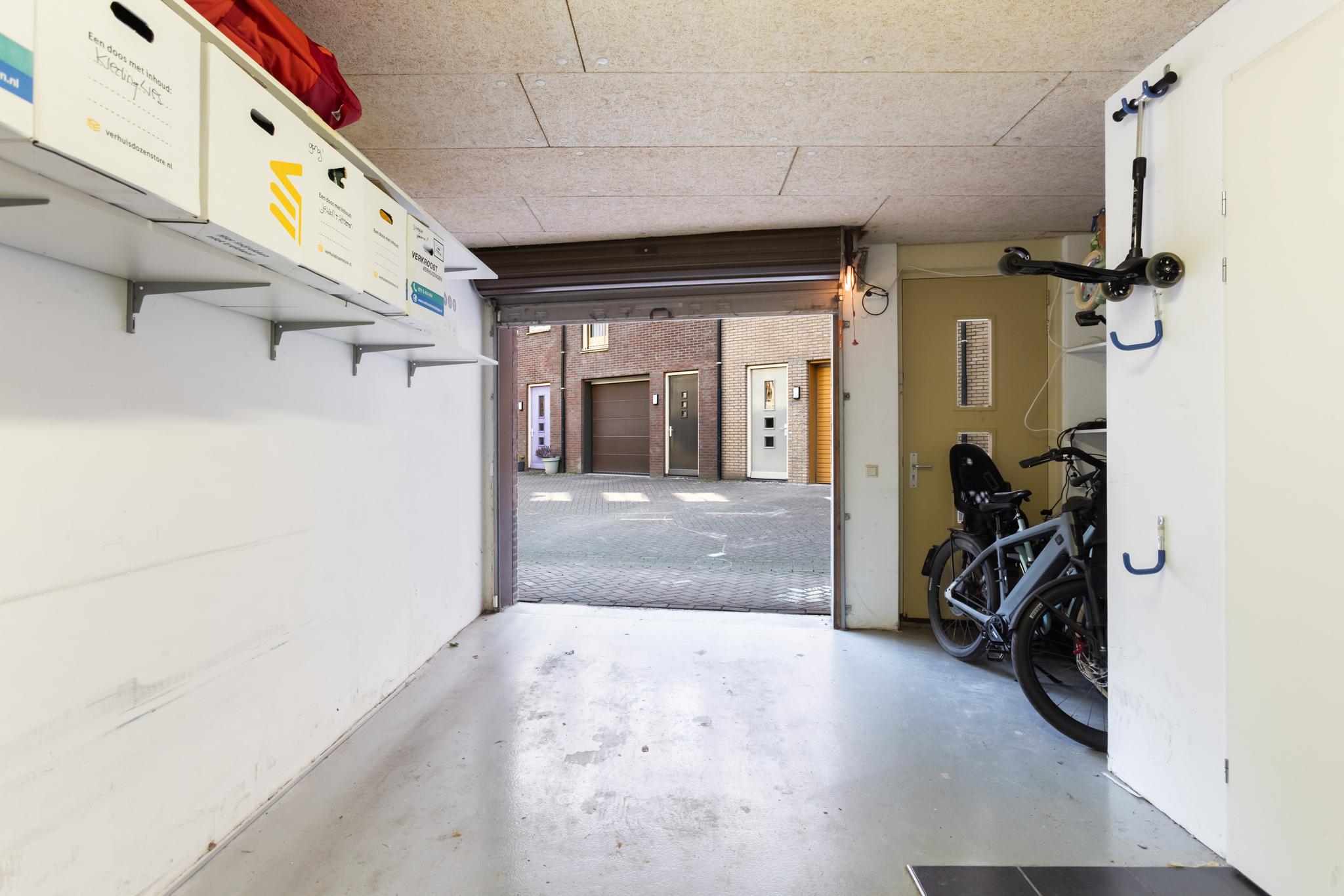 Heel bijzonder voor deze centrale locatie is dat de woning beschikt over een ruime inpandige garage. Naast een ruime parkeerplek vinden we hier enorm veel opslagruimte voor bijvoorbeeld je fiets en/of scooter. De garage is voorzien van een automatische roldeur, aparte loopdeur, laadpunt voor een elektrische auto en verwarming en is afgewerkt met een betonvloer met deels een tegelvloer. Je bereikt de garage via het mandelige binnenterrein, te bereiken vanaf de Elfhuizen.