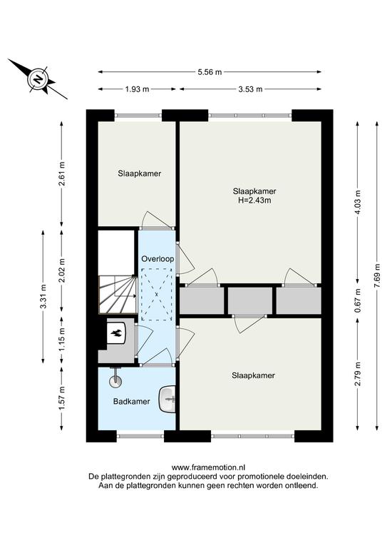 Slaapkamer 3 is gelegen aan de achterzijde.