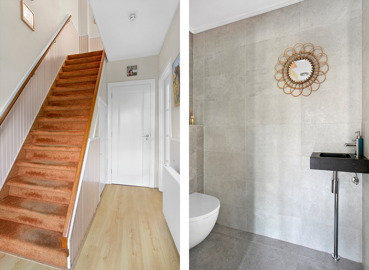 Ook hier is laminaat en behang gebruikt als afwerking.