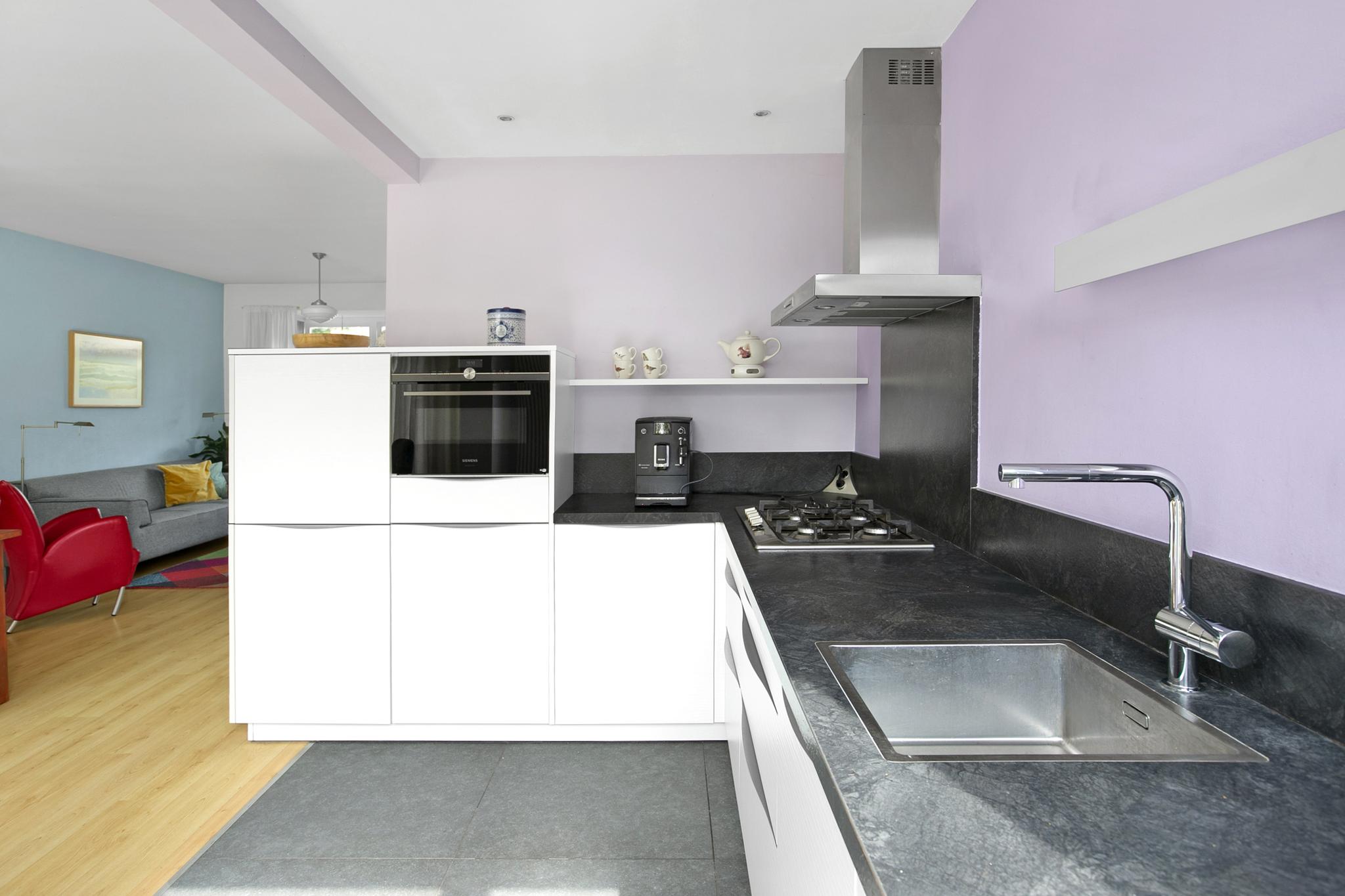 De keuken is in 2012 nieuw geplaatst en voorzien van een koelkast (2023 vervangen), vriezer, combi oven, vaatwasser (ook 2023 vervangen), spoelbak, rvs afzuigschouw en deur naar de tuin.