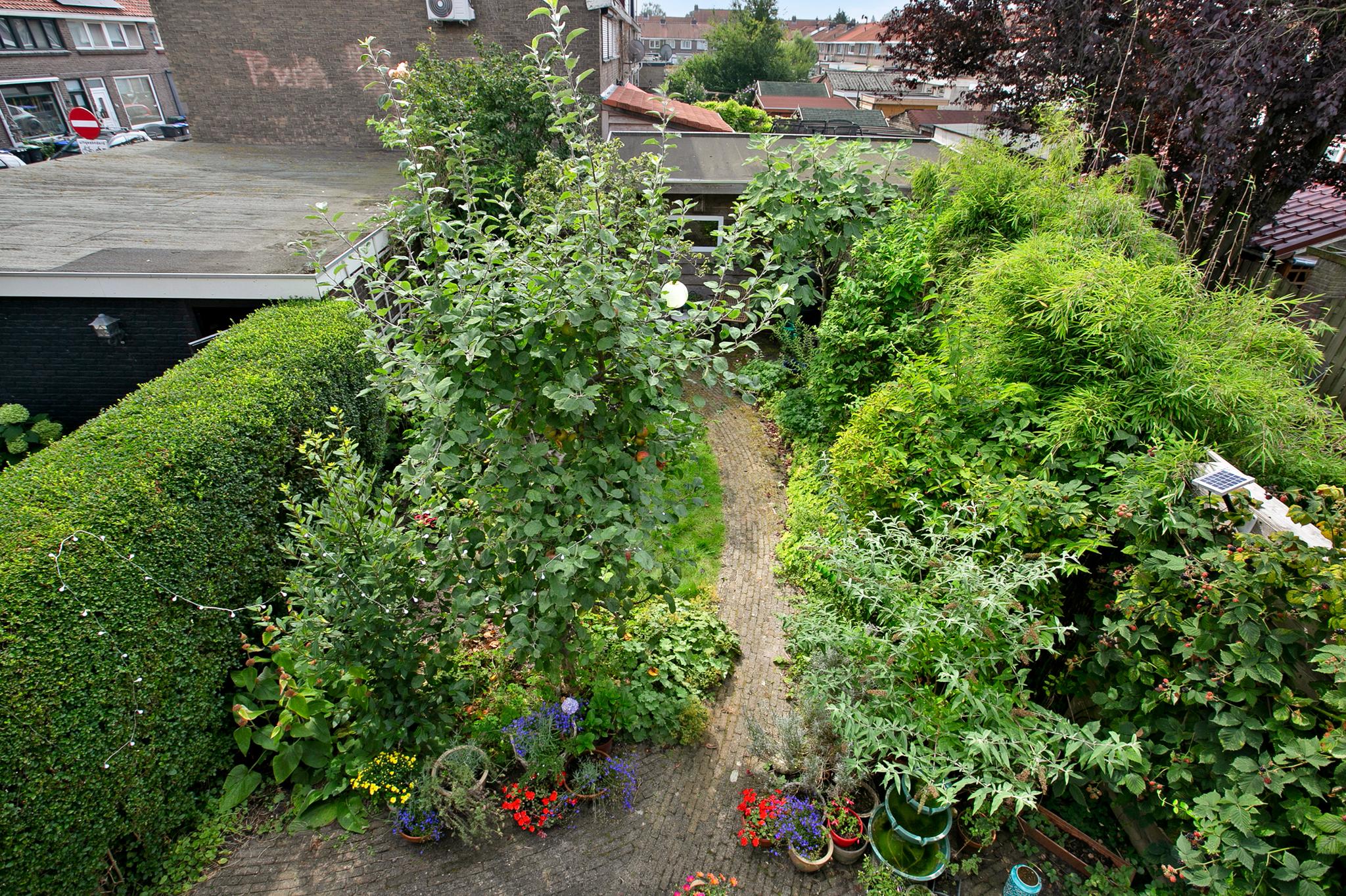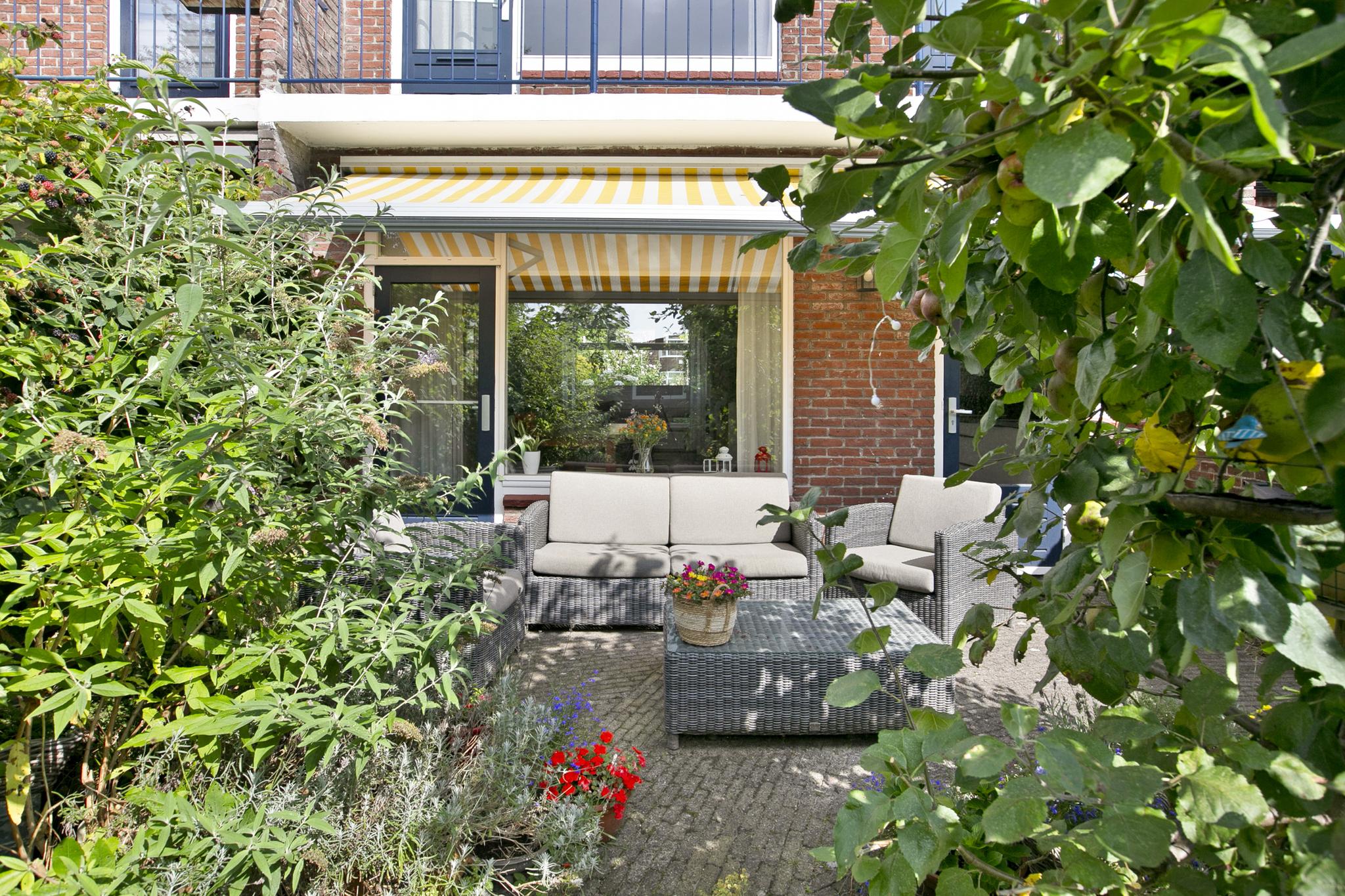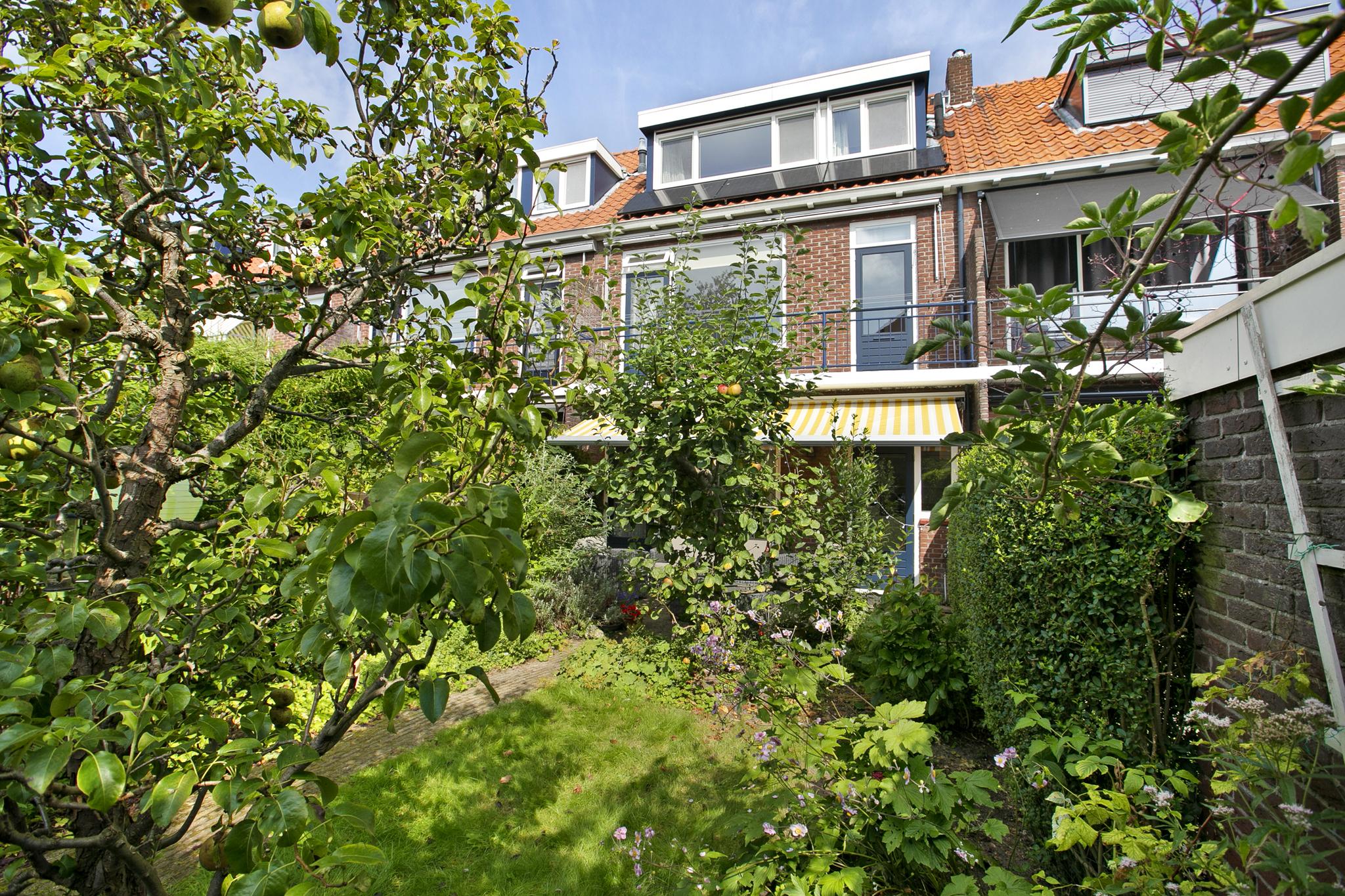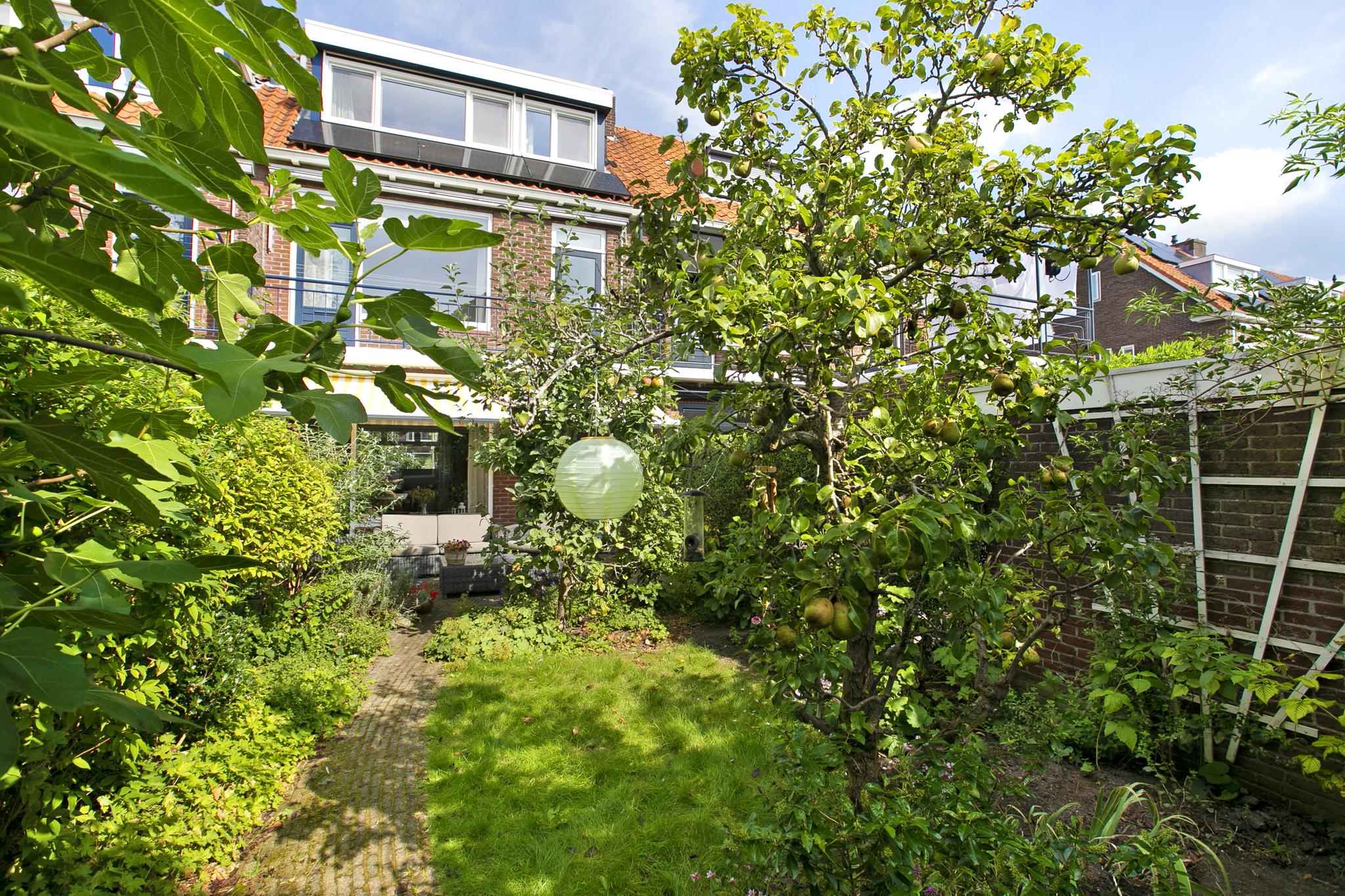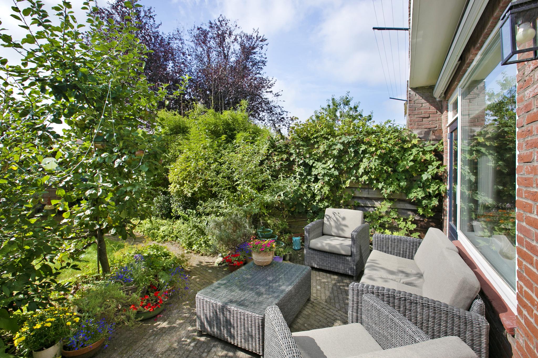De tuin is echt fantastisch, mooi groen, voorzien van een afgesloten achterom en veel fruitbomen wat al aangeeft hoe zonnig deze tuin is.