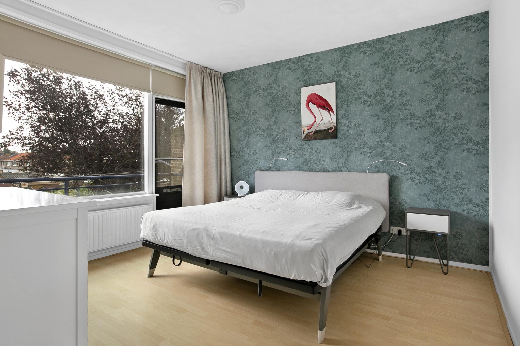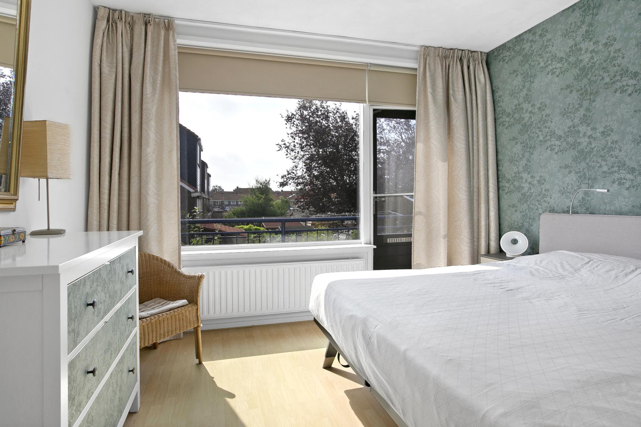 Slaapkamer 2 gelegen aan de achterzijde met deur naar het balkon.