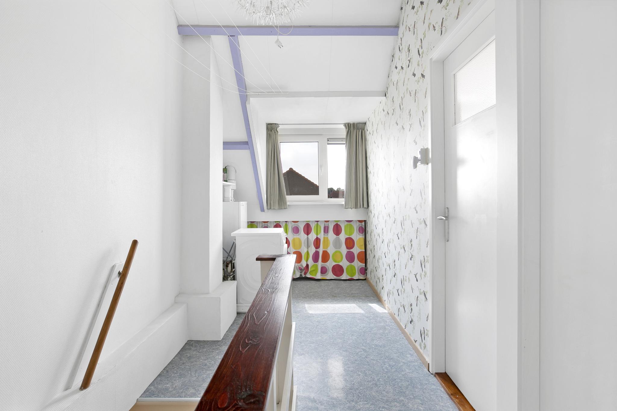 Op deze verdieping zit wel echt de winst! Hier zijn 2 grote dakkapellen geplaatst waardoor er 2 grote slaapkamers aanwezig zijn. Op de overloop is er plaats voor was apparatuur en drogen van de was, de CV ketel (bouwjaar 2008) en bergruimte onder het schuine dak.