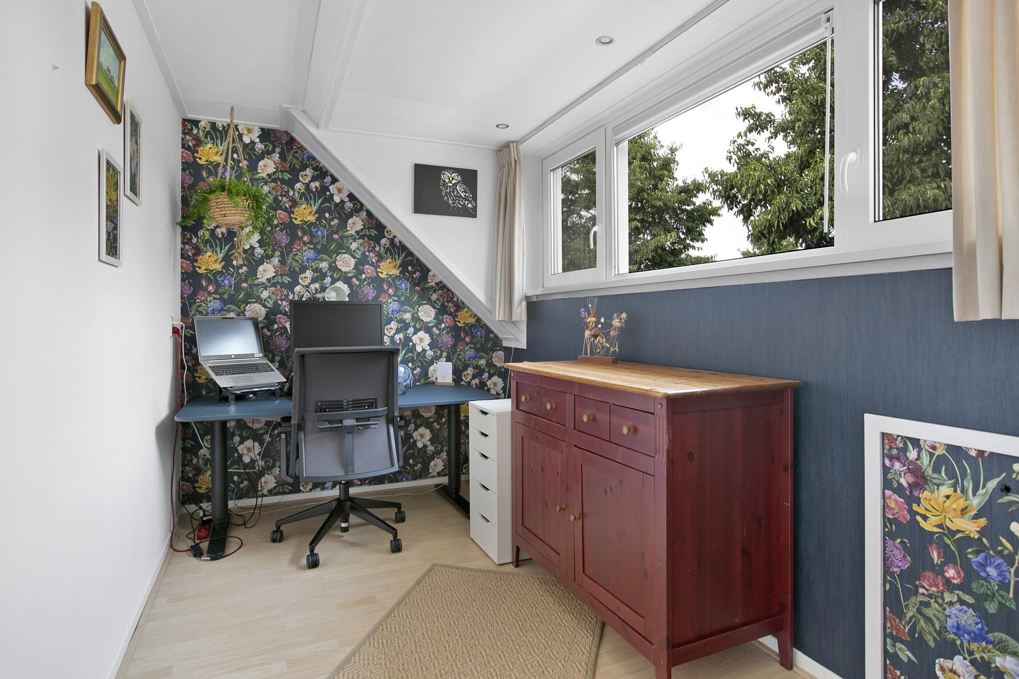 Slaapkamer 4, aan de voorzijde met bergruimte onder het schuine dak.