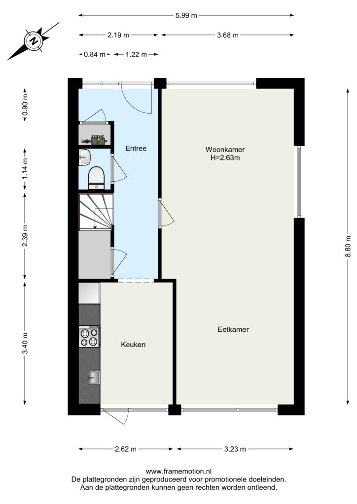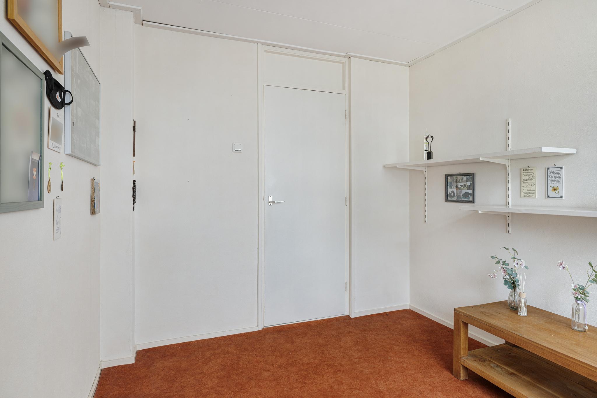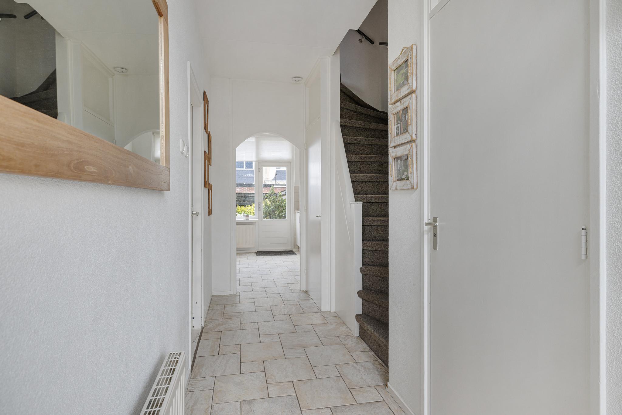 Entree in de hal met toilet, meterkast, trapkast, toegang tot de keuken en toegang tot de woonkamer.
