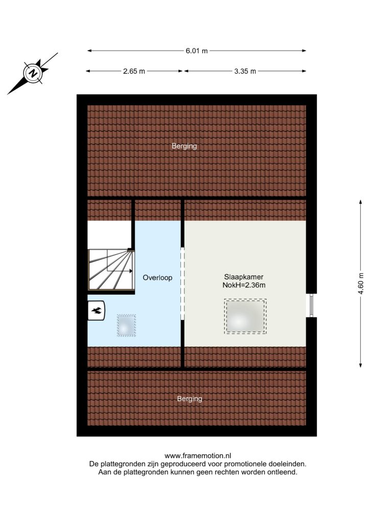 4de Slaapkamer met zij-raam en dakraam, ook hier bergruimte onder het schuine dak.
