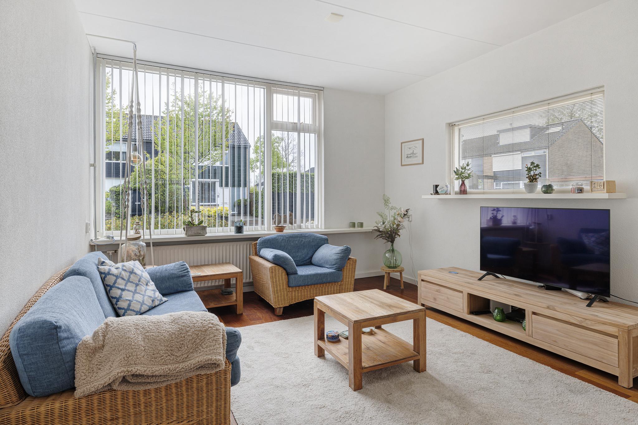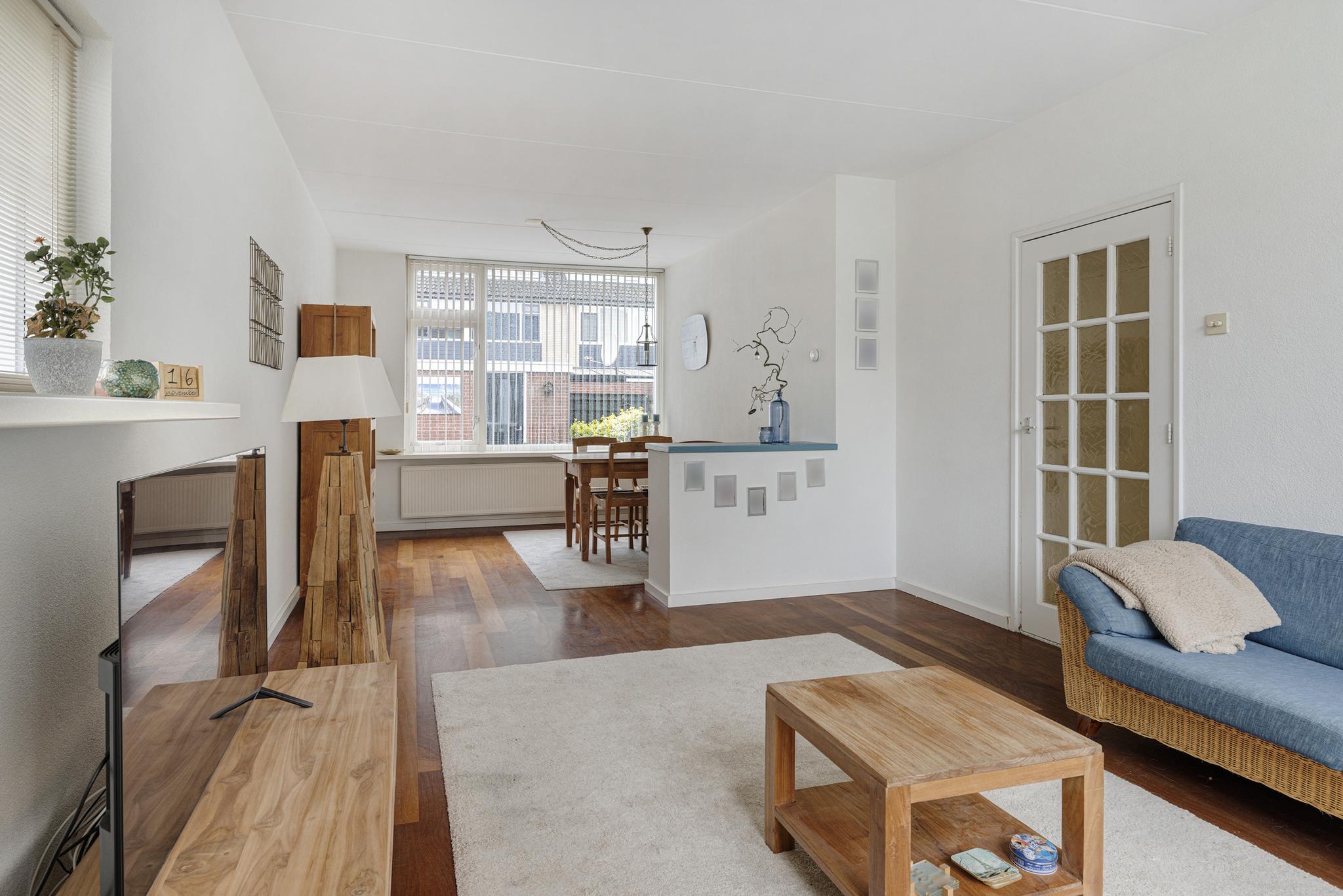Heerlijke grote doorzon woonkamer met zij-raam. De kamer is voorzien van een houten vloer en spachtelputz wandafwerking. Elektrisch zonnescherm aanwezig.