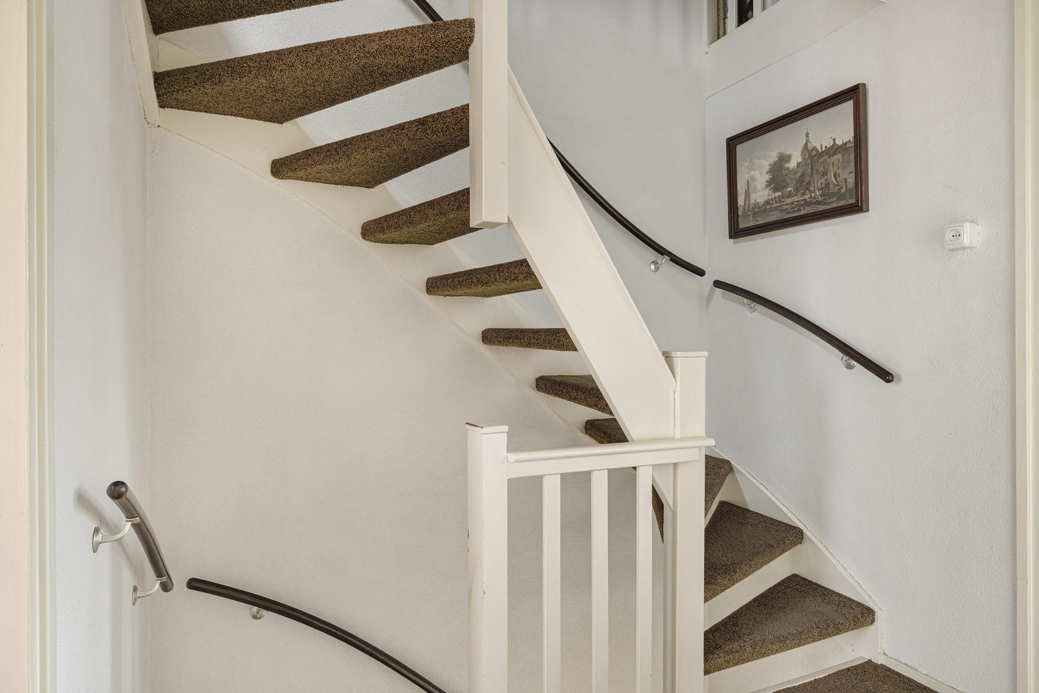 Overloop met vaste trap naar de tweede verdieping en toegang tot alle vertrekken.