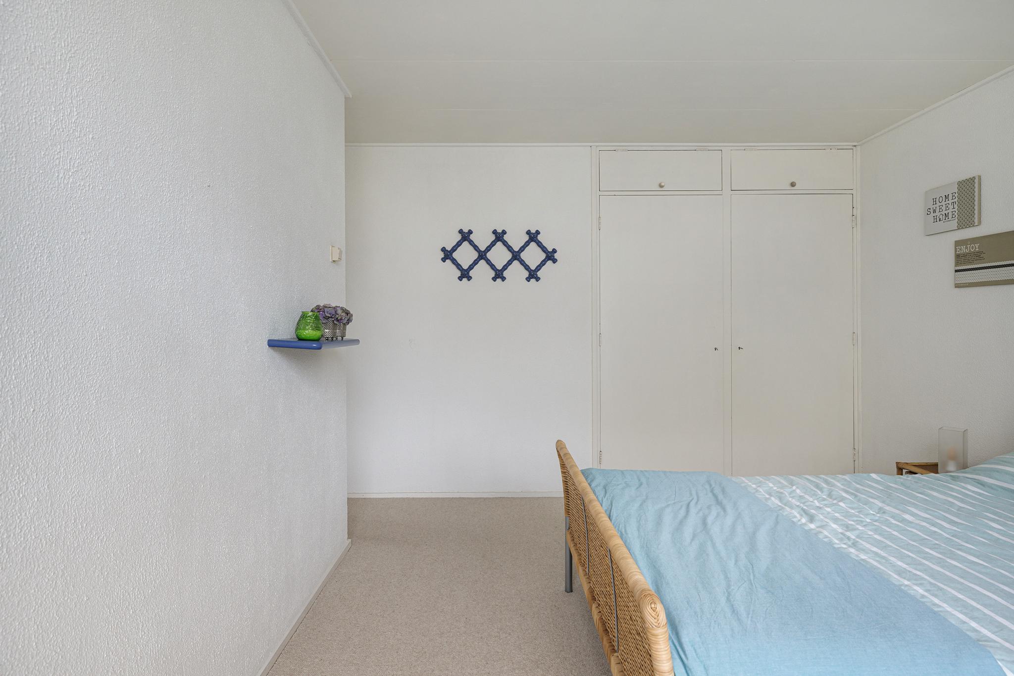 Slaapkamer 1 aan de voorzijde met vaste kasten en spachtelputz wanden.