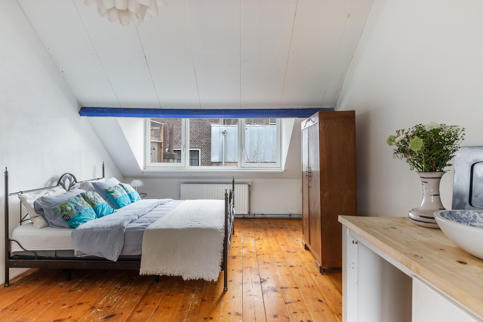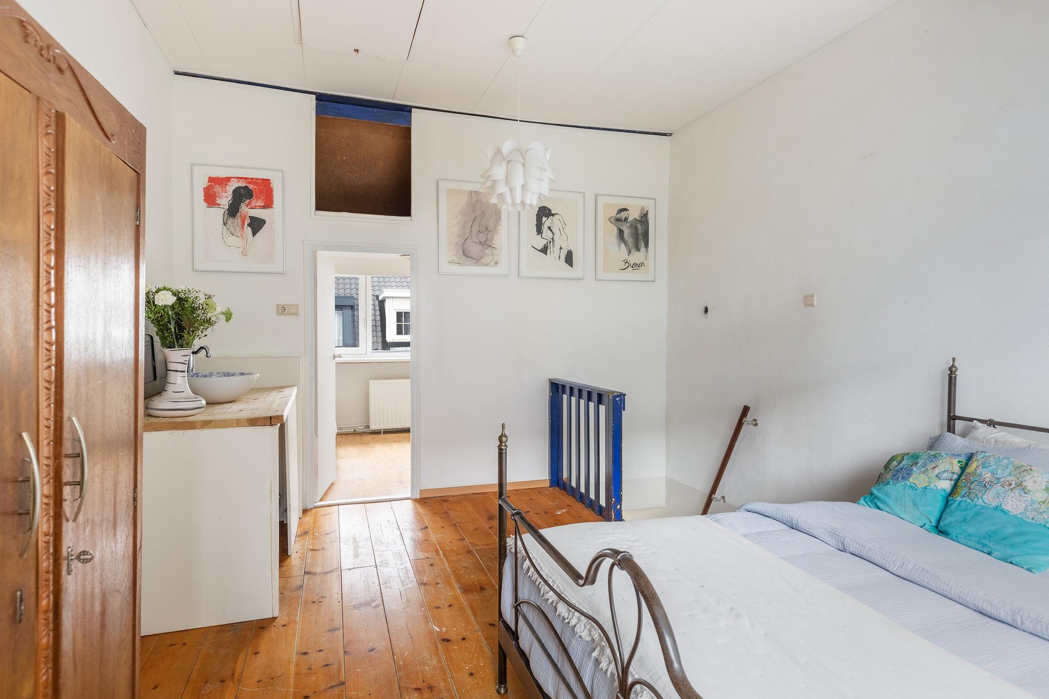 De verdieping is thans ingedeeld in een grote voorzolder met een aparte slaapkamer. De voorzolder is door de grote dakkapel zeer ruimtelijk en goed geschikt om als slaapkamer te gebruiken. Op de voorzolder bevindt zich tevens de wasaansluiting en toegang tot de vliering middels vlizo-trap.