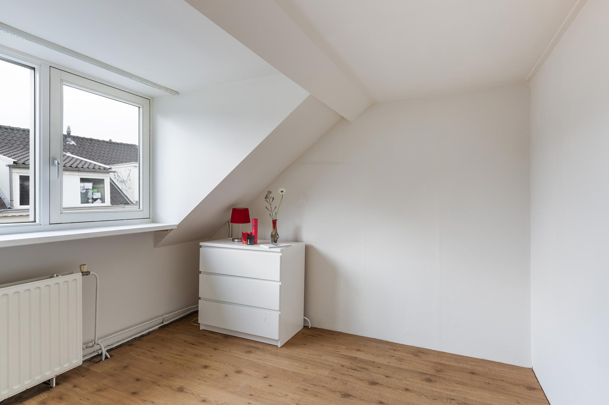 Slaapkamer aan voorzijde met dakkapel en een vaste kast met opstelplaats CV-ketel (Nefit, 2014).
