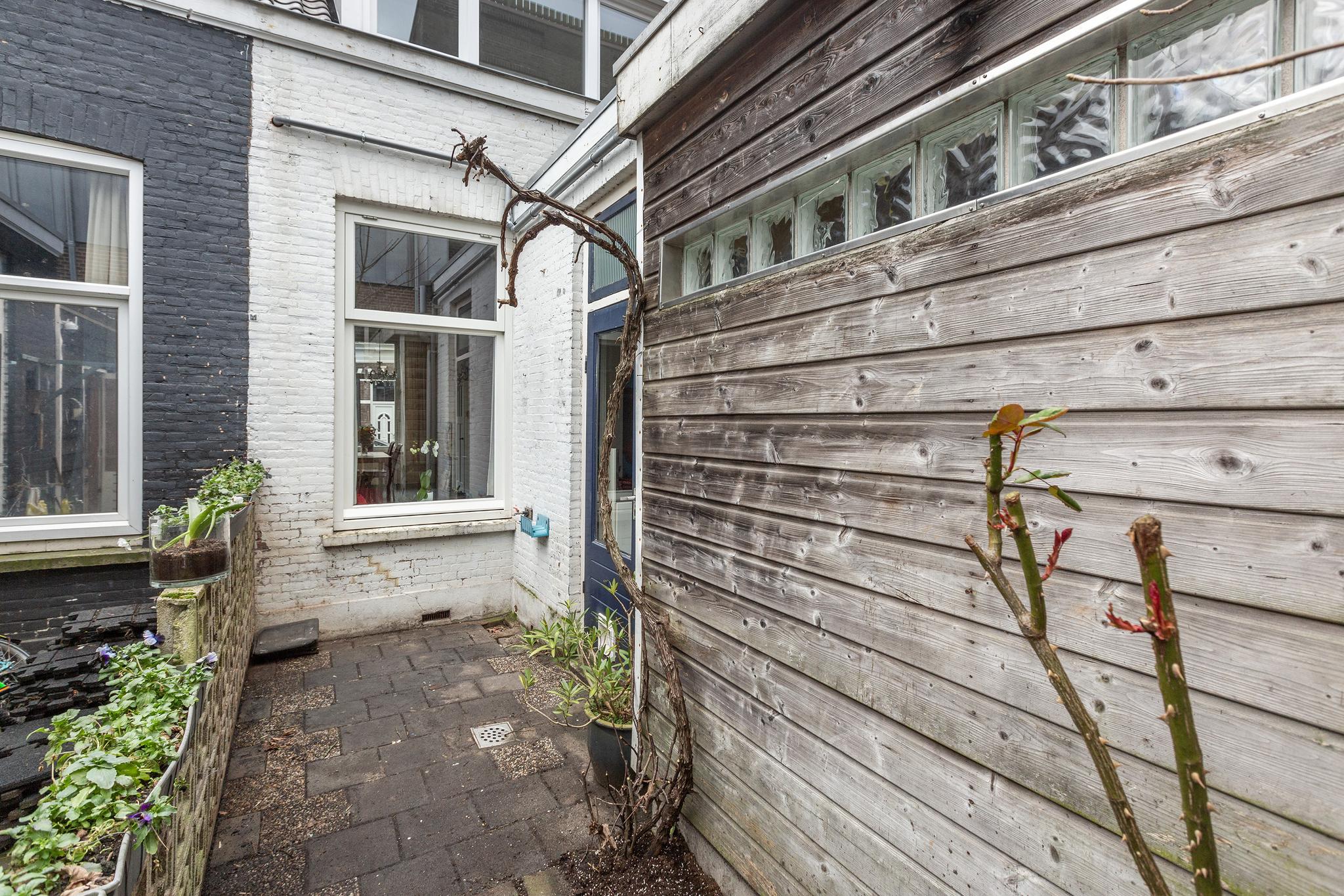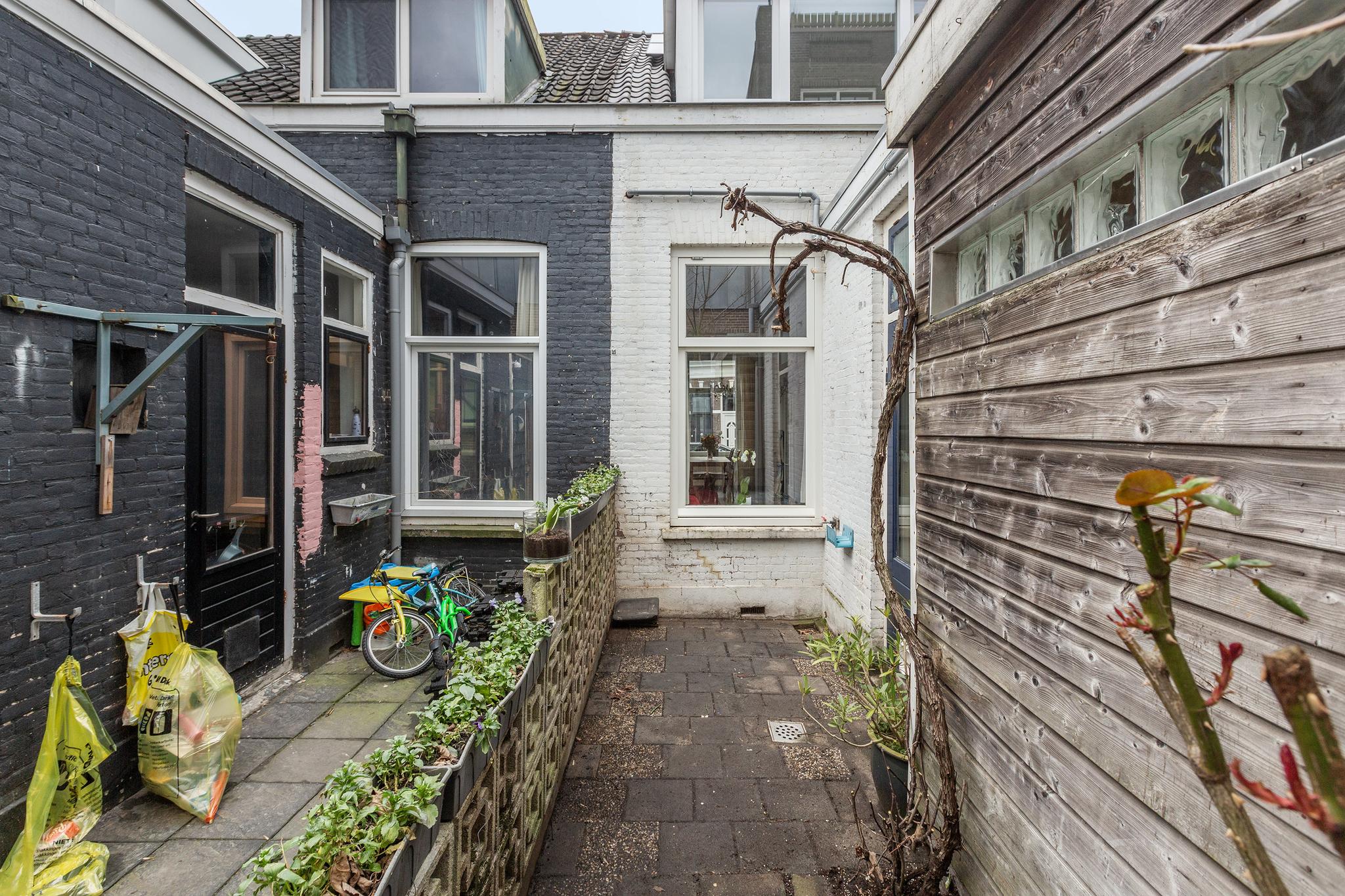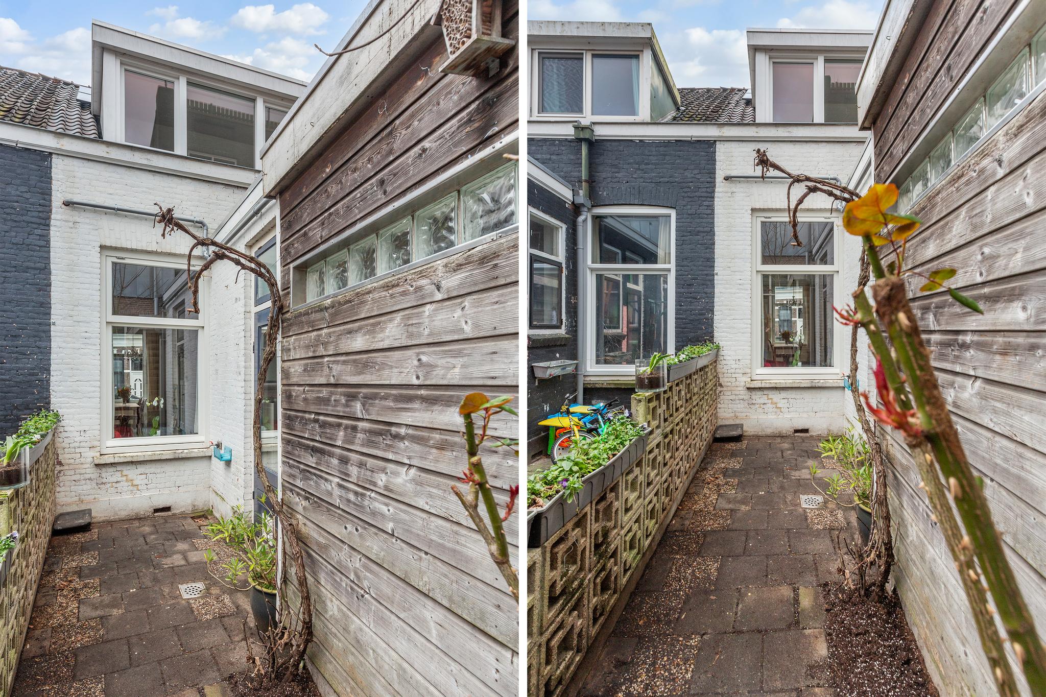 De achtertuin is klein maar fijn, deze is gelegen op het oosten en goed geschikt om een gezellige stadstuin te creëren!