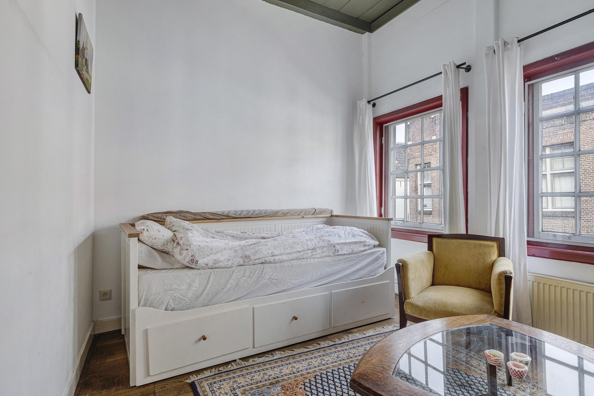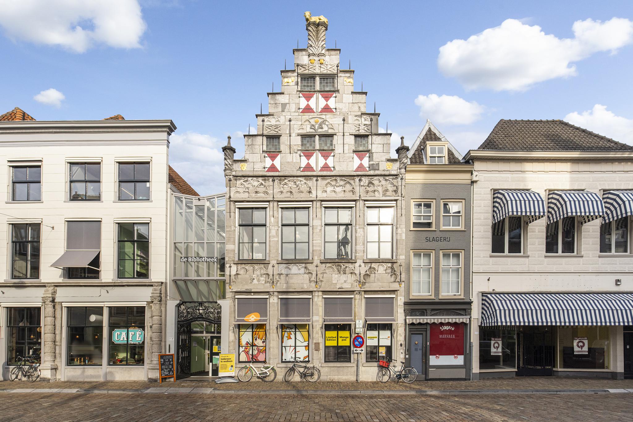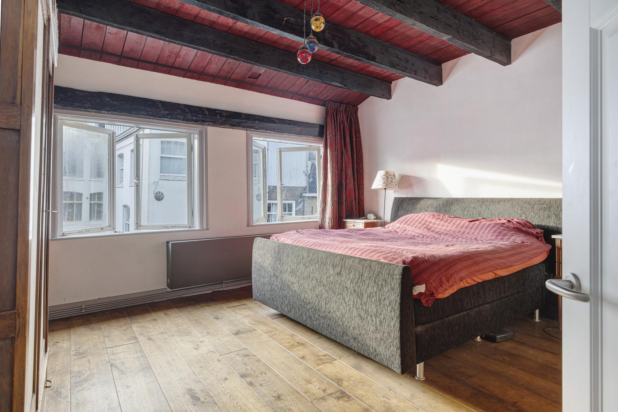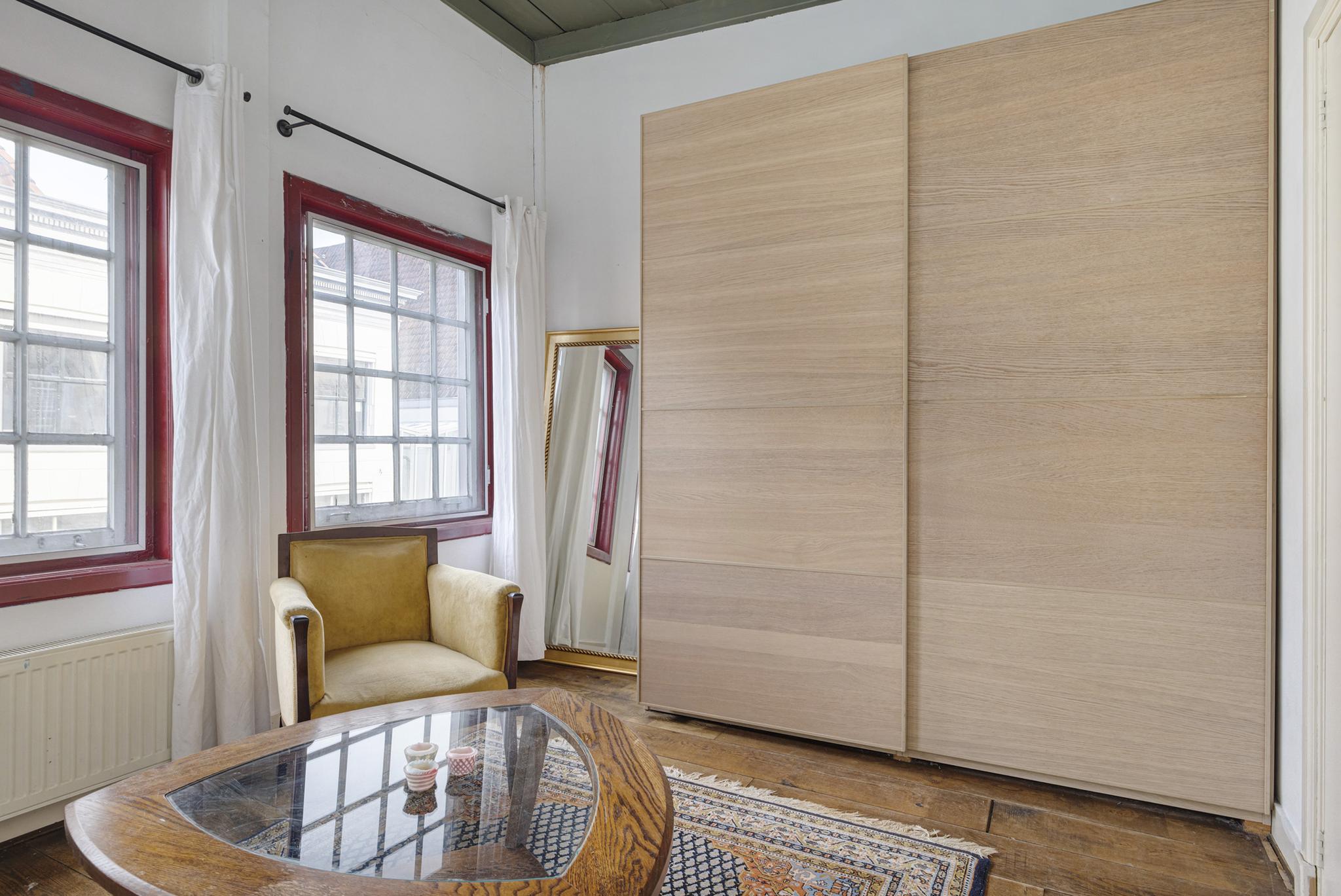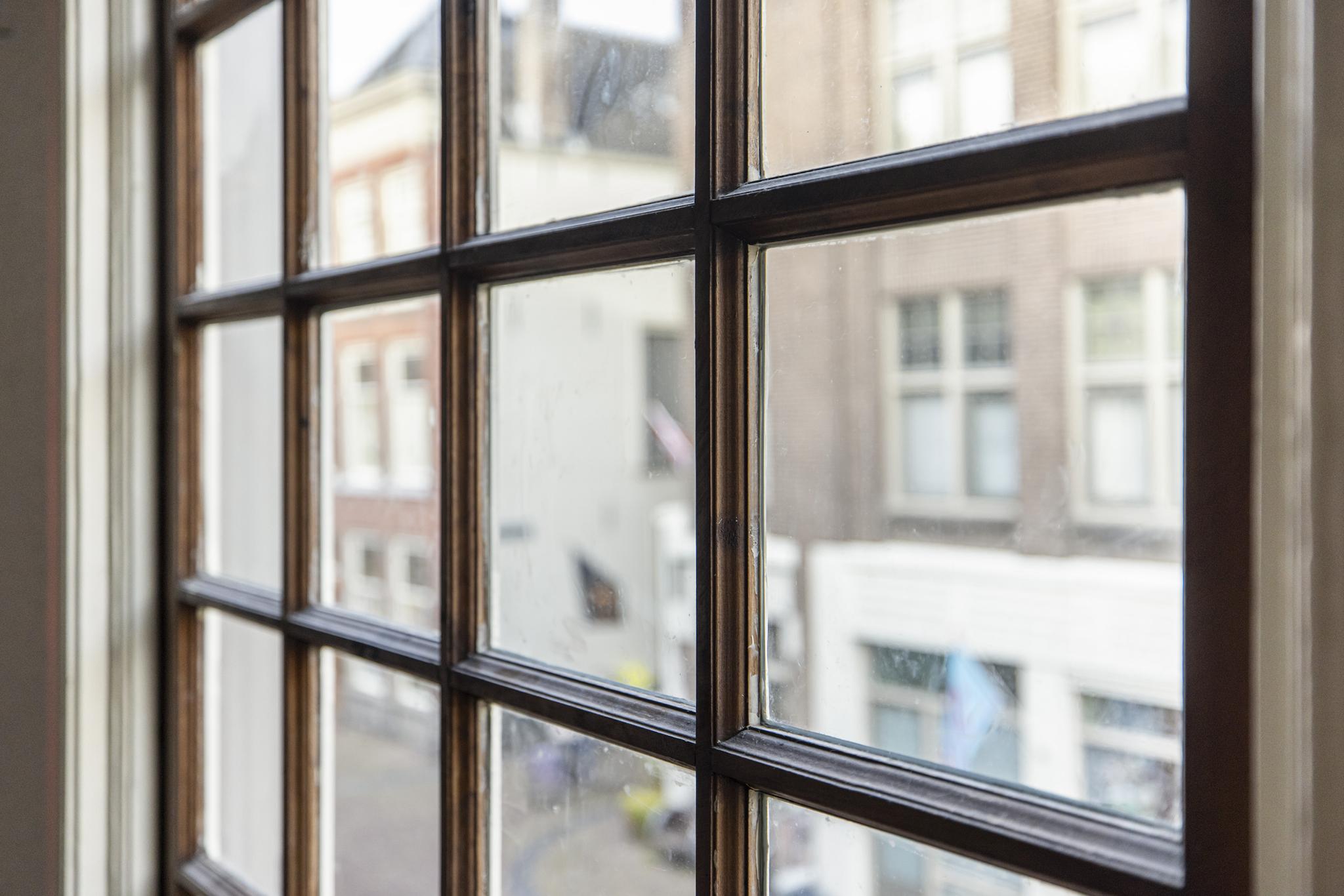 Deze verdieping is nu in gebruik als woonverdieping, de vloer hier is verhoogd en daarmee recht gelegd. Ook hier kijk je tegen de enorme houten balken aan en via de patatsnijdersramen kijk je op de Groenmarkt aan de voorzijde. Op deze verdieping is een eenvoudige open keuken aanwezig op de plek waar ooit een binnenplaats is geweest. We laten je tijdens de rondleiding graag zien welke aanpassingen er nog gedaan kunnen worden om deze ruimte (nog) groter te maken door middel van de informatie die we van de eigenaar hebben gehad.