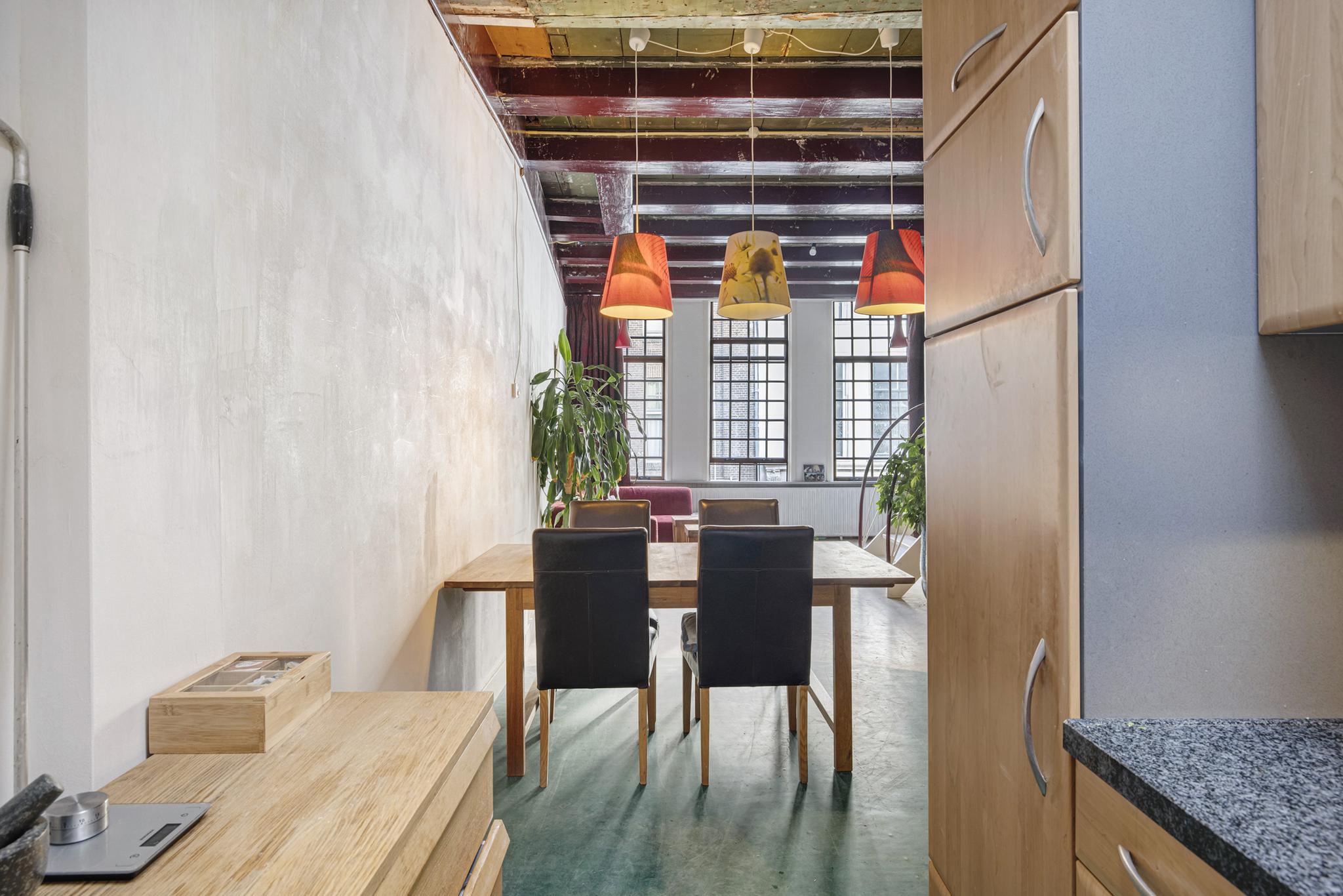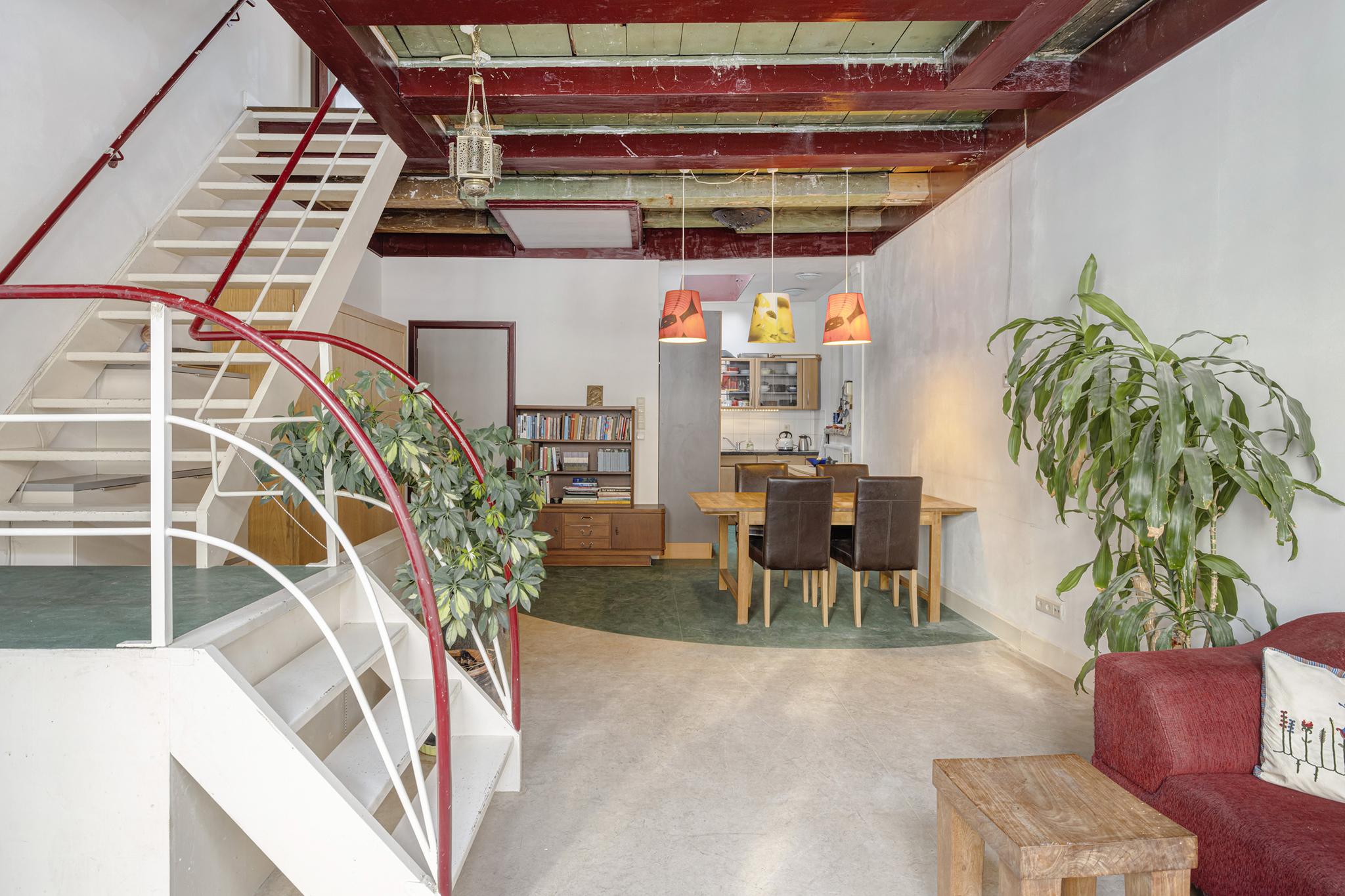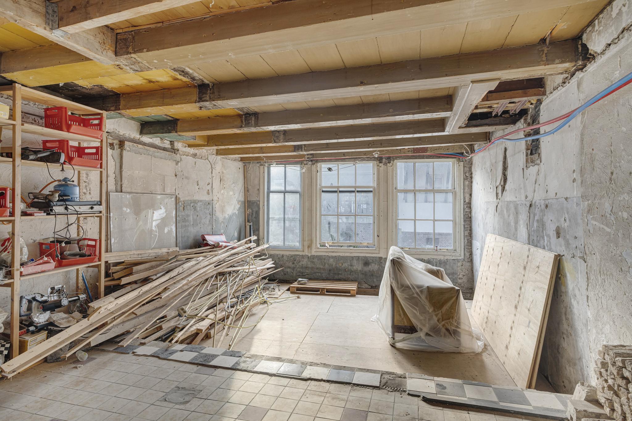 De begane grond is wat wij noemen een blanco canvas, de ruimte is van voor naar achteren geheel open. Je kijkt tegen de stoere oude muren aan en de robuuste balken van het plafond. Een eigen winkel/ werkplaats/ kantoor, meer woonruimte alles is hier te realiseren. Op dit moment zijn er openslaande deuren naar de straat dus de ruimte zou zelfs als garage dienst kunnen doen.