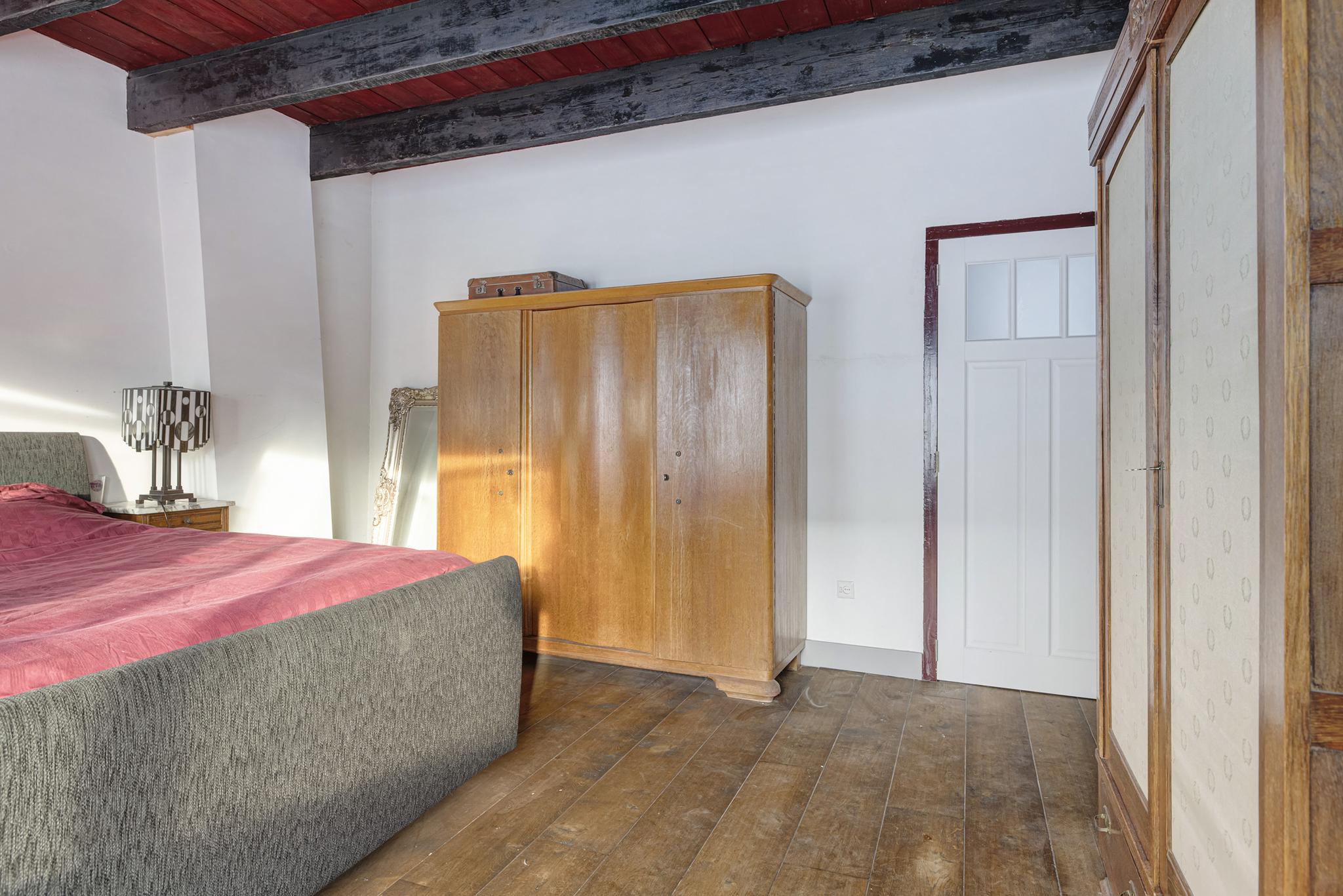 Slaapkamer 1 gelegen aan de voorzijde met een luik naar een bergruimte (die de eigenaar nu niet gebruikt, wie weet welke schatten er liggen!!).