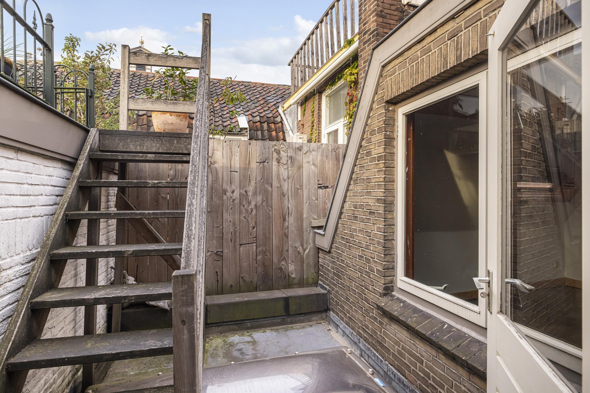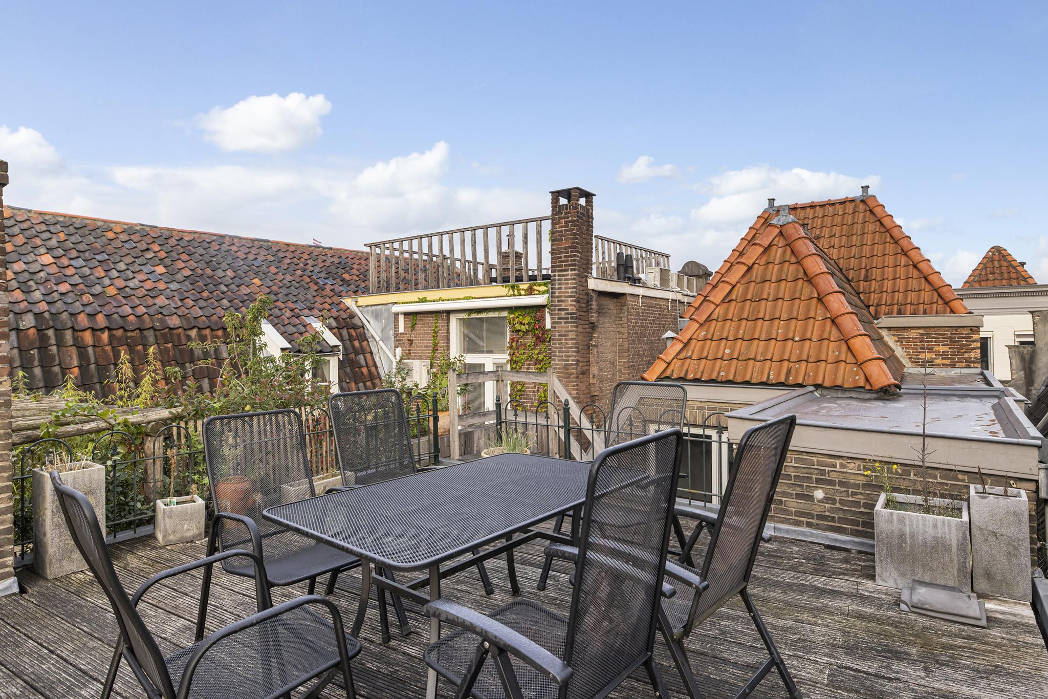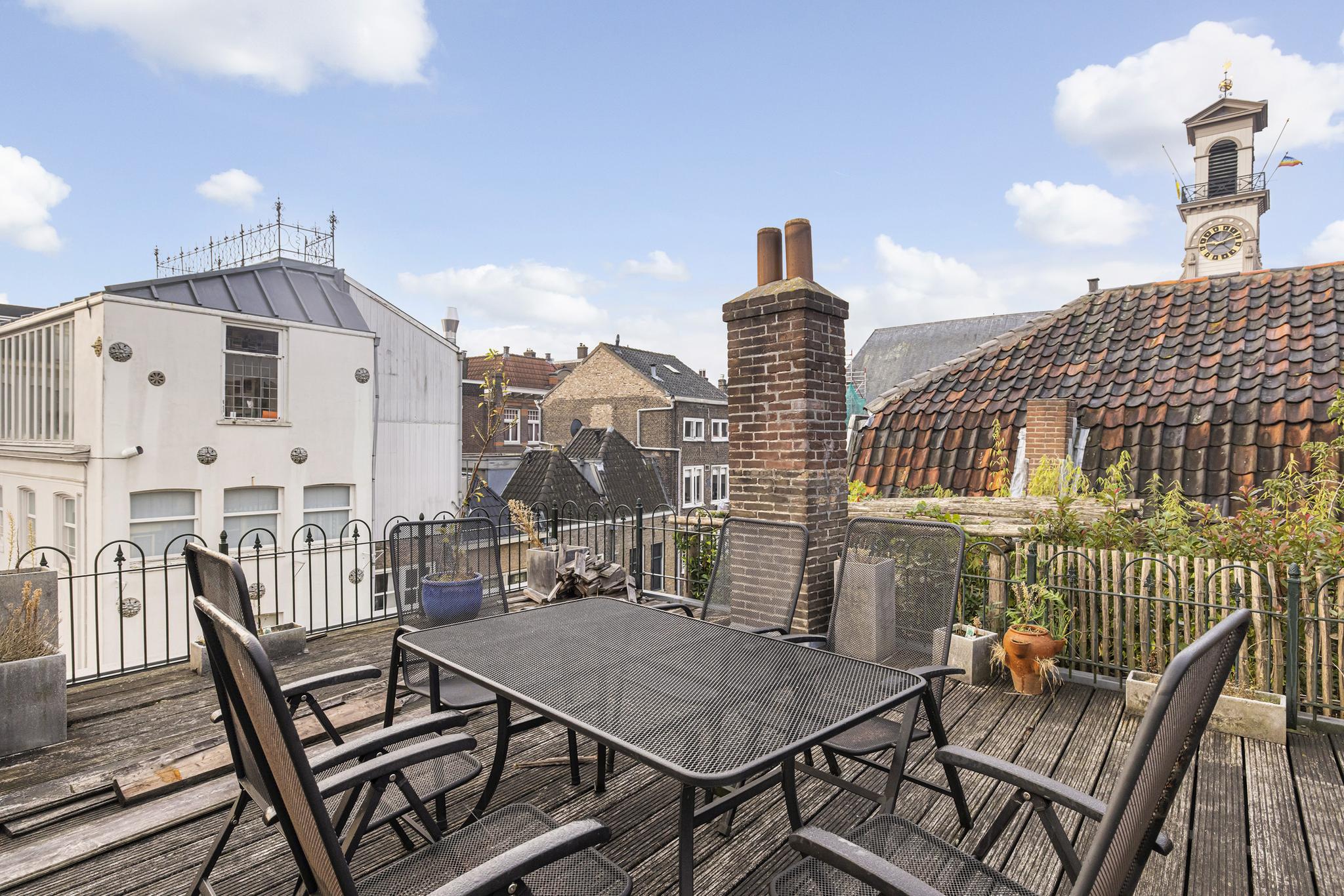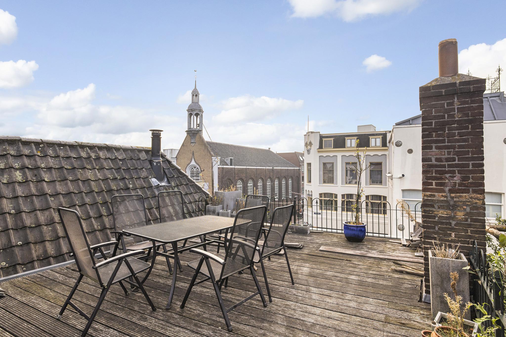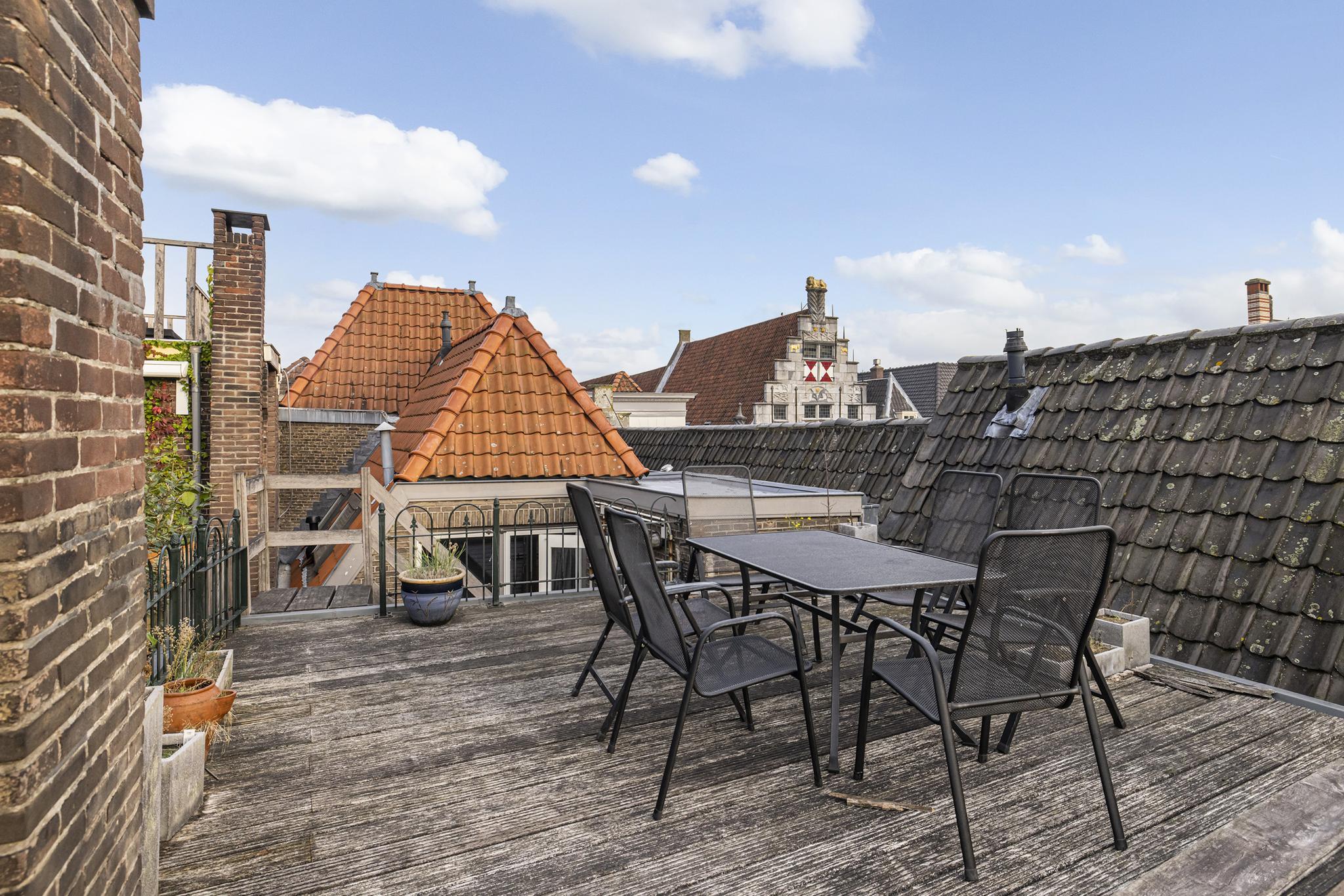 Vanuit de hal is via een deur toegang tot een trap naar het bijzonder ruime dakterras met werkelijk geweldig uitzicht over het stadhuis, de Grote Kerk, het water en de monumentale daken van de binnenstad. Altijd zonnig en bijzonder privé!
