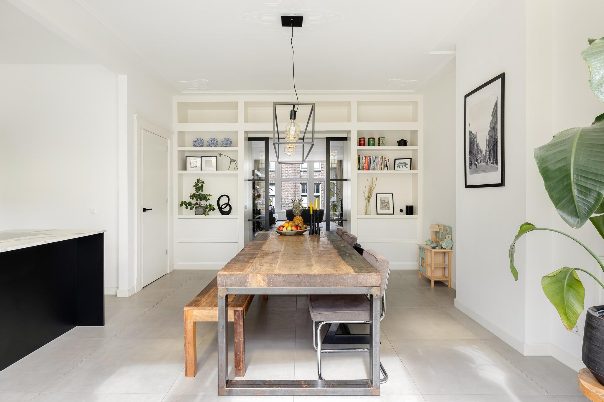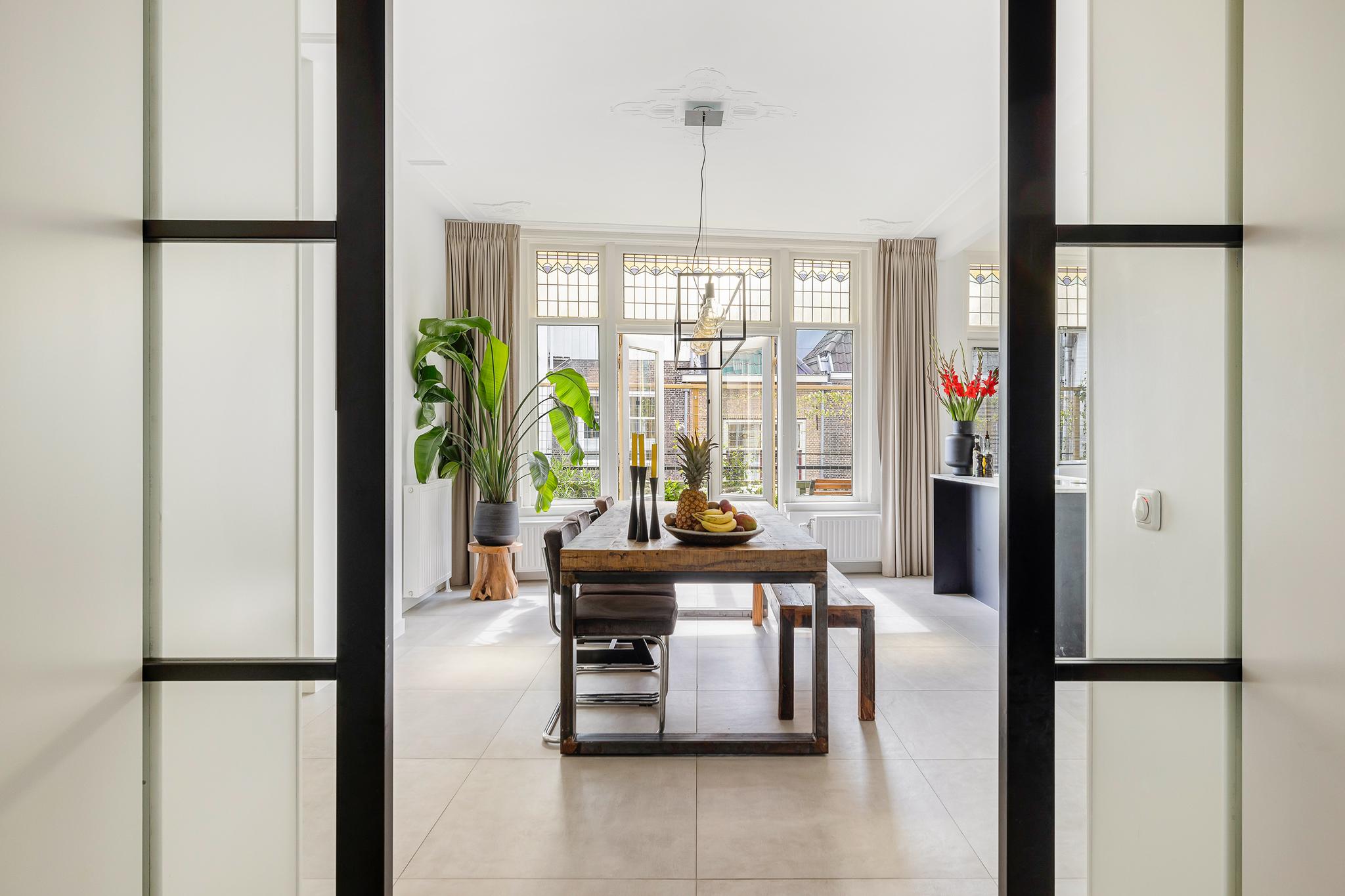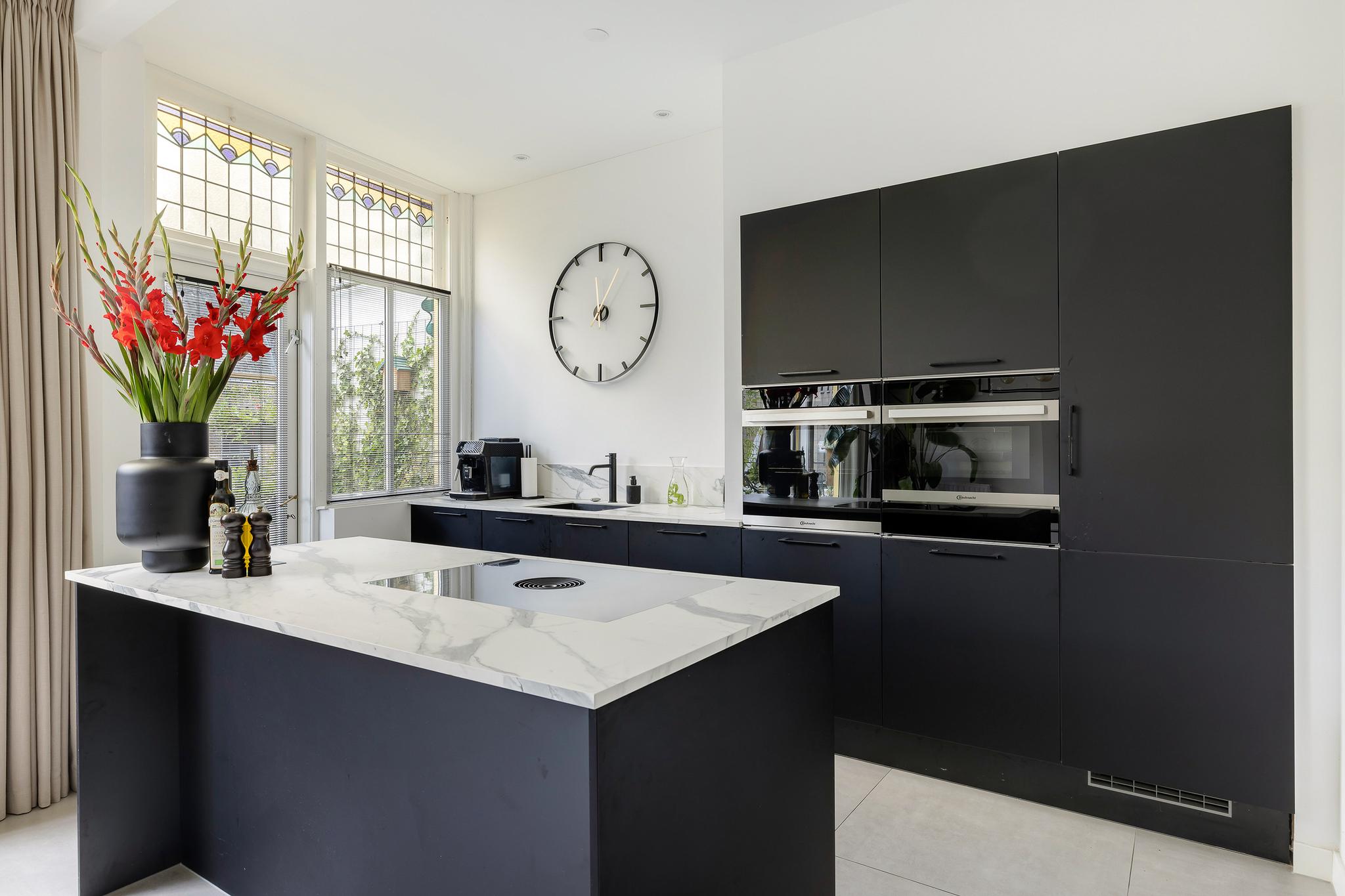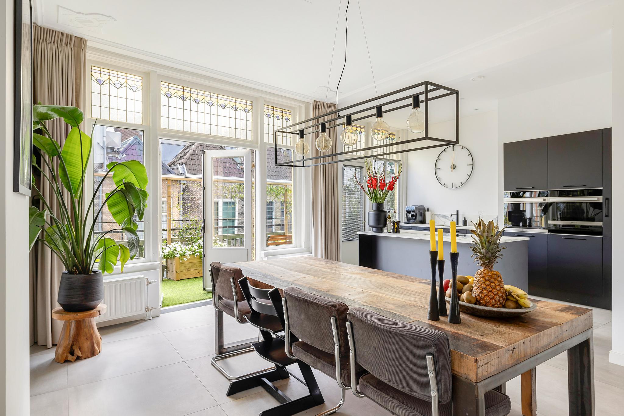 Wat direct opvalt zodra je binnenkomt, is de ruimtelijkheid. Dankzij de hoge plafonds en grote raampartijen baadt het appartement de hele dag in natuurlijk licht. De originele houten vloer uit de 18e eeuw, glas-in-loodramen en het ornamentenplafond zorgen voor een karaktervolle sfeer, terwijl de moderne afwerking en luxe keuken zorgen voor alle comfort van nu.