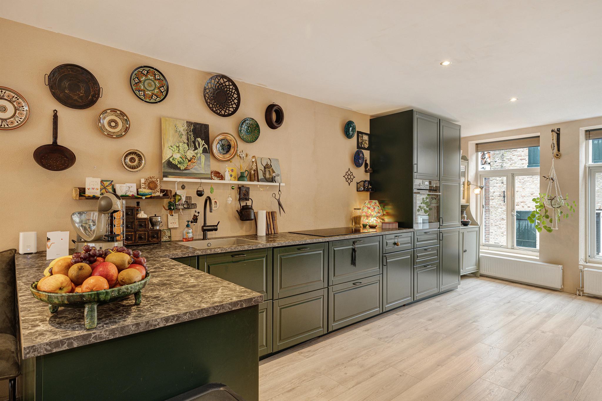 De keuken is in 2021 nieuw geplaatst en voorzien van een hetelucht oven, koelkast, vriezer, inductie kookplaat en vaatwasser.