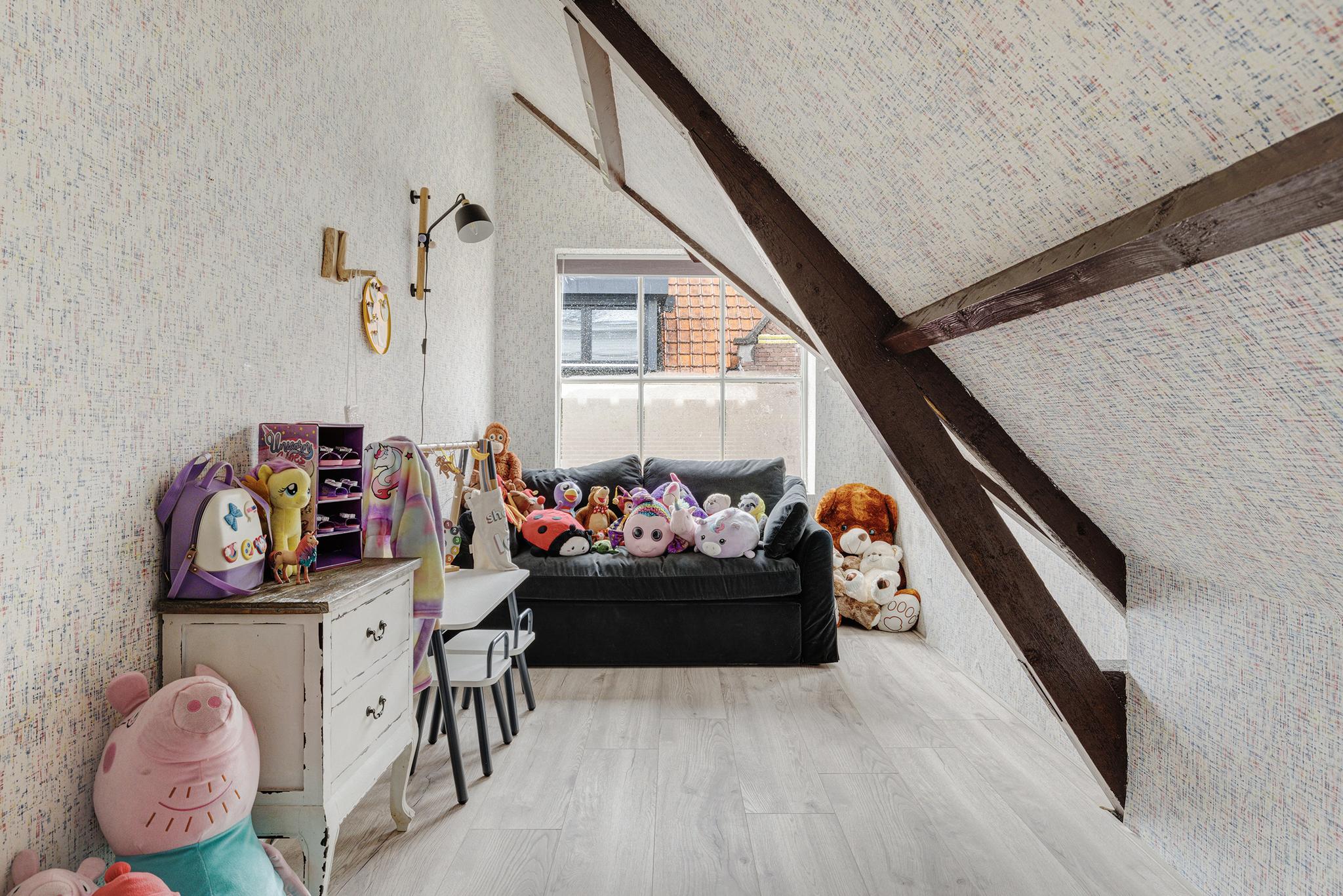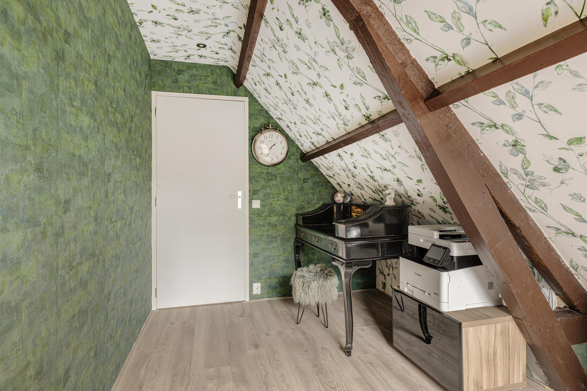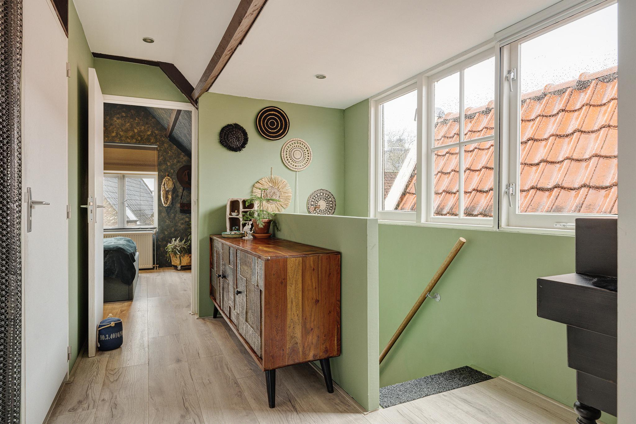 De verdieping is voorzien van een laminaatvloer.
