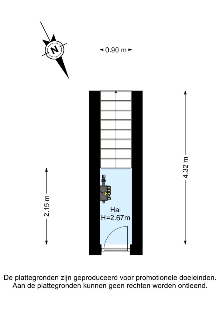 Hal met meterkast (6 groepen + dubbele groep, aardlekschakelaars, meters)