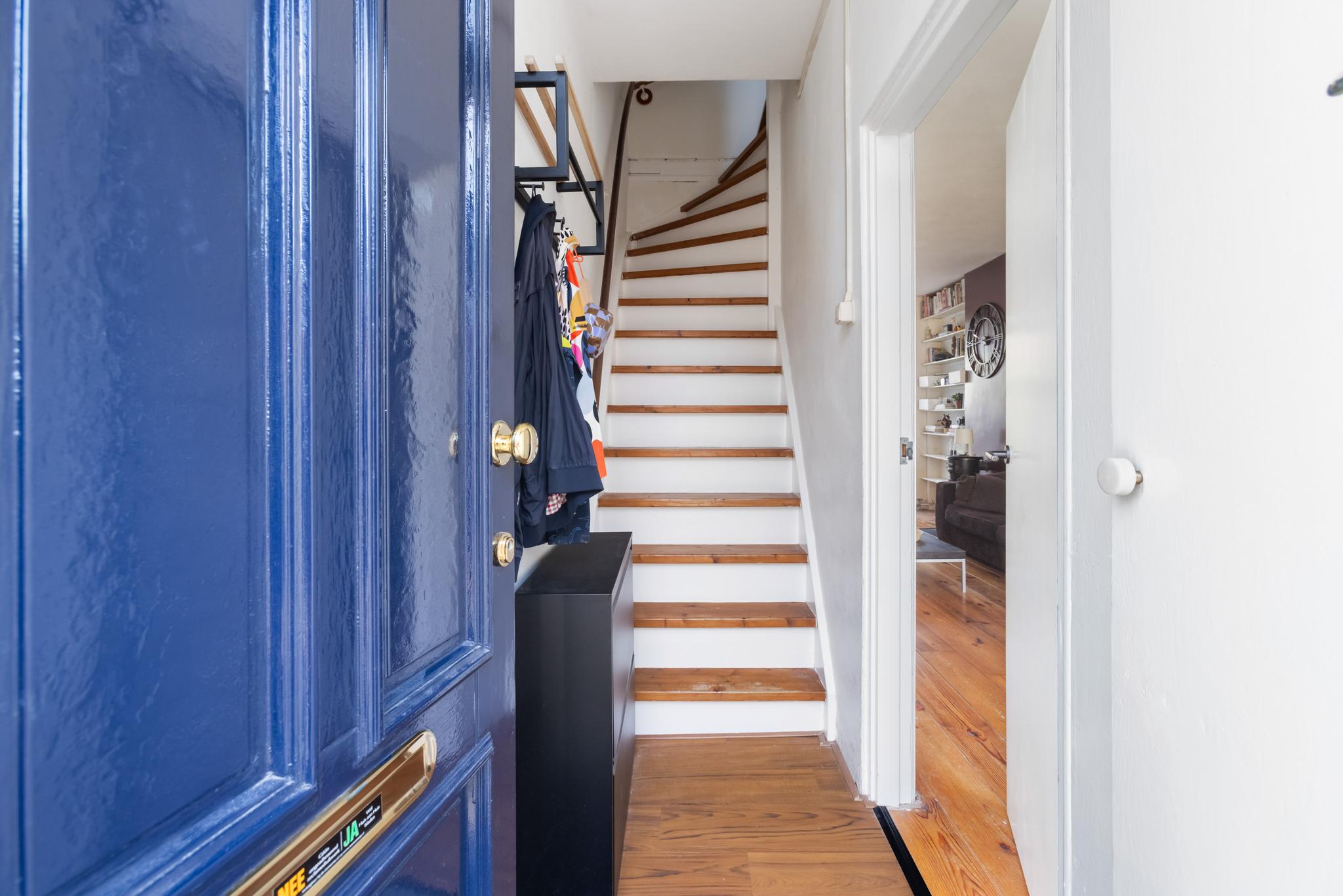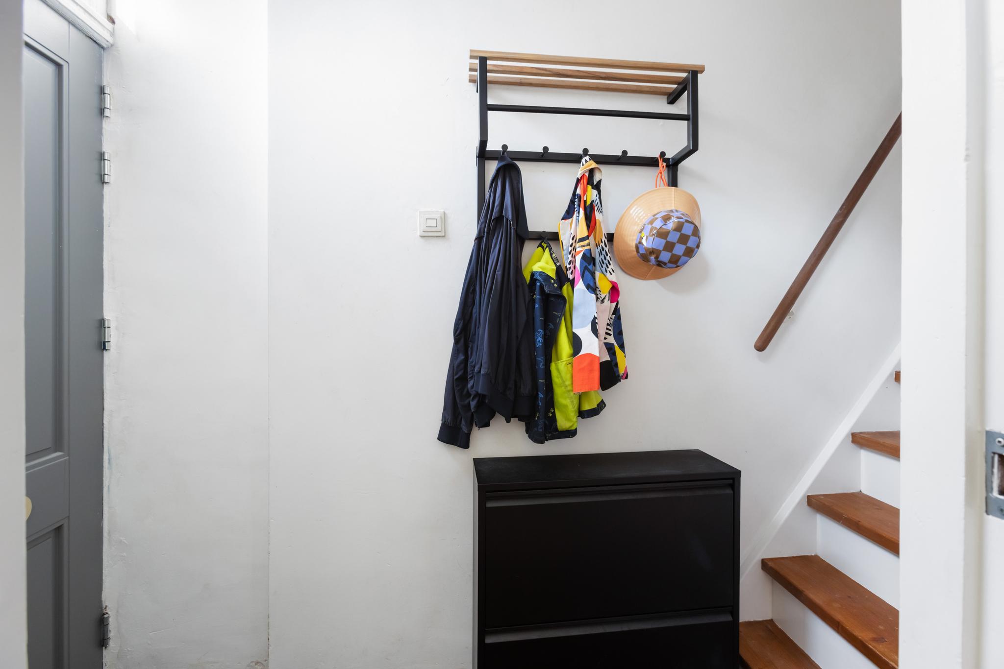 Hal met meterkast (5 groepen, aardlekschakelaar), trapopgang naar verdieping.