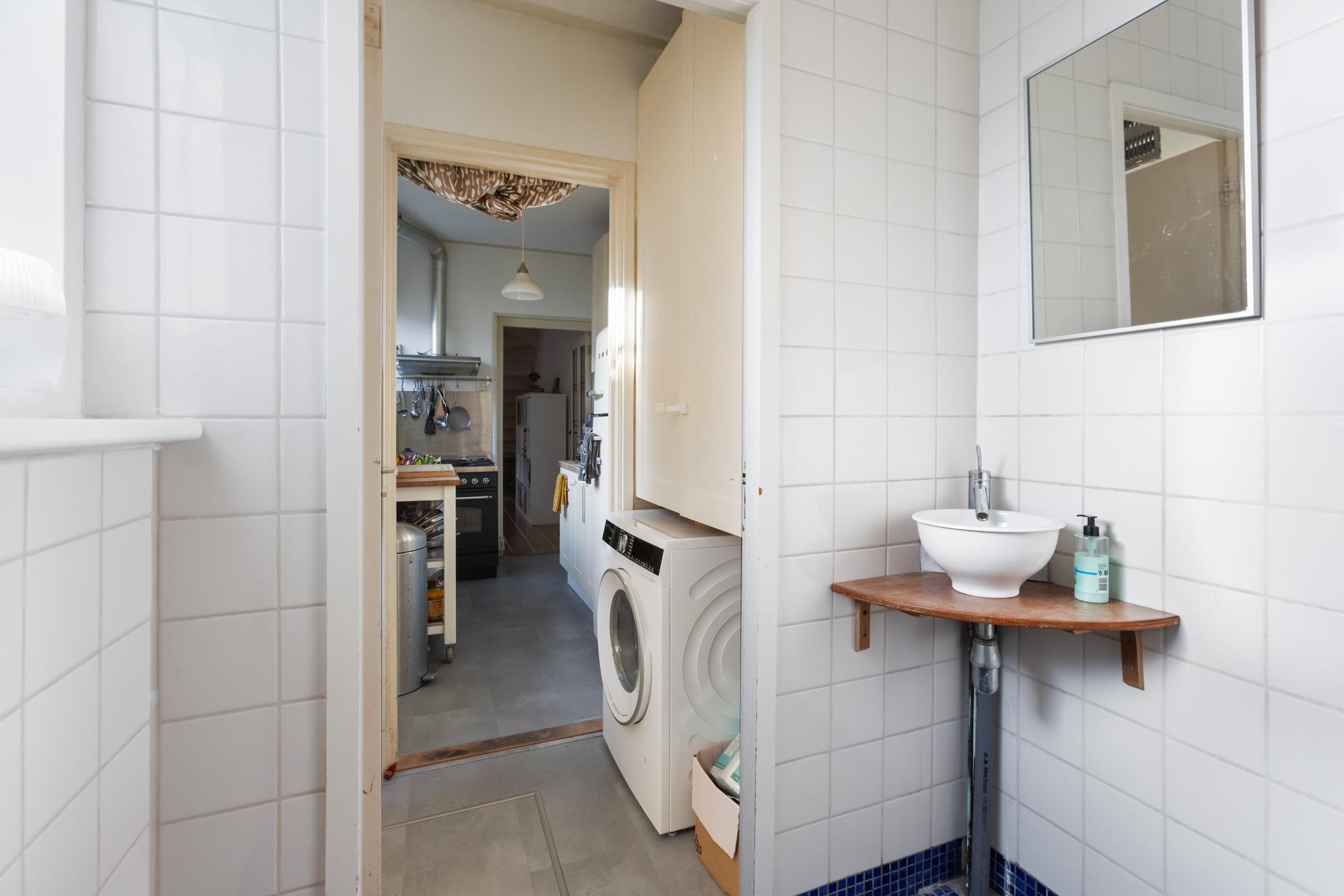 Vanuit de keuken is een tussenruimte begaanbaar, met deur naar de tuin, wasaansluiting en opstelplaats CV-ketel in kast (Remeha, 2007). Vanuit de tussenruimte is de badkamer aan achterzijde bereikbaar.