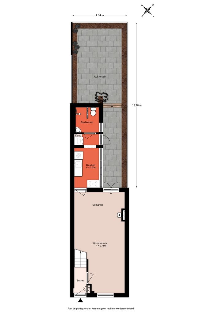 De achtertuin is gelegen op het noordoosten en is voorzien van tegels.