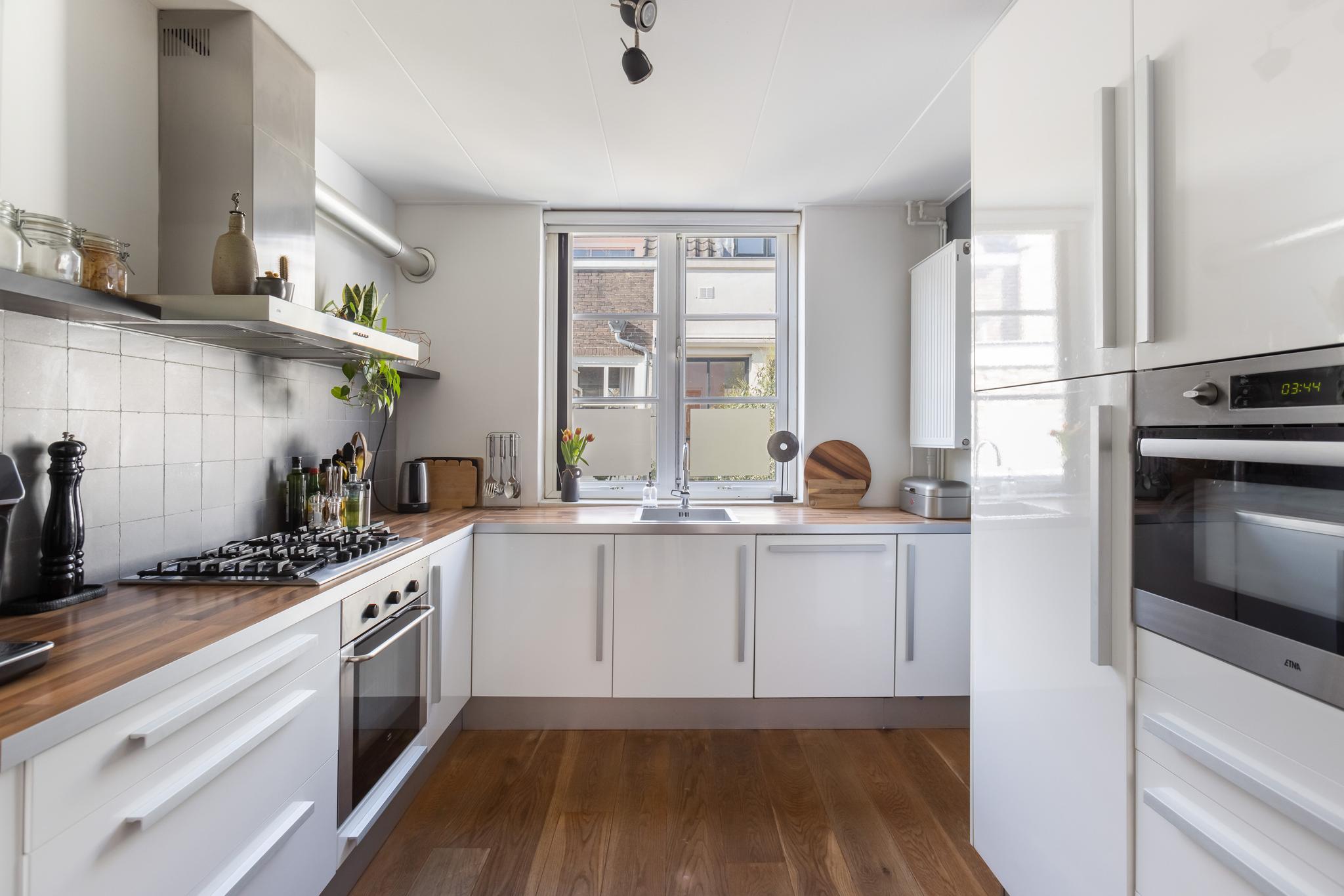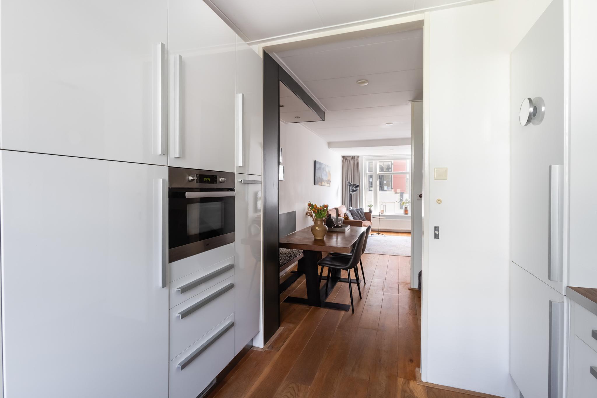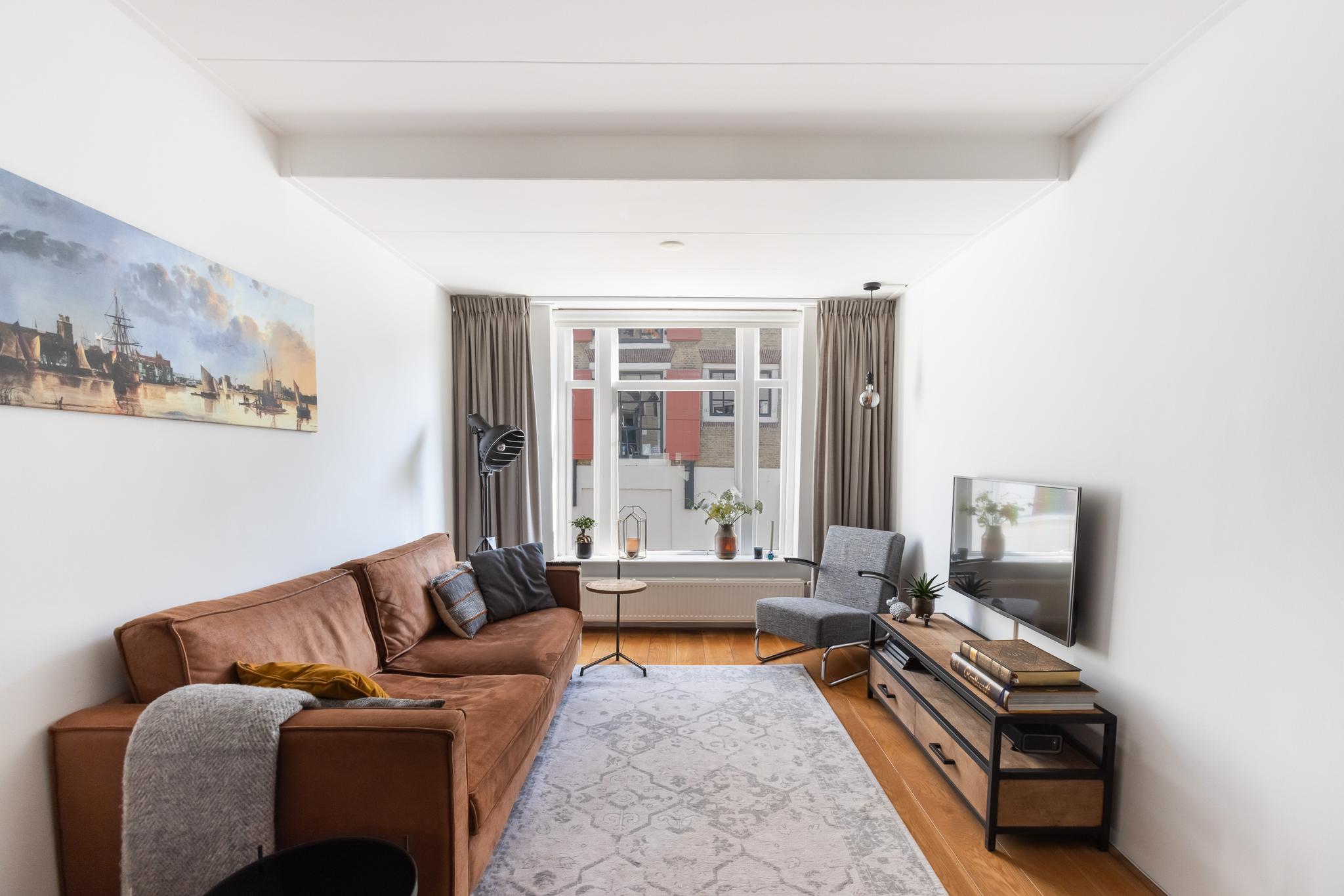 De woonkamer geeft een gezellige sfeer en uitzicht op de prachtige, karakteristieke panden aan de Hoge Nieuwstraat. Verder is de woonkamer voorzien van een karakteristiek hijsraam aan voorzijde en voorzetwanden langs de zijwanden.
