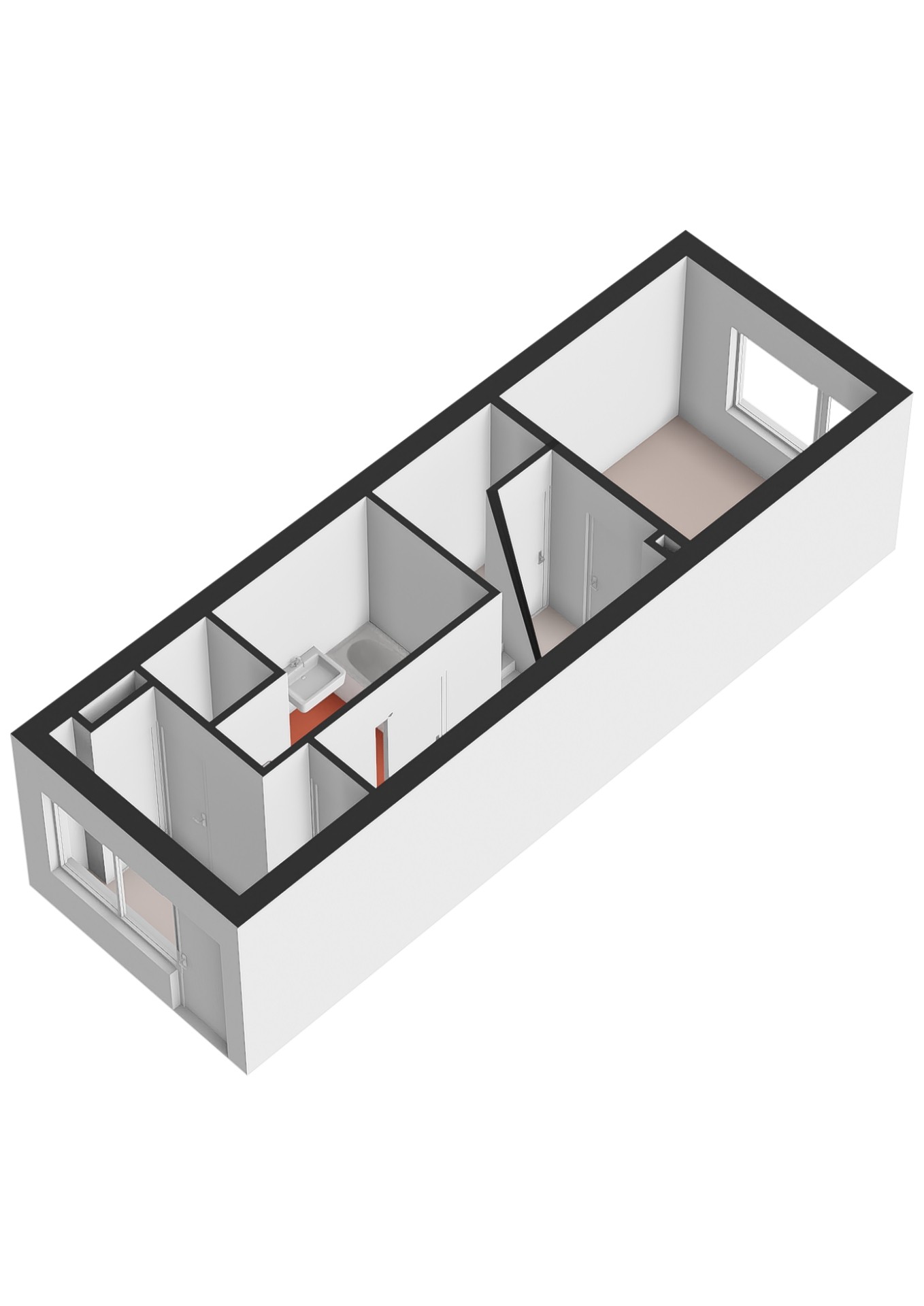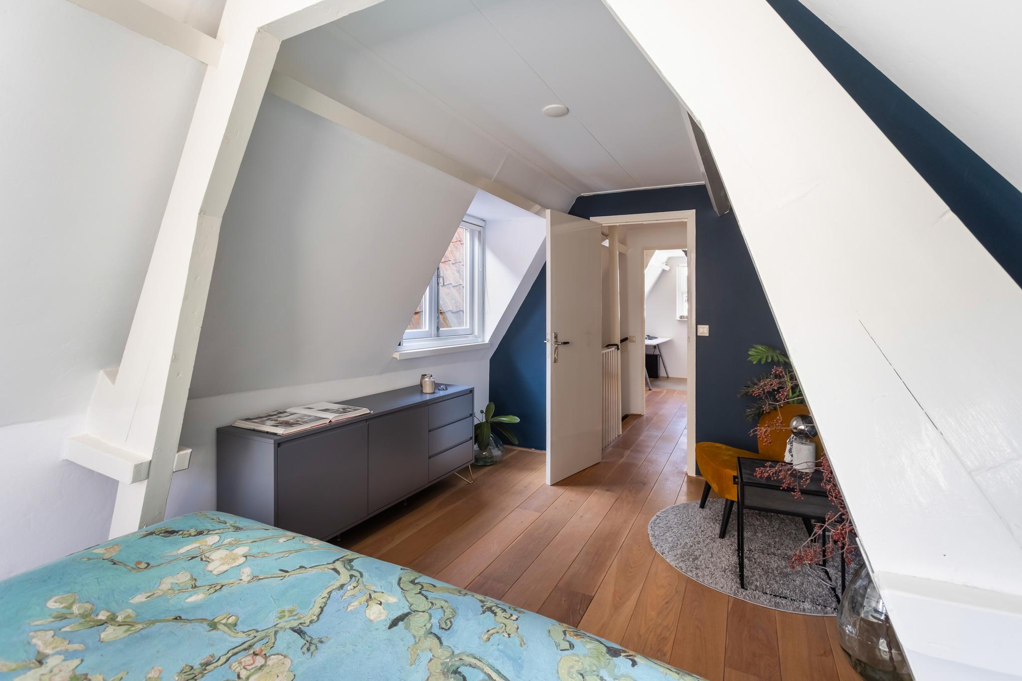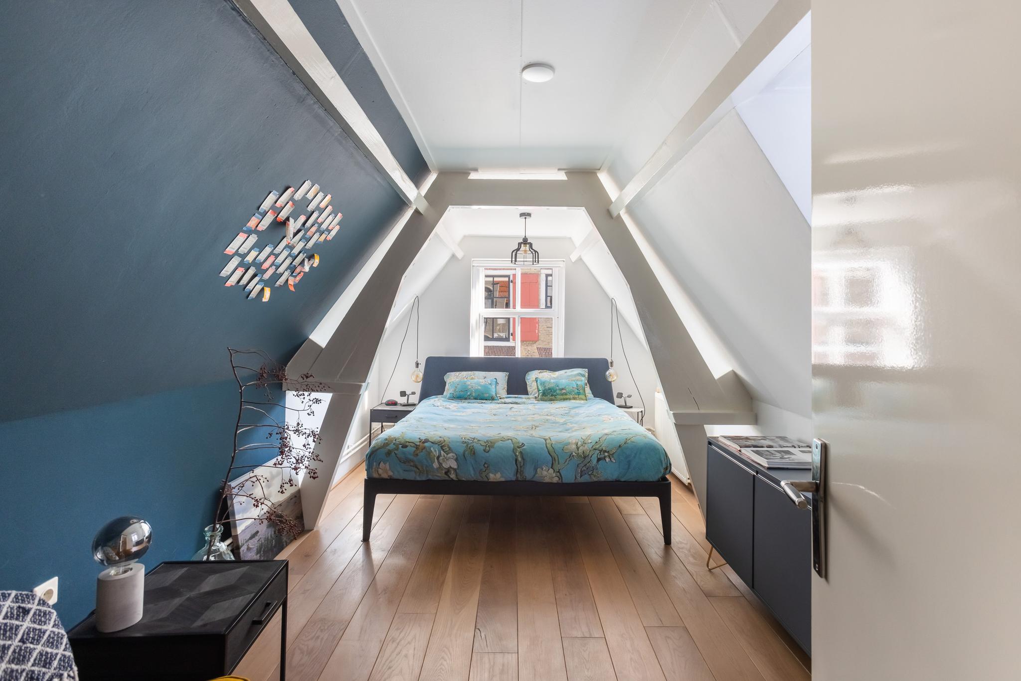 Slaapkamer aan achterzijde, ook hier is het dakspant mooi in beeld gebleven.