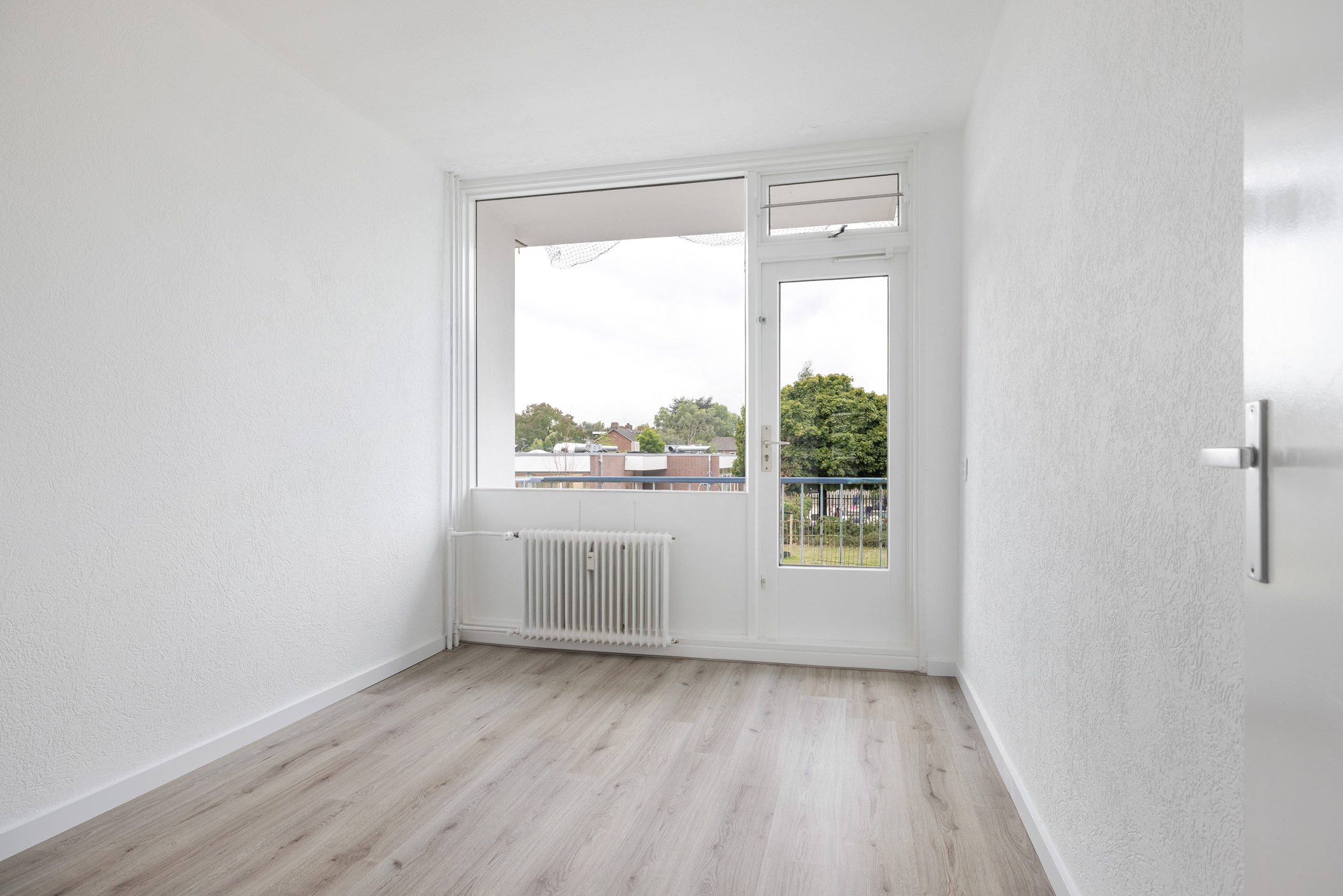 Je hebt hier de beschikking over drie volwaardige slaapkamers; ideaal voor een gezin, een thuiskantoor of logeerkamer. De keuken grenst aan een balkon aan de achterzijde, terwijl je aan de voorkant ook nog een tweede balkon vindt, bereikbaar vanuit een van de slaapkamers. Zo heb je altijd een fijn plekje buiten.