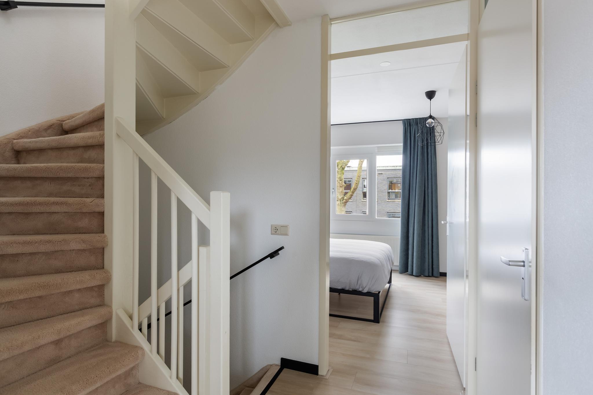 Vanuit de woonkamer is via de trap (bekleed met vloerbedekking) de overloop begaanbaar. De overloop is voorzien van een mooie laminaatvloer.