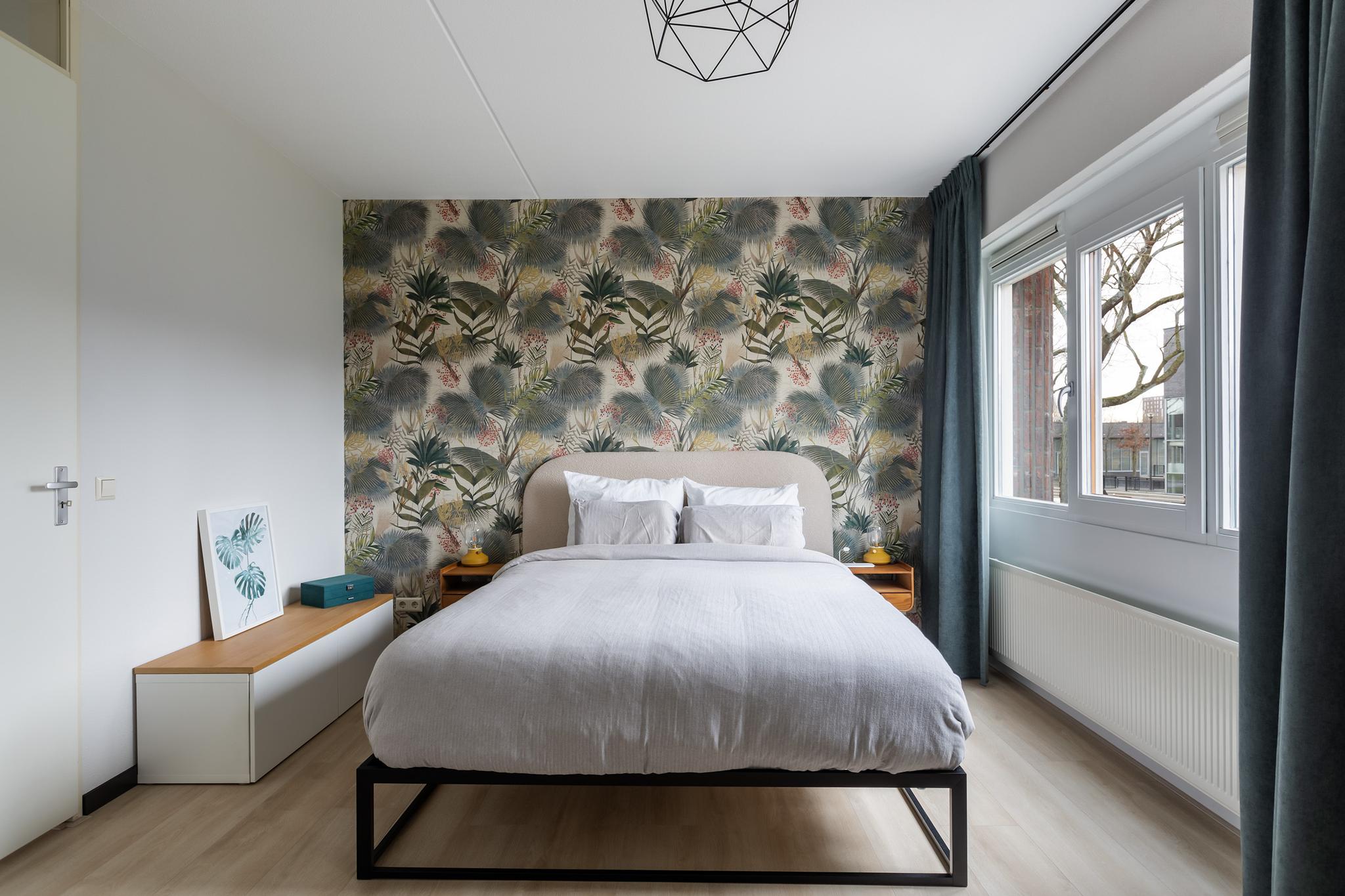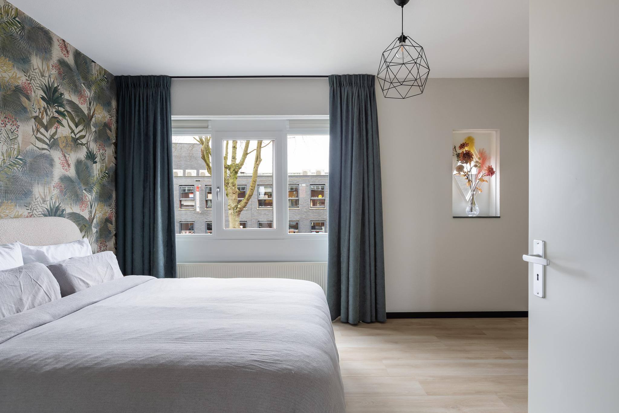 Slaapkamer aan voorzijde met nette laminaatvloer en spagtelputz wandafwerking.