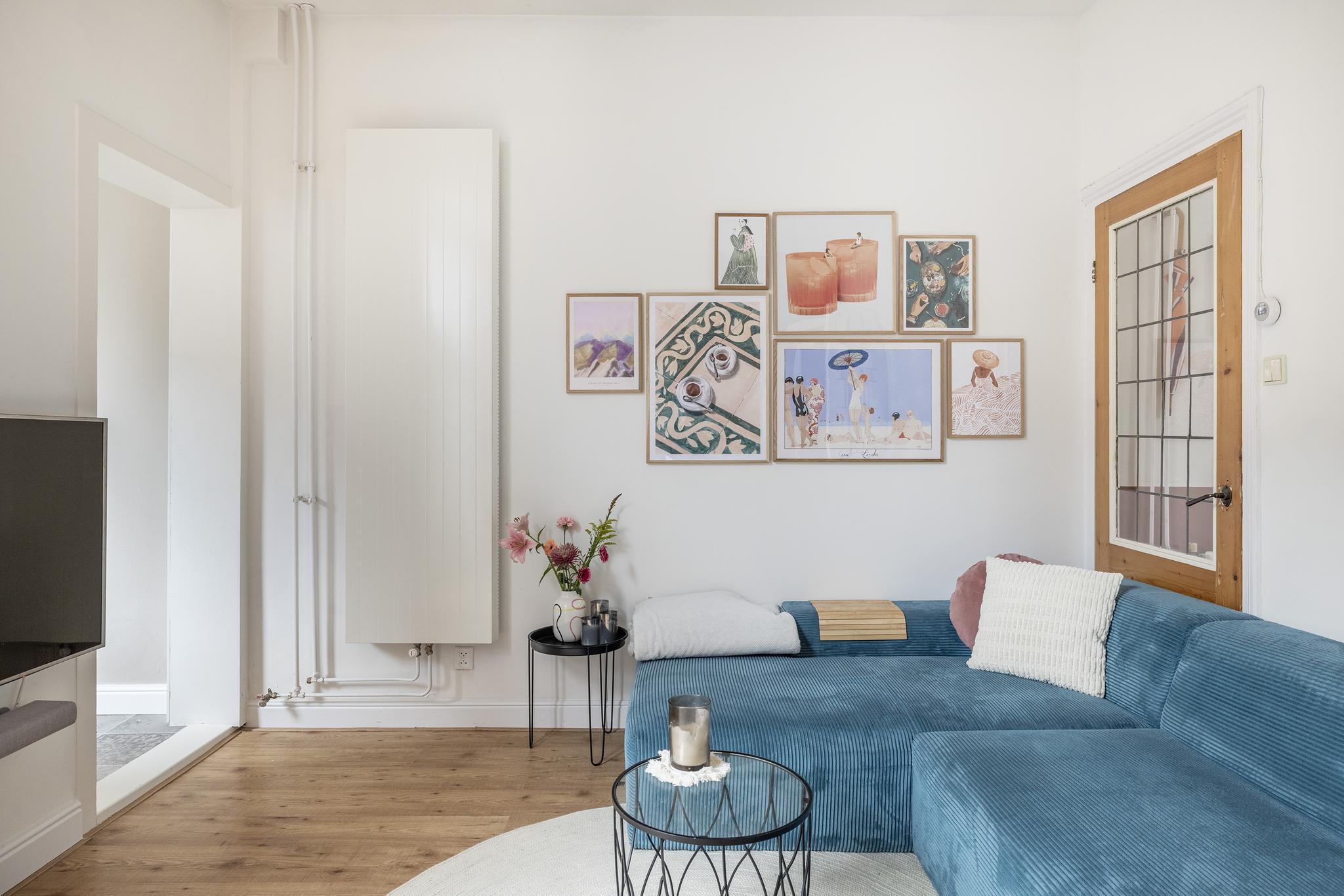 De woonkamer heeft een traditionele indeling met een voor- en achterkamer. De voorkamer is ideaal te gebruiken als eetkamer en beschikt over een vaste inbouwkast, behang en stucwerk wandafwerking en een nette laminaatvloer.