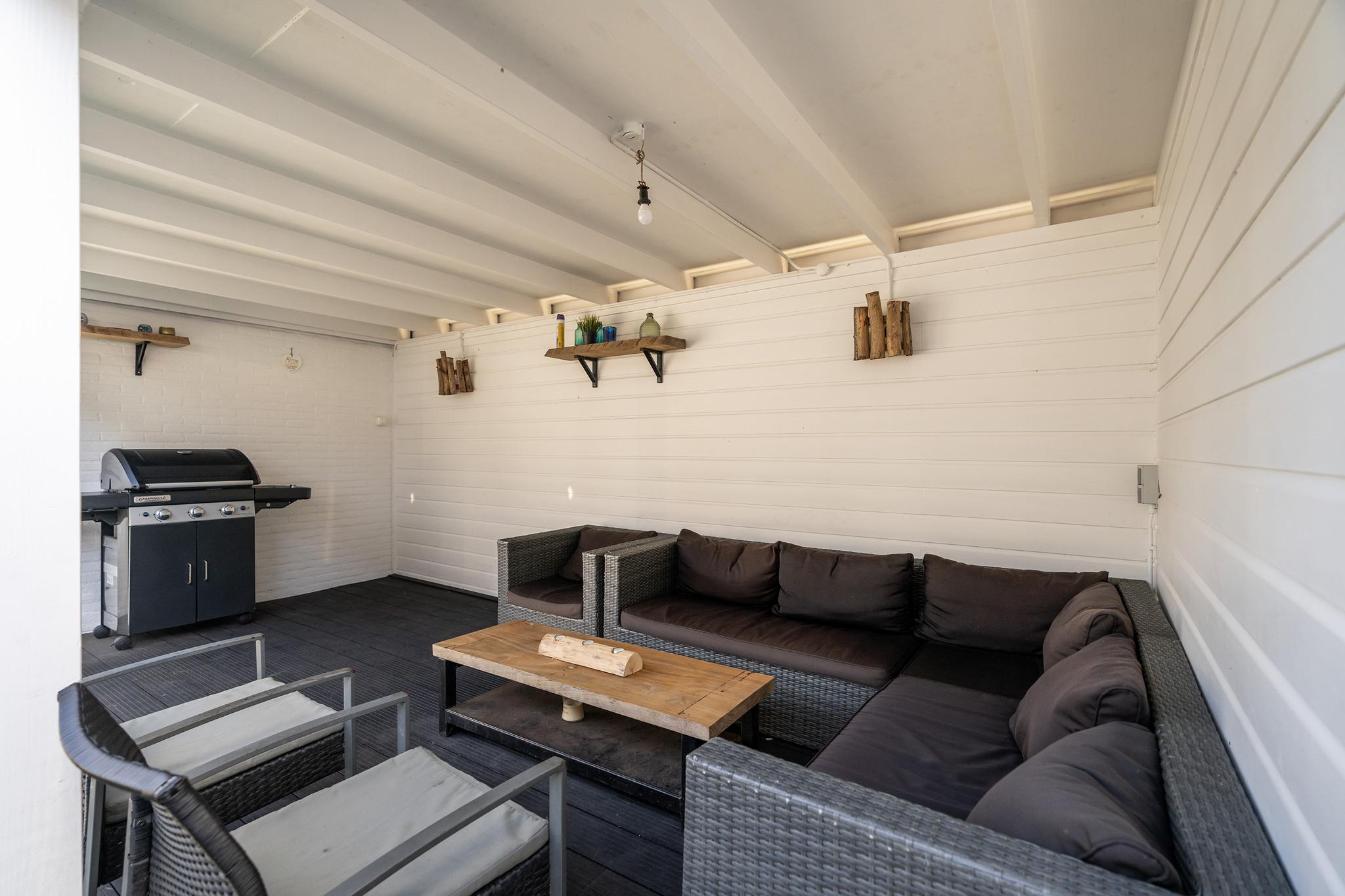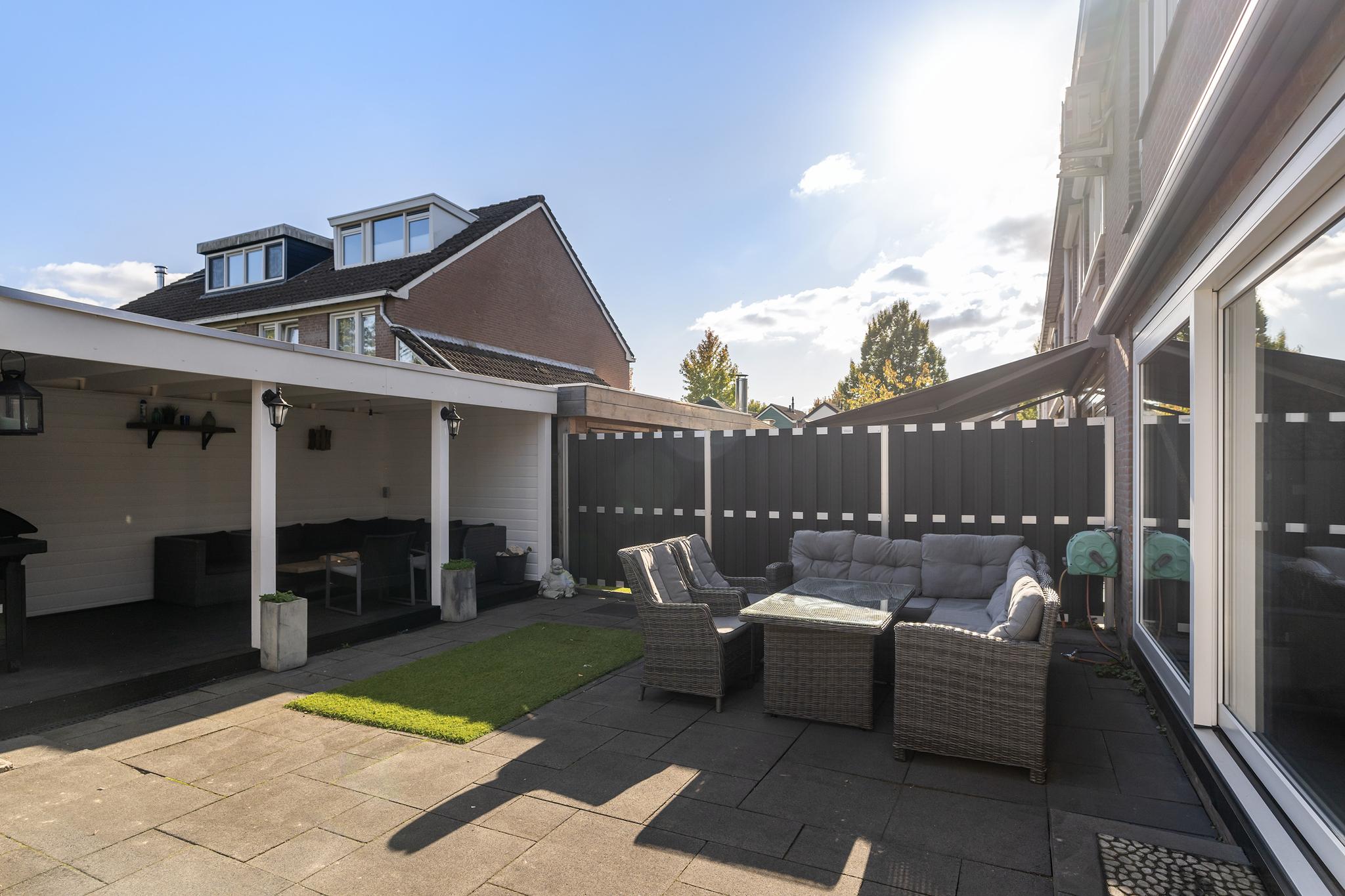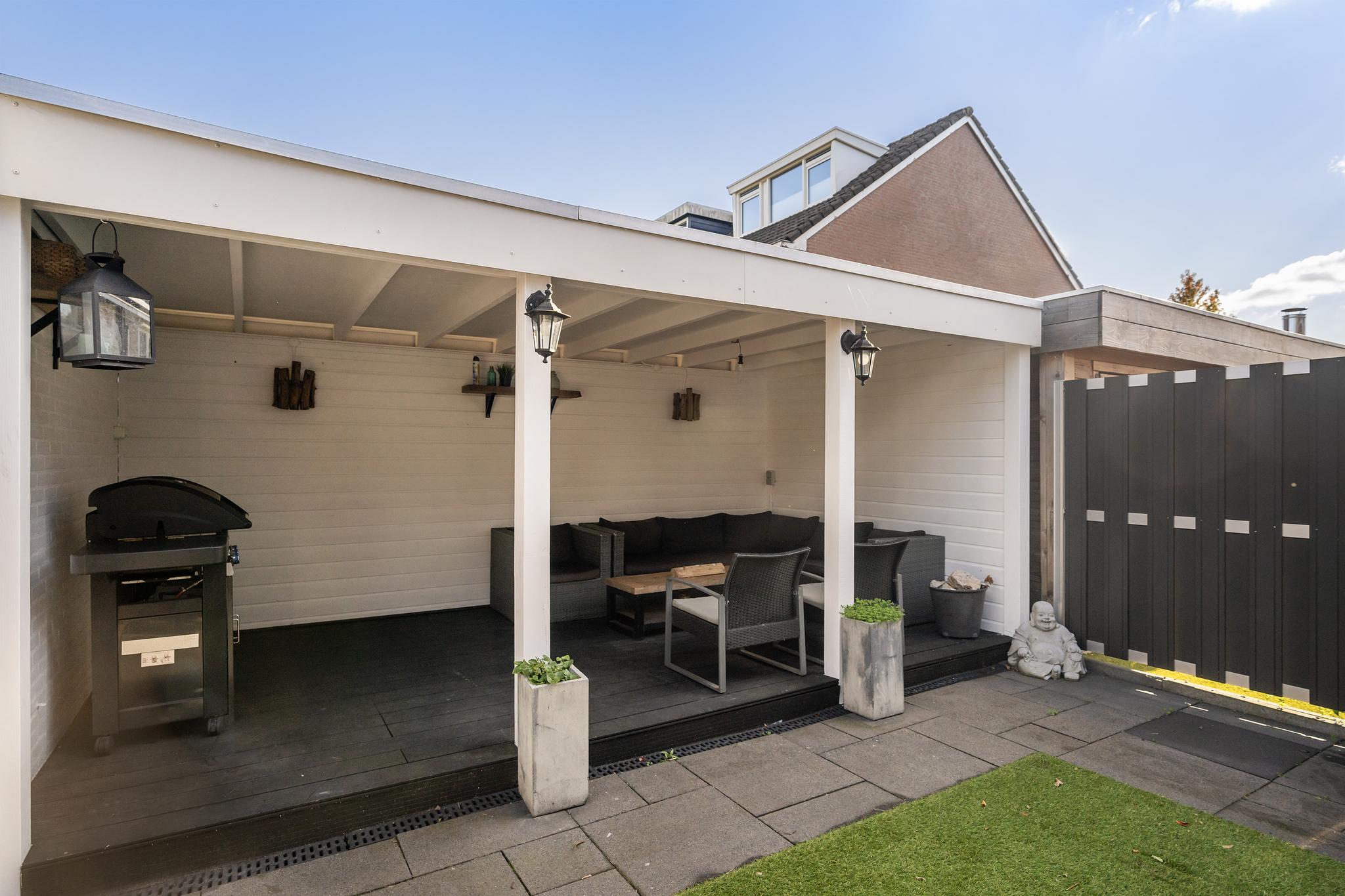 Fijne achtertuin: De achtertuin is voorzien van een berging met overkapping en een elektrisch zonnescherm, ideaal om van de tuin te genieten in elk seizoen.