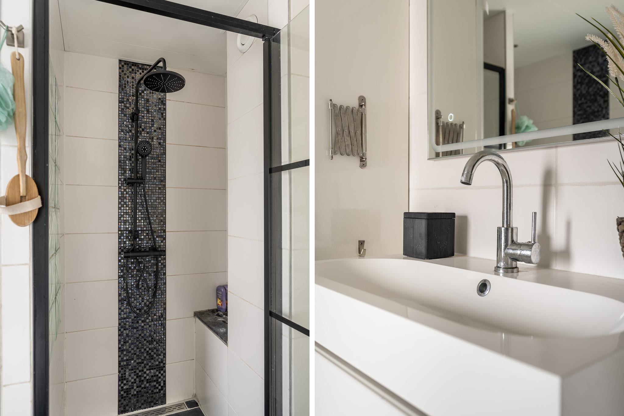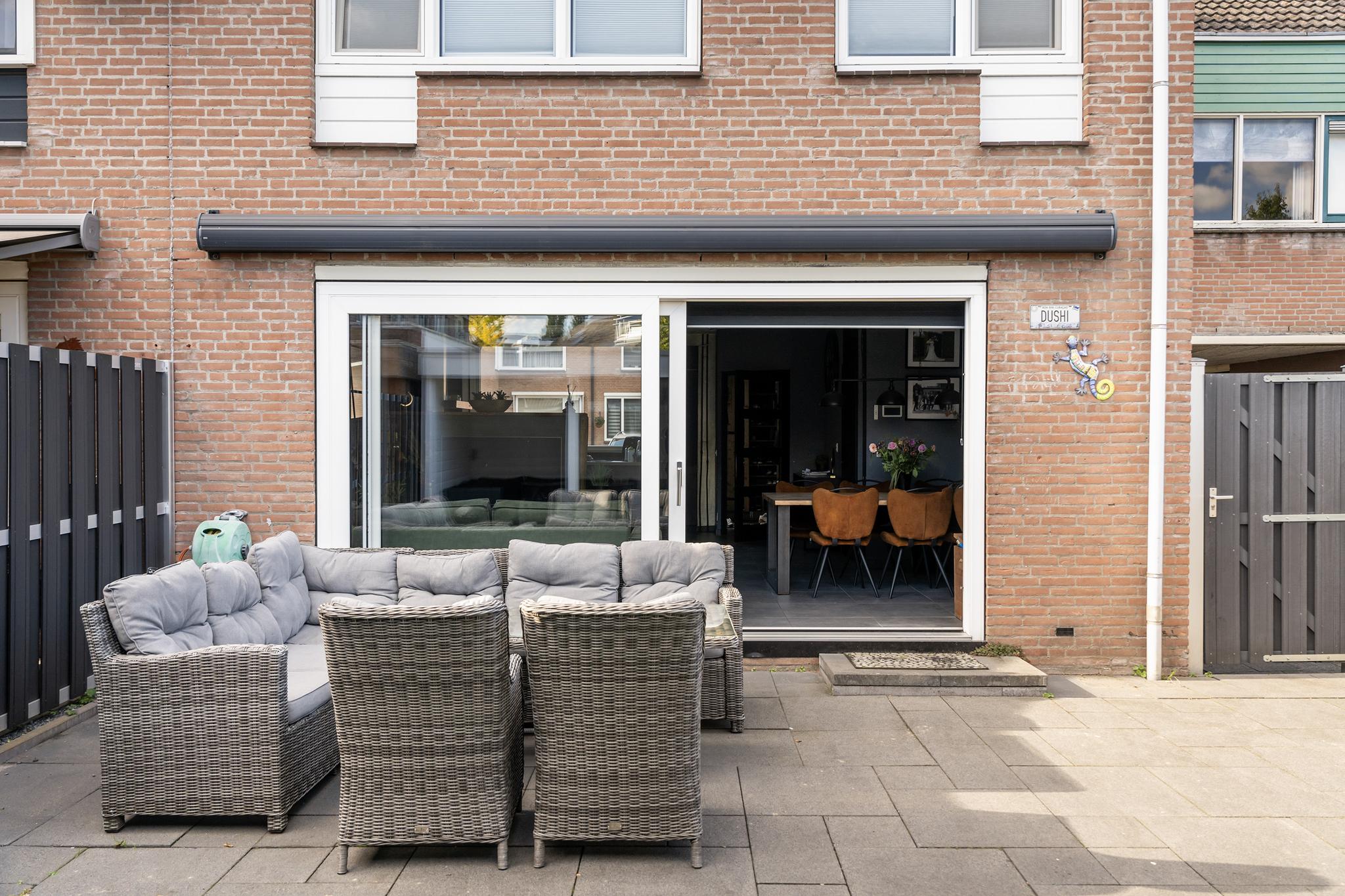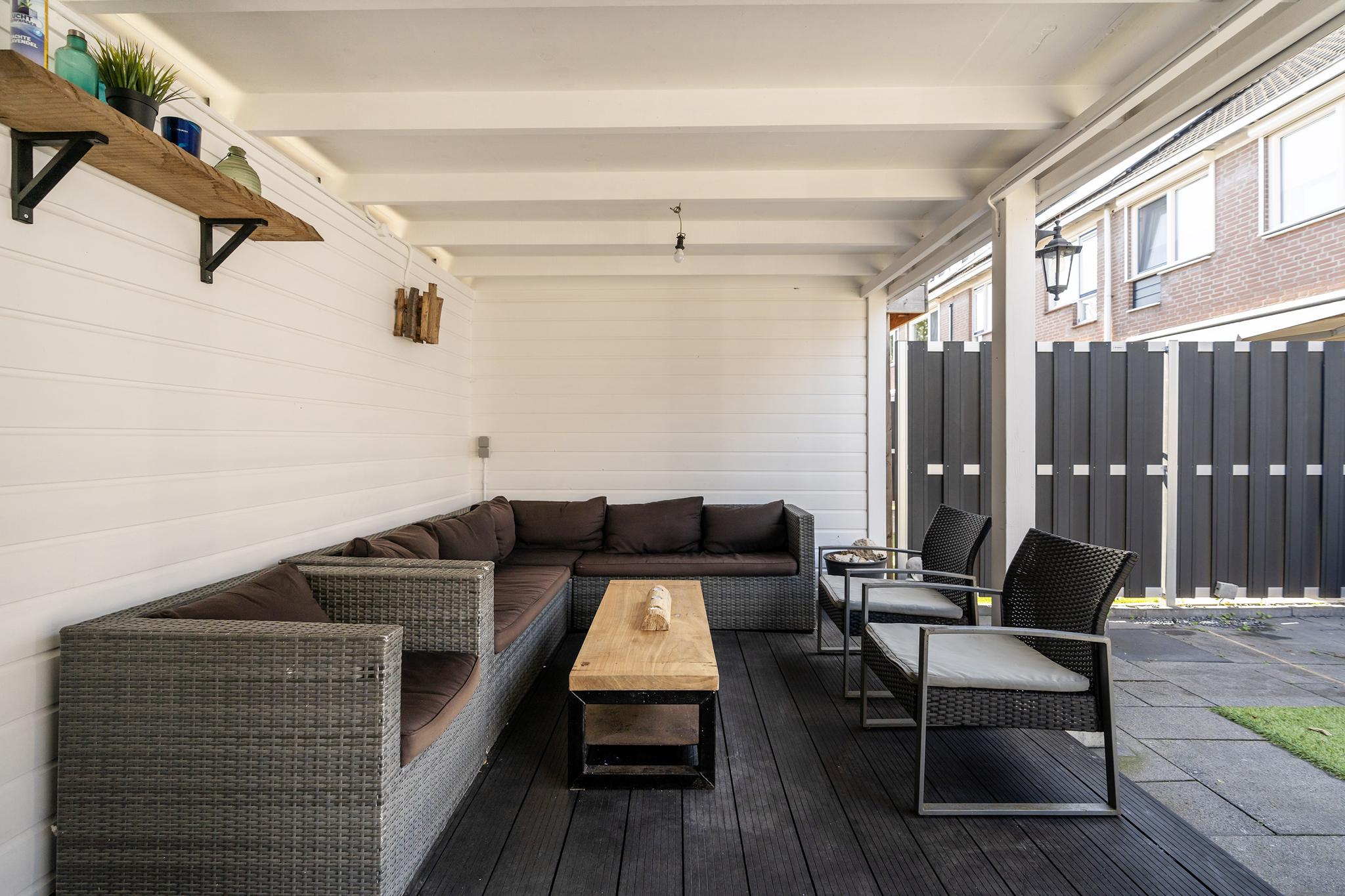 Fijne achtertuin: De achtertuin is voorzien van een berging met overkapping en een elektrisch zonnescherm, ideaal om van de tuin te genieten in elk seizoen.