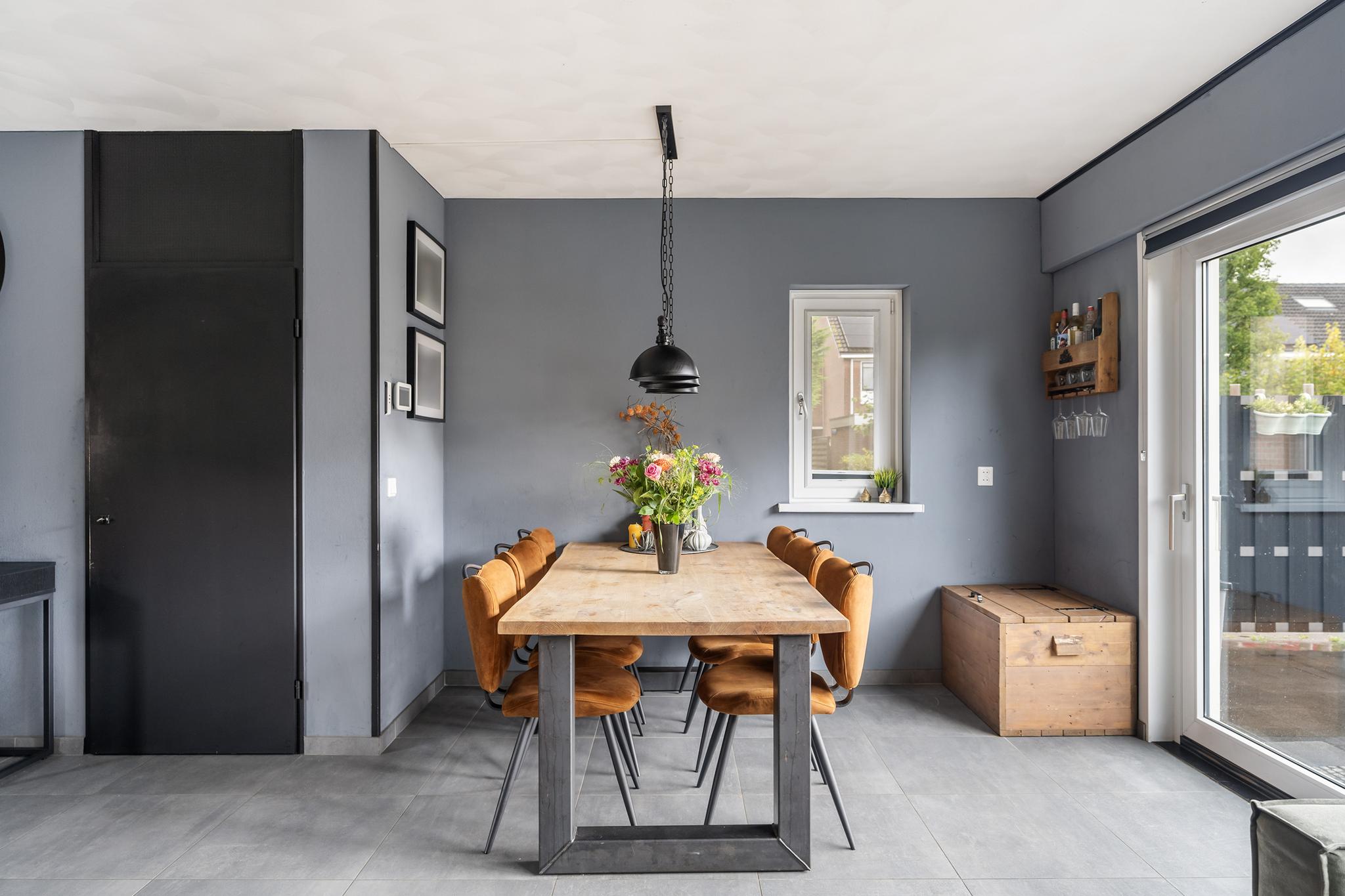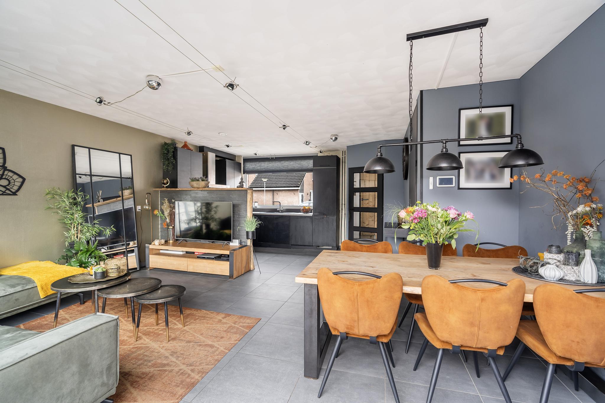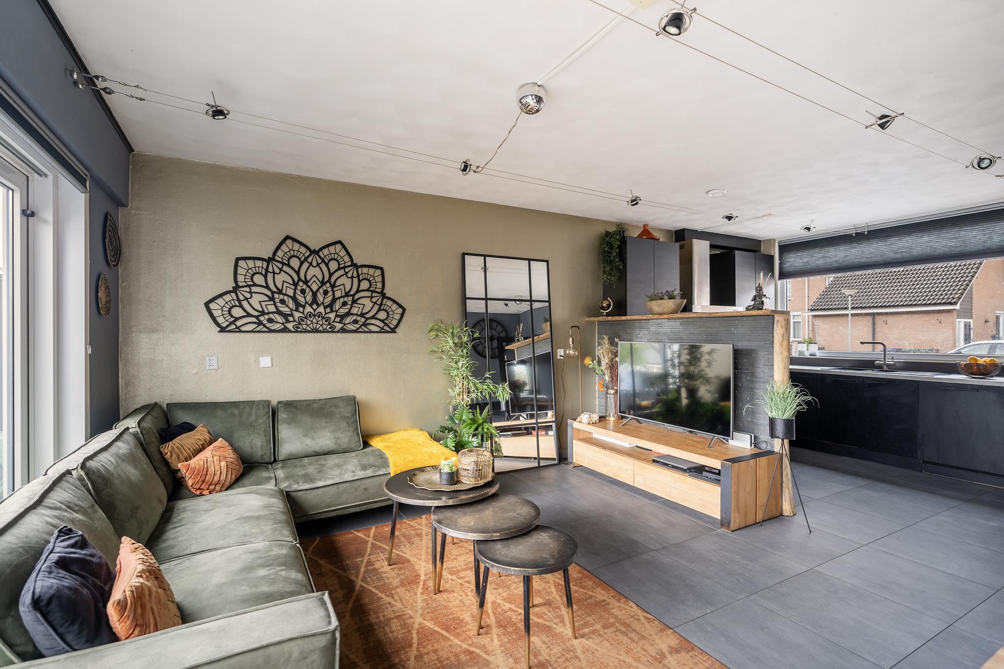 De woonkamer is gelegen aan de achterzijde/ tuinzijde van de woning en de open keuken is gelegen aan de voorzijde van de woning.