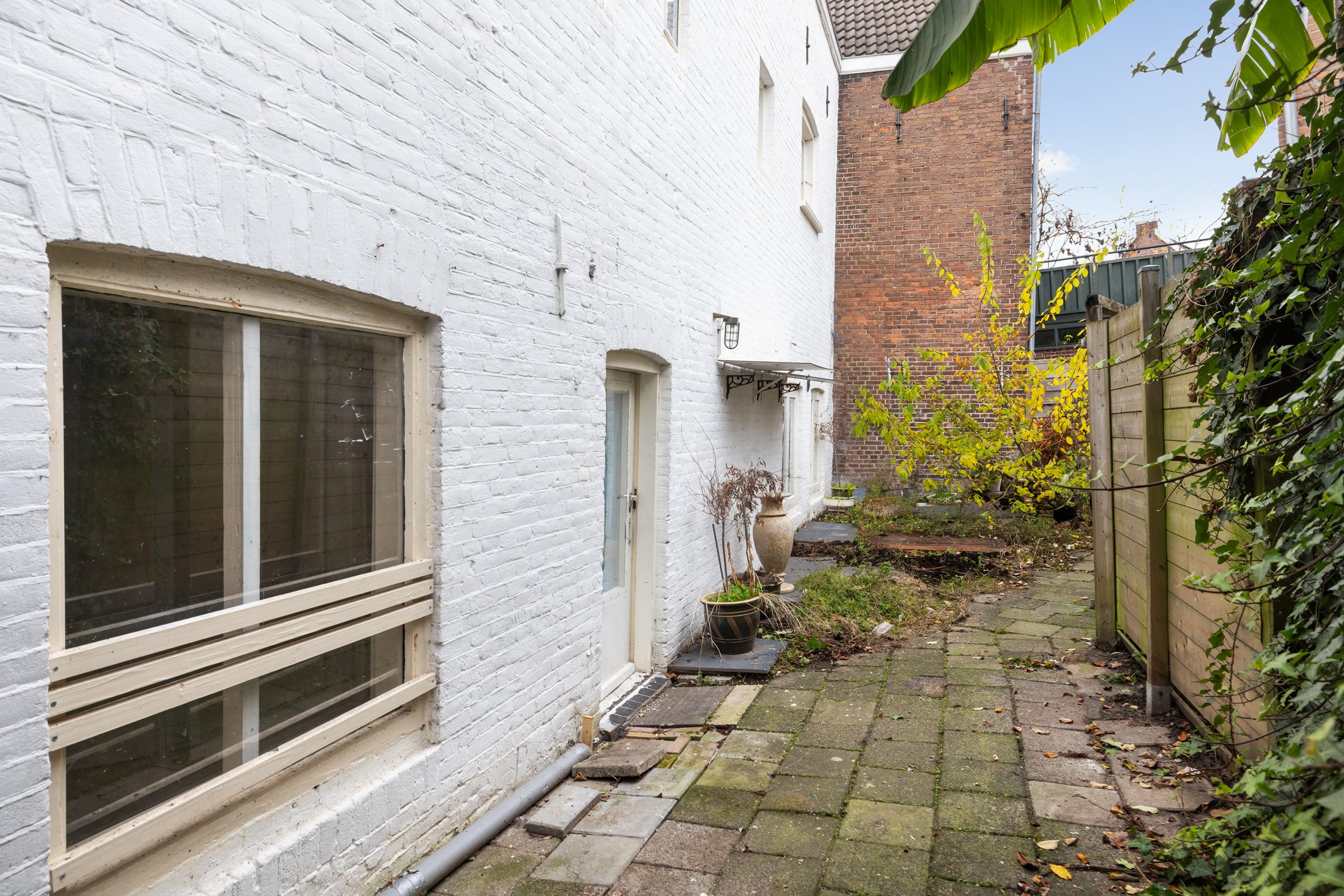 De ruimte achter het huis hoort bij de woning echter is al jaren niet als tuin in gebruik geweest, alleen als achterom.