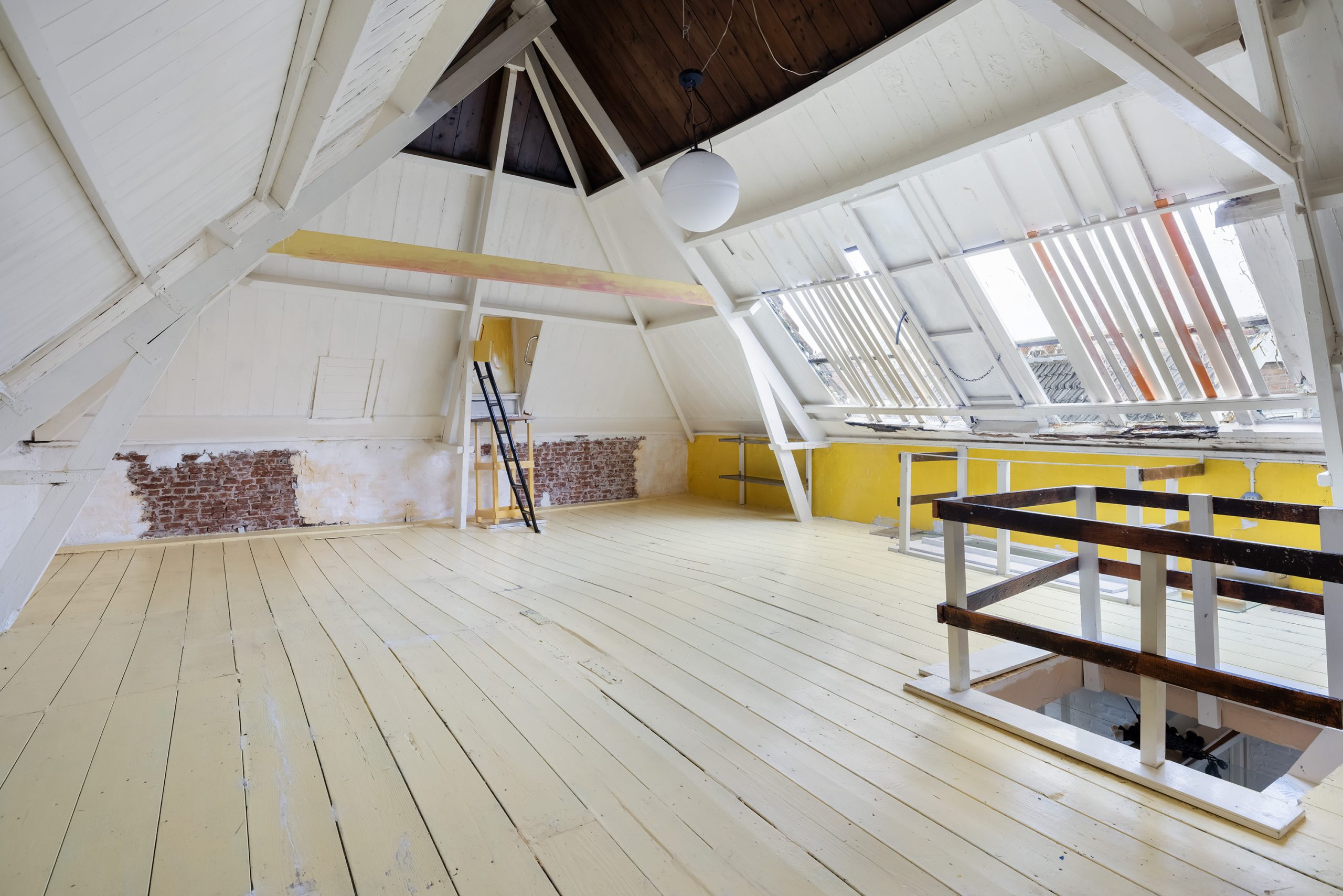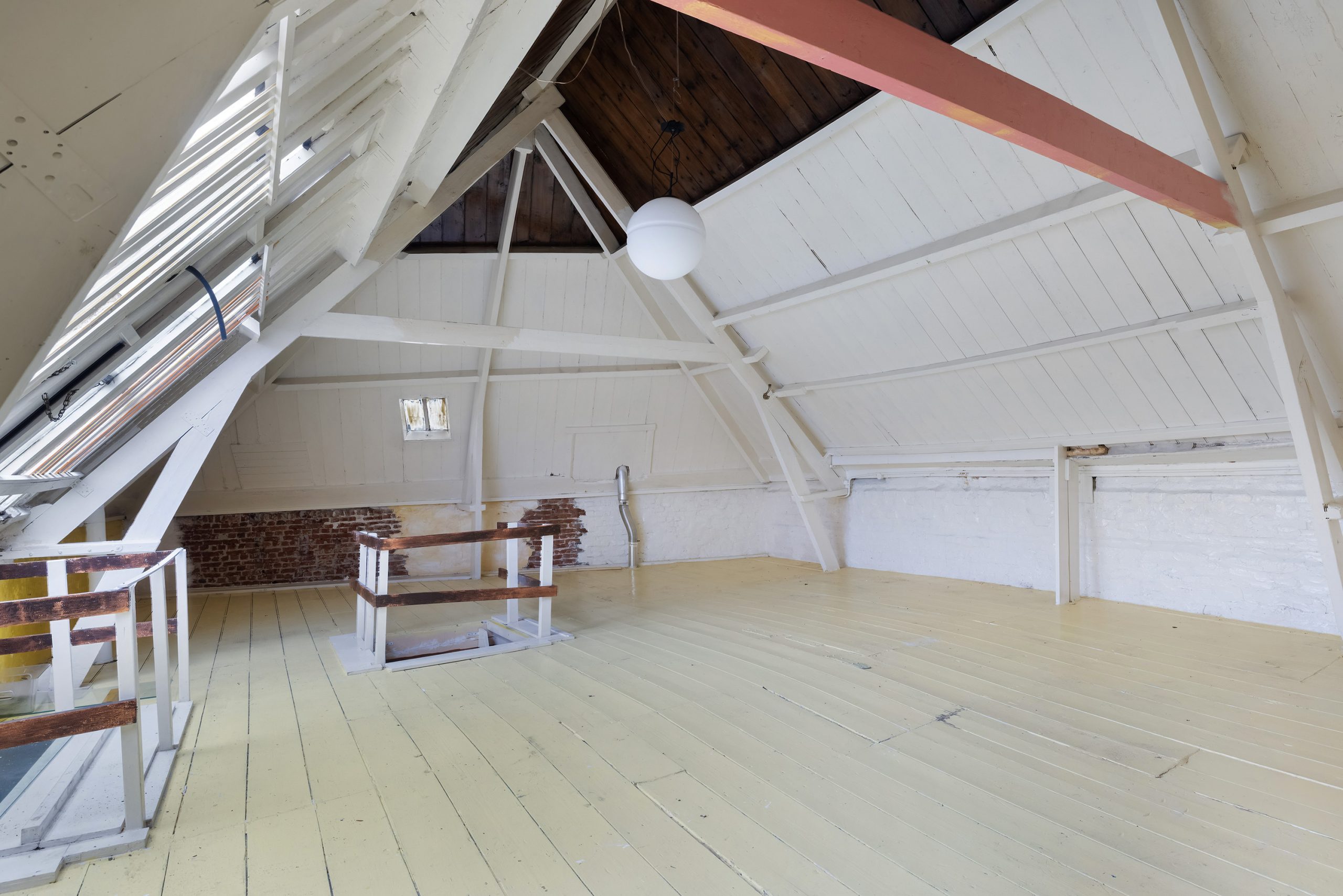 Hele grote open verdieping welke naar eigen smaak en wens in te delen is, er is een luik om het dak op te kunnen en een aantal ramen voor het daglicht.