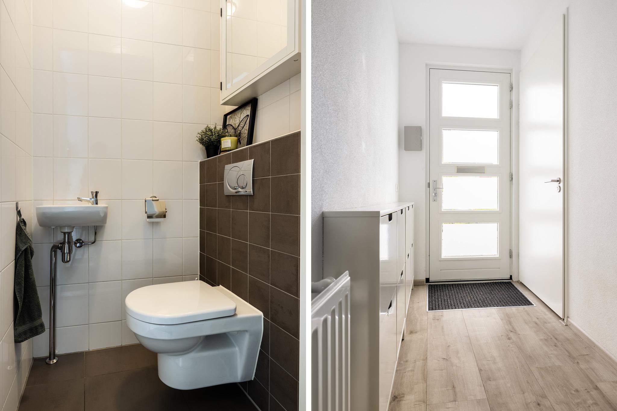 Entree in de hal met toilet, meterkast en toegang tot de woonkamer.