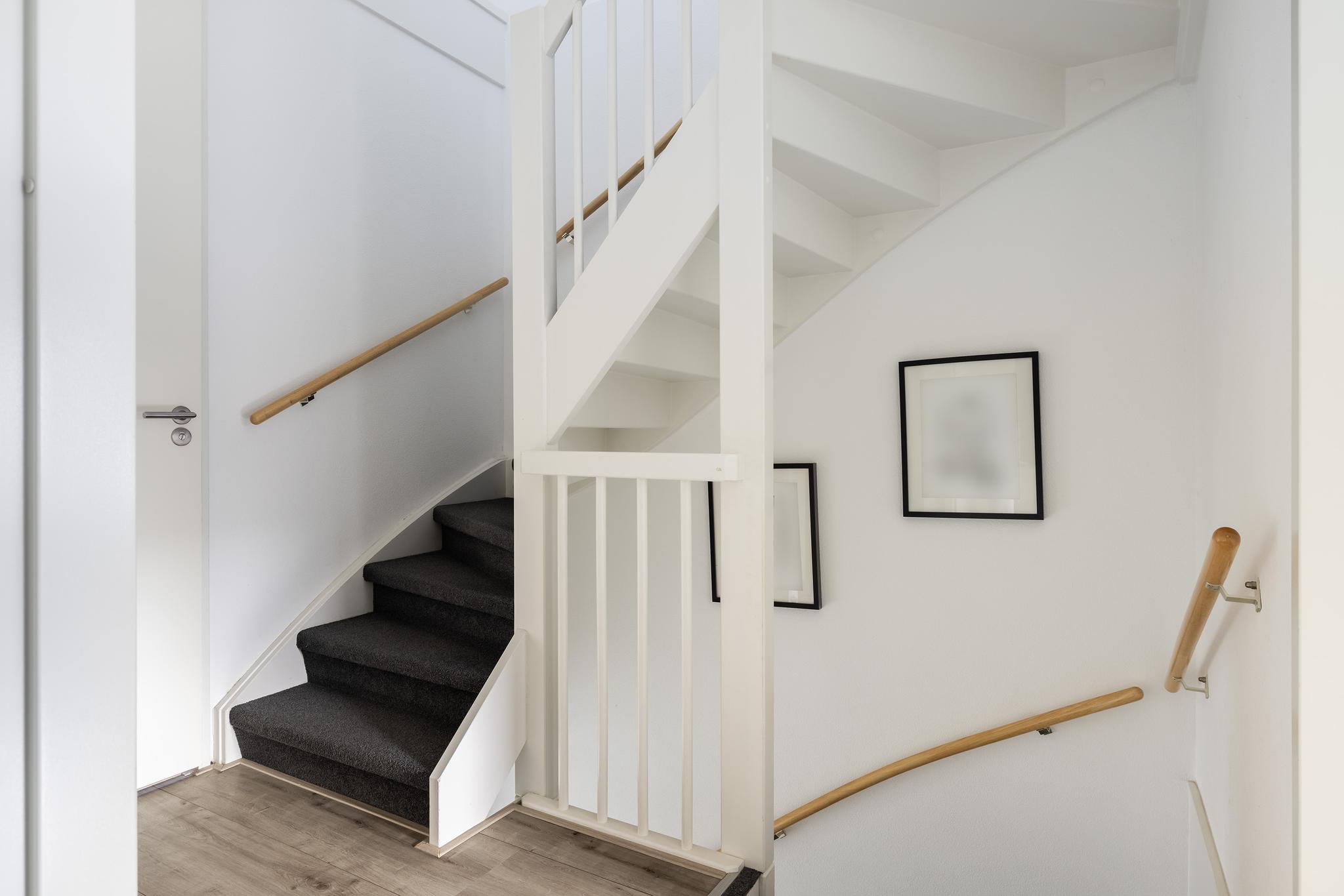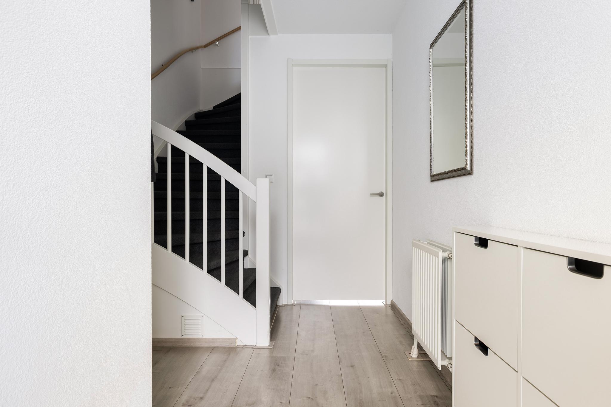 Overloop met vaste trap naar de tweede verdieping en toegang tot alle vertrekken.