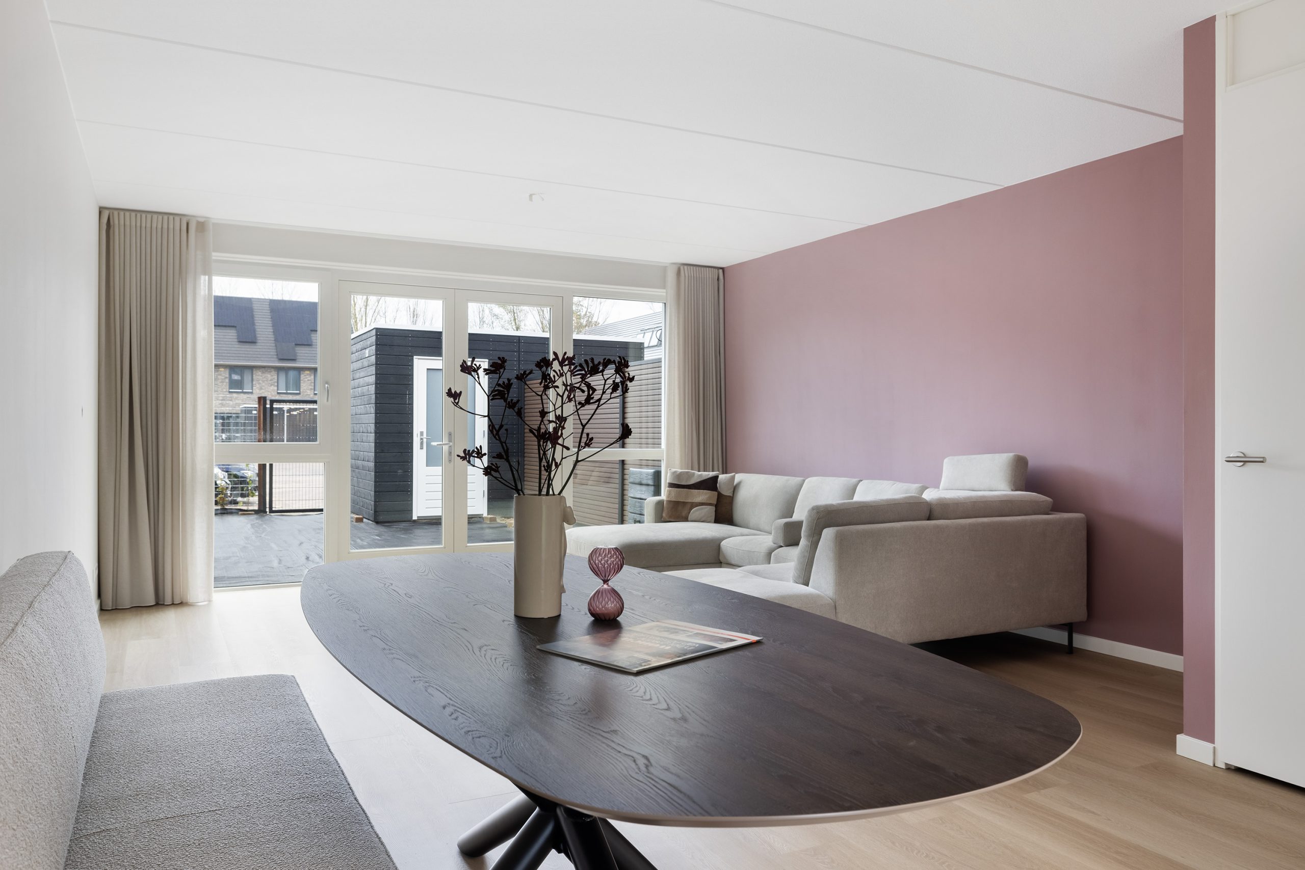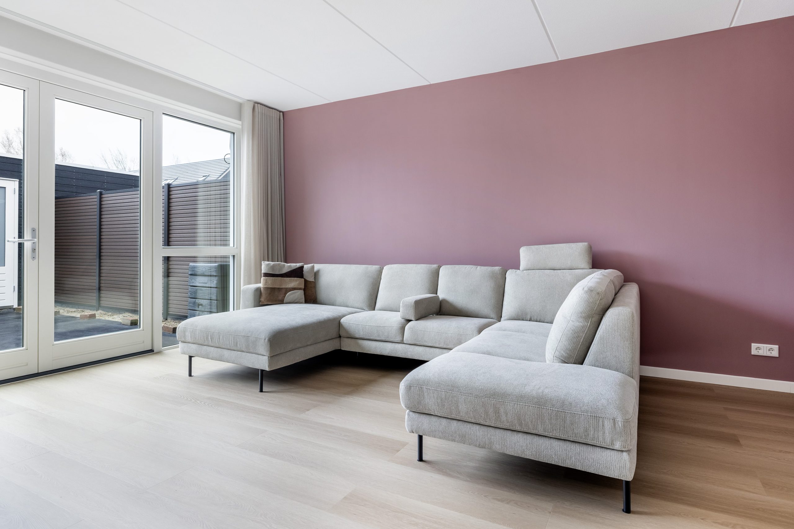 Heerlijk grote woonkamer door de aanbouw van circa 2.40 meter met openslaande deuren naar de achtertuin.