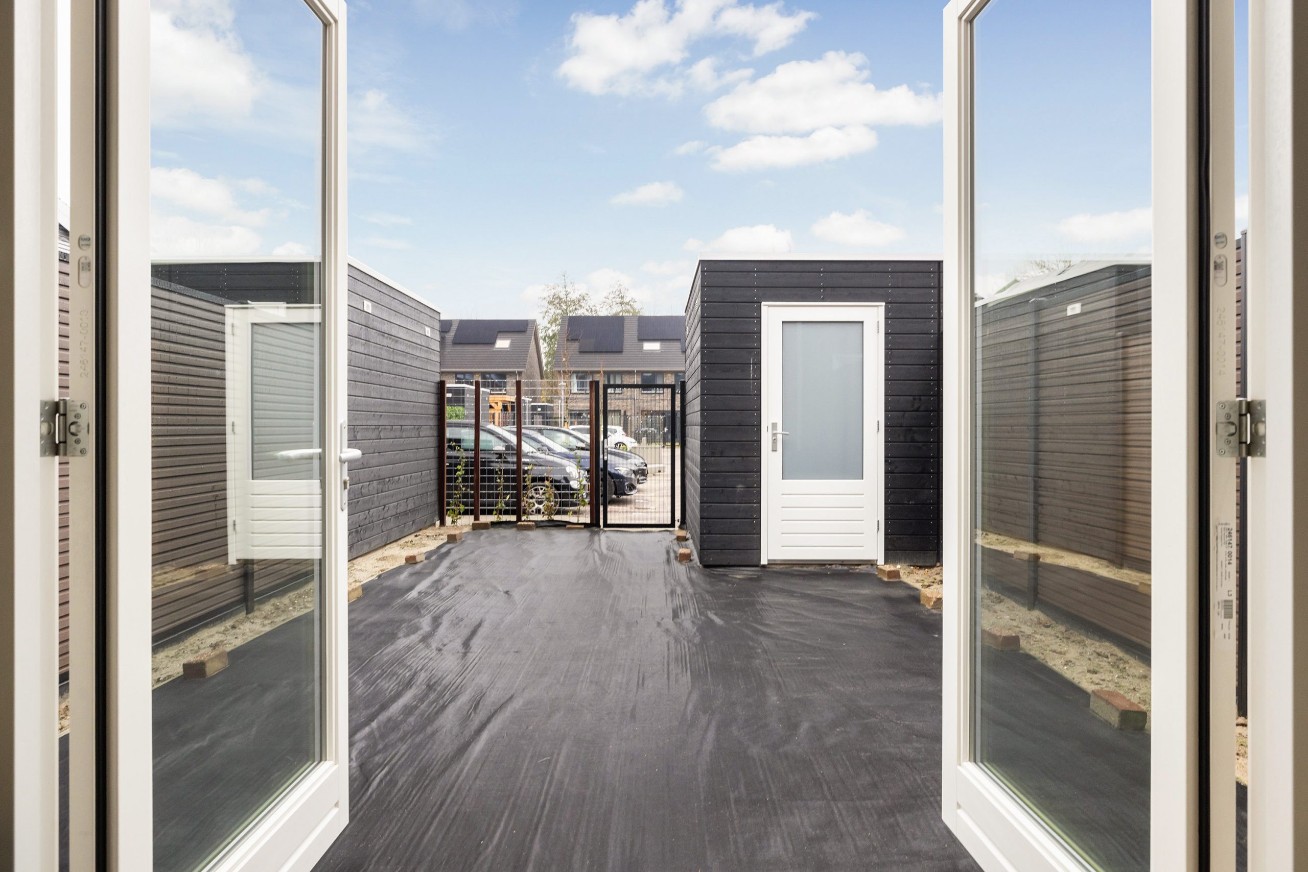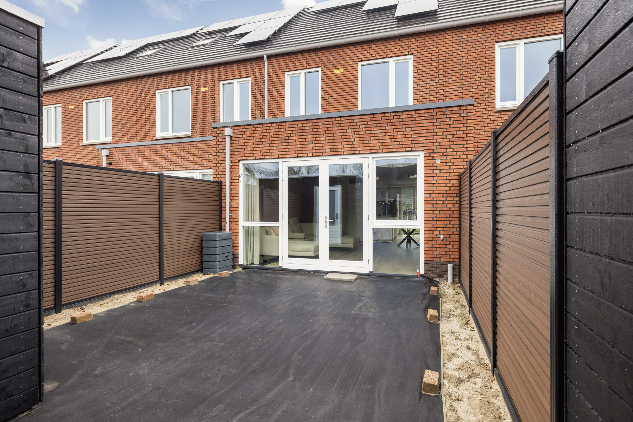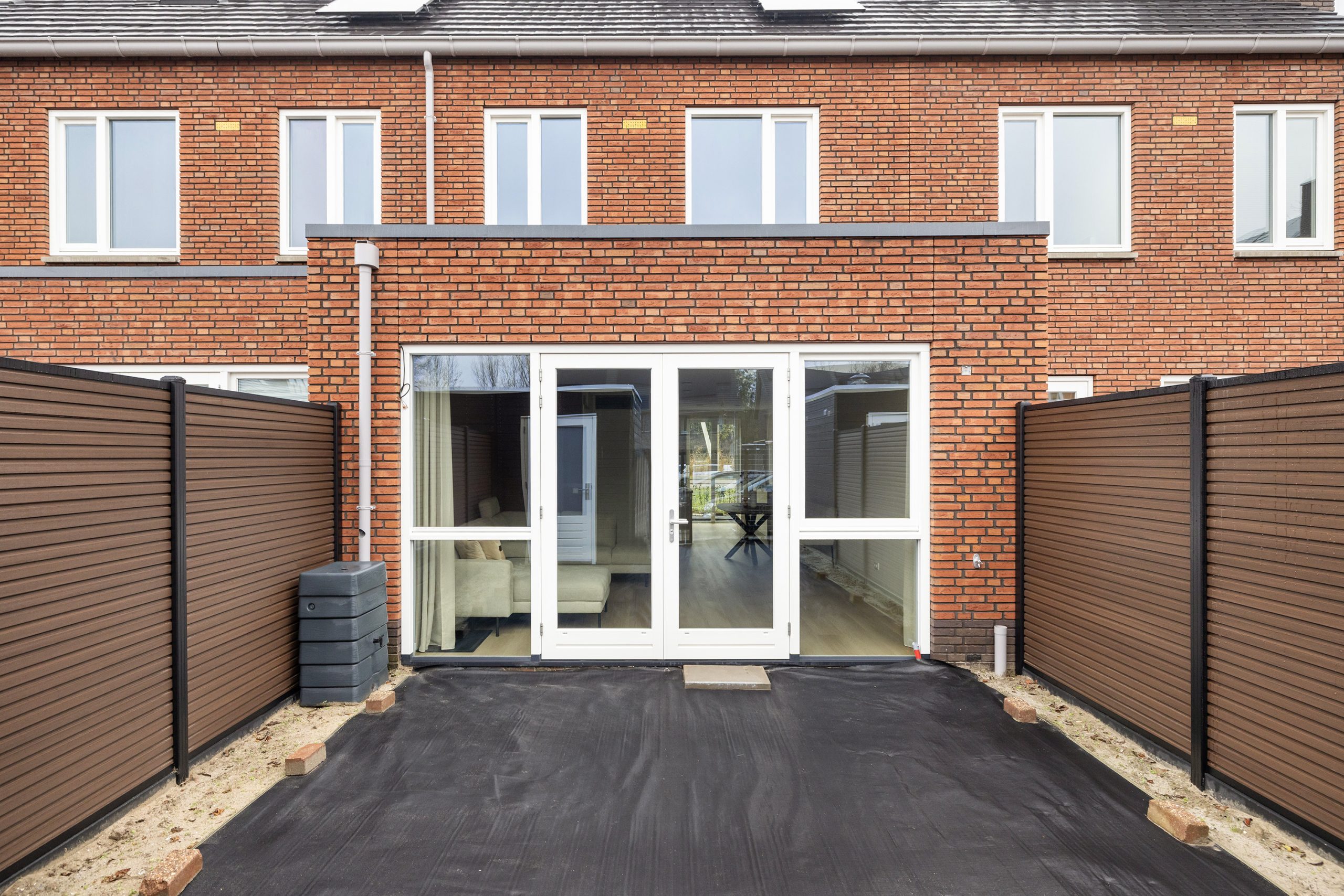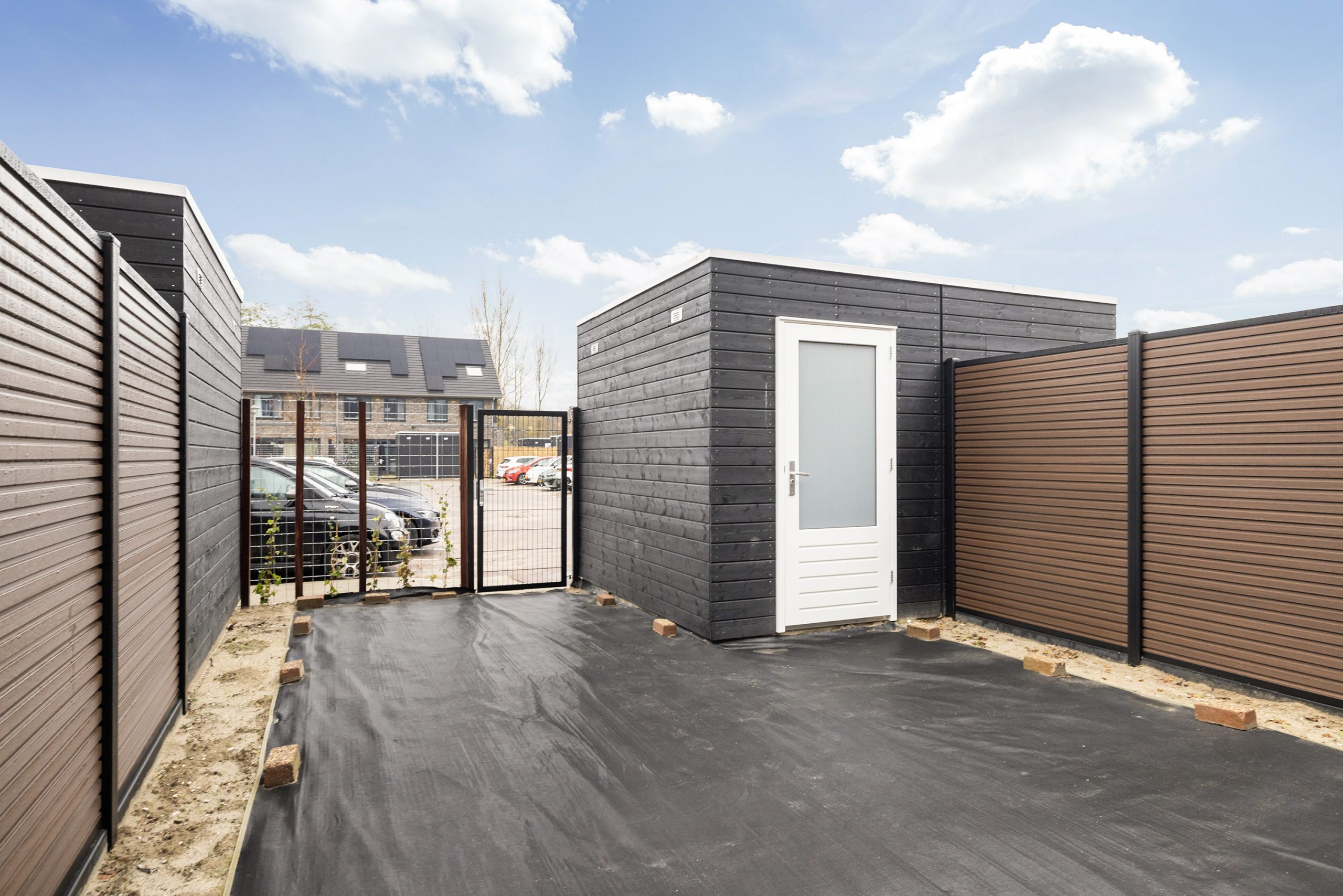 De achtertuin is al voorzien van een zandlaag, nu ligt hier worteldoek op, je kunt dus je eigen droomtuin nog realiseren! Achterin de tuin is een poort naar de achterom en een eigen houten berging aanwezig. De schuttingen zijn gemaakt van onderhoudsarm composiet. Bij de achtergevel is een waterton geplaatst vanuit de bouw.