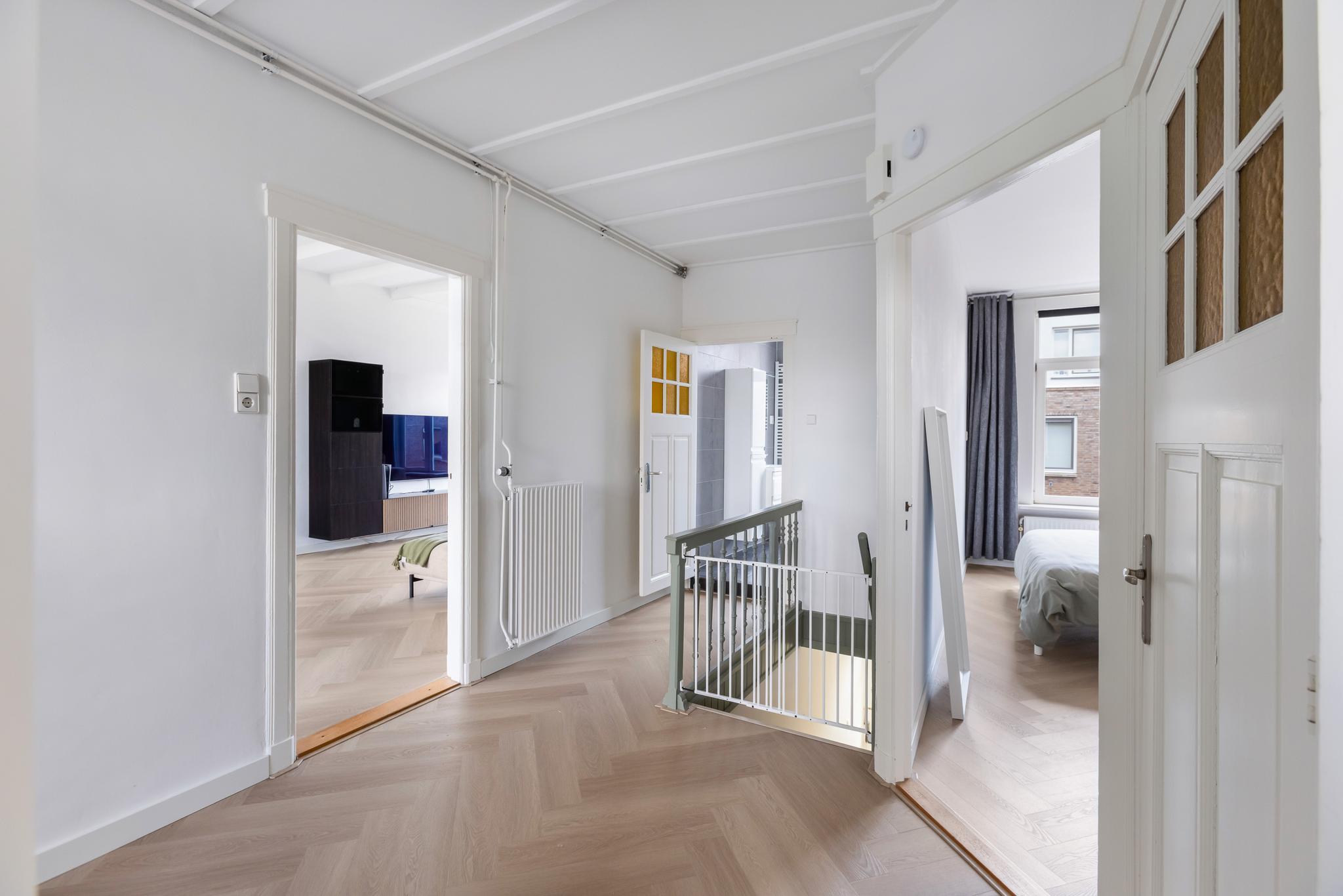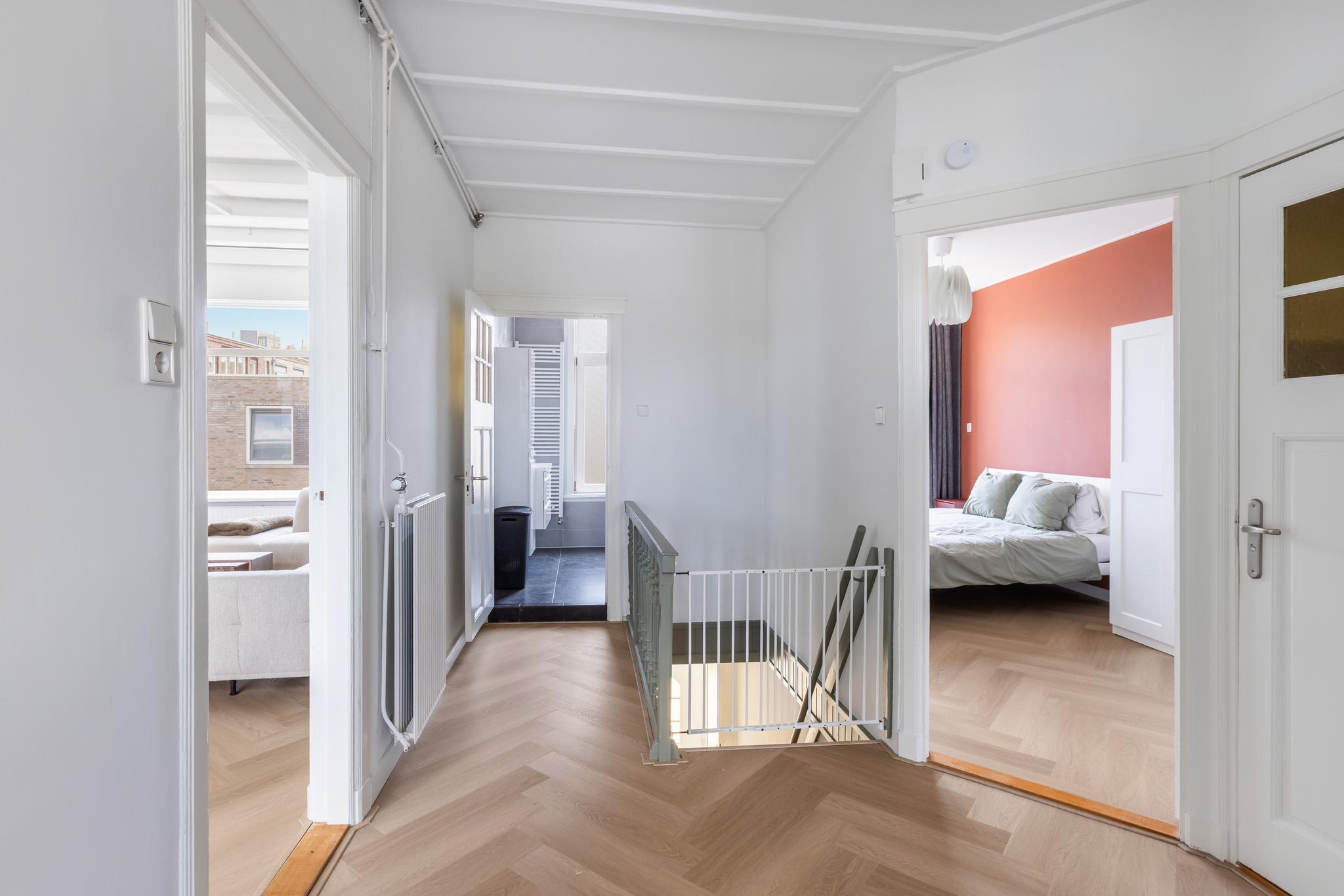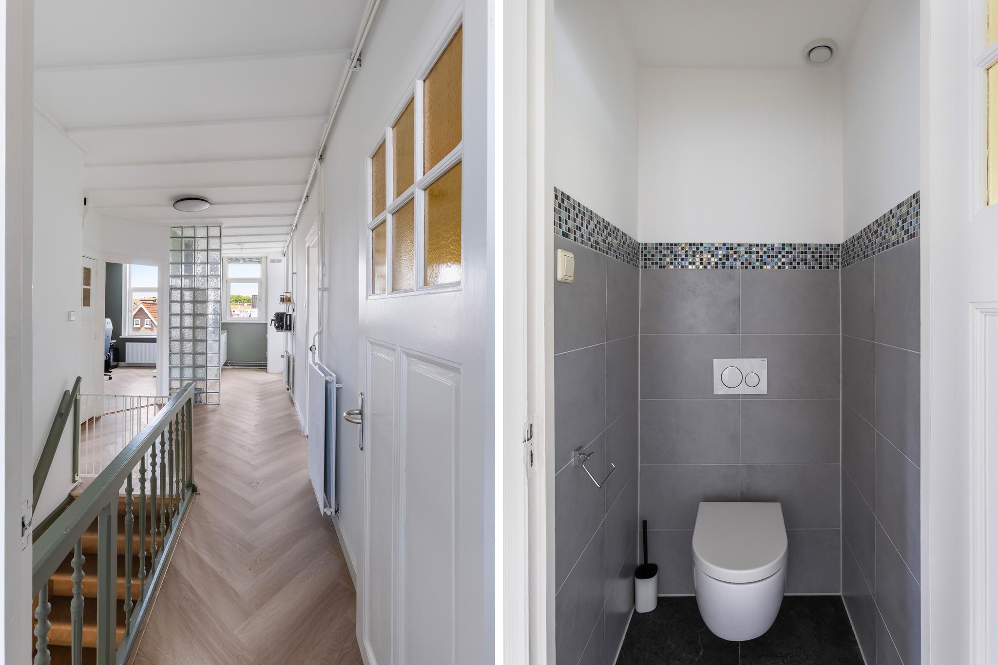 Grote overloop met toegang tot alle vertrekken. Toilet (deels betegeld) met vrijhangend closet.