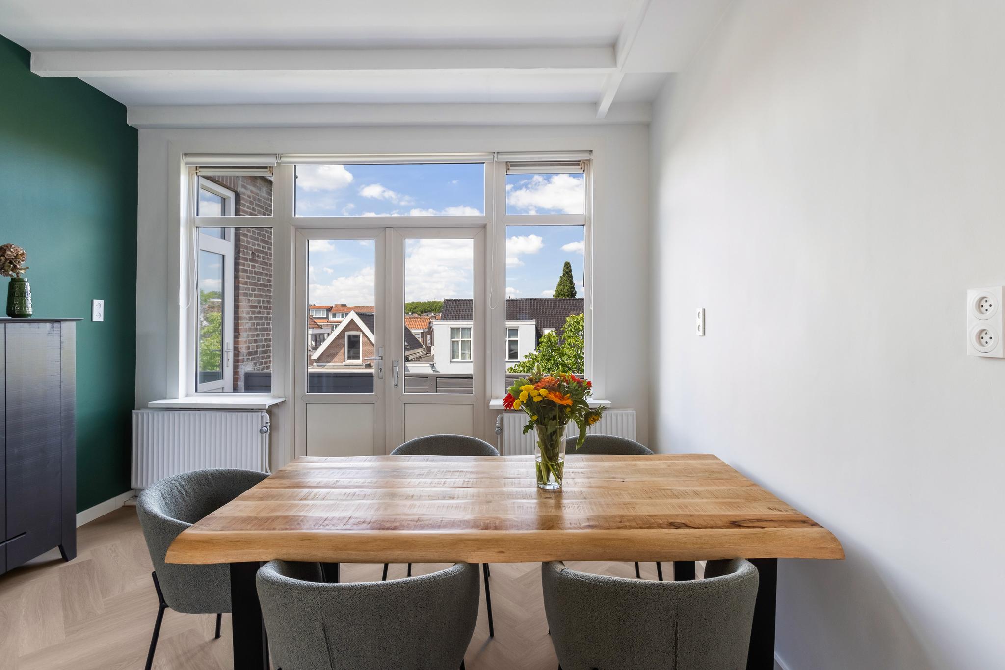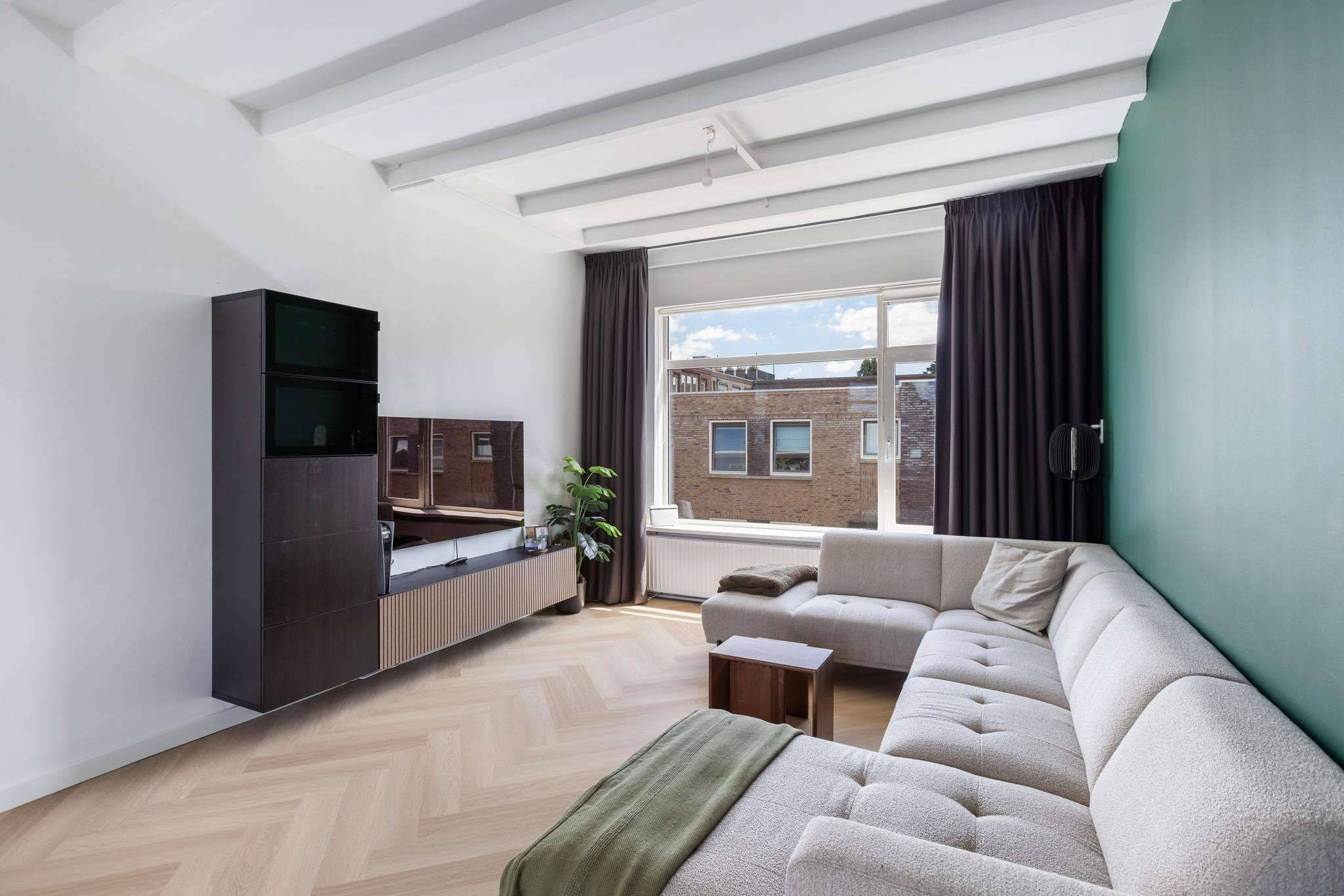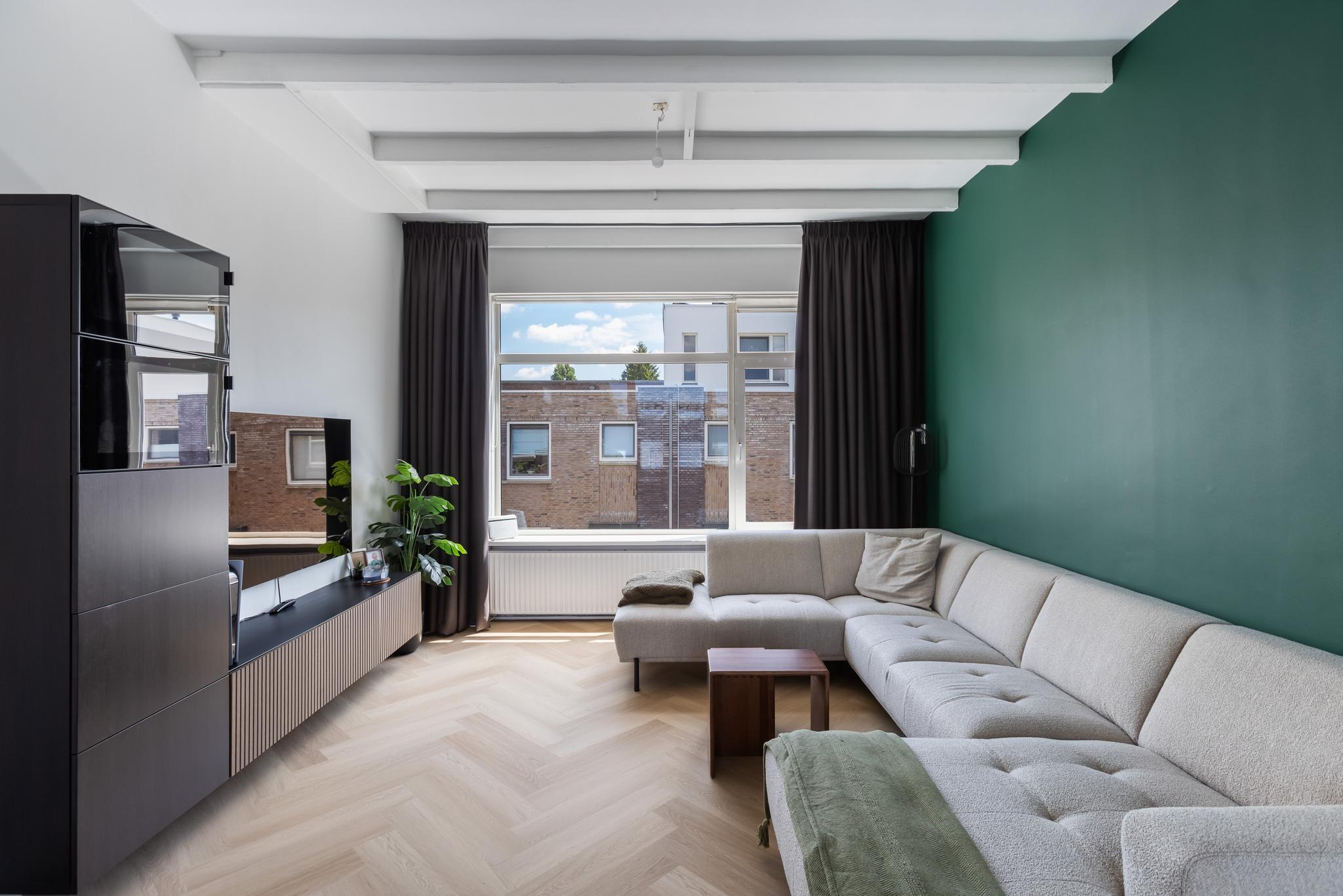 Door de hoge plafonds voelt het appartement heerlijk licht en ruimtelijk. Daarnaast biedt het appartement veel comfort door de kunststof kozijnen met HR+ glas en dakisolatie.