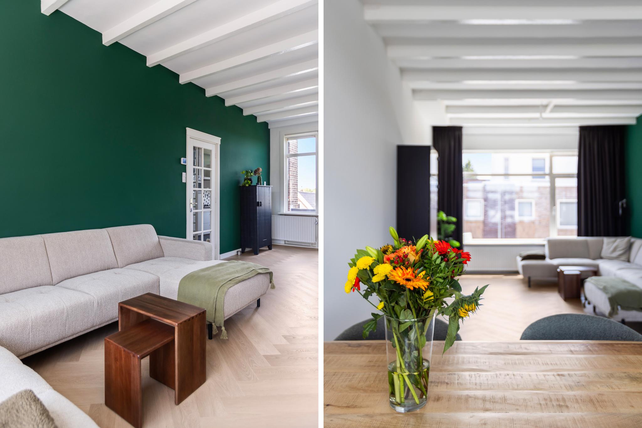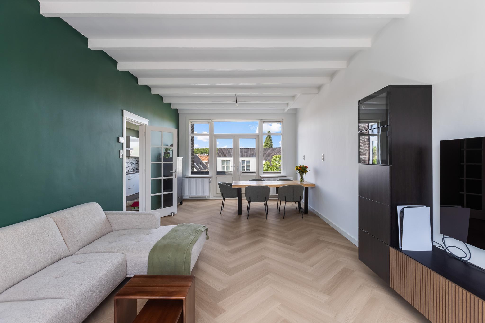 - Instapklare bovenwoning met ruime woonkamer, moderne keuken en badkamer en twee slaapkamers.
