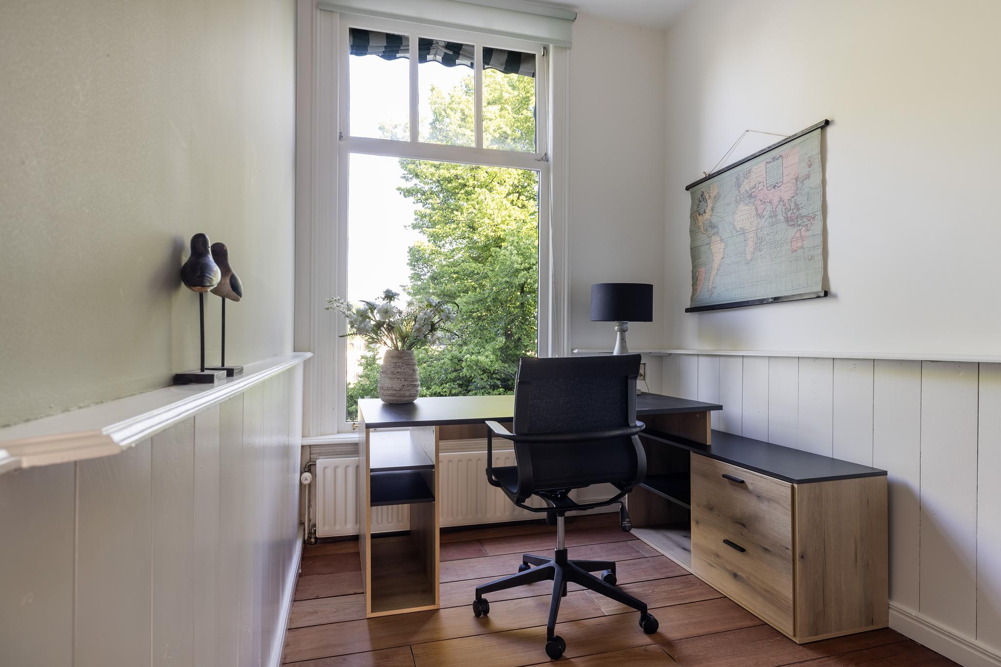 Kleine kamer aan voorzijde met vaste kast, dit is de perfecte thuiswerkplek!