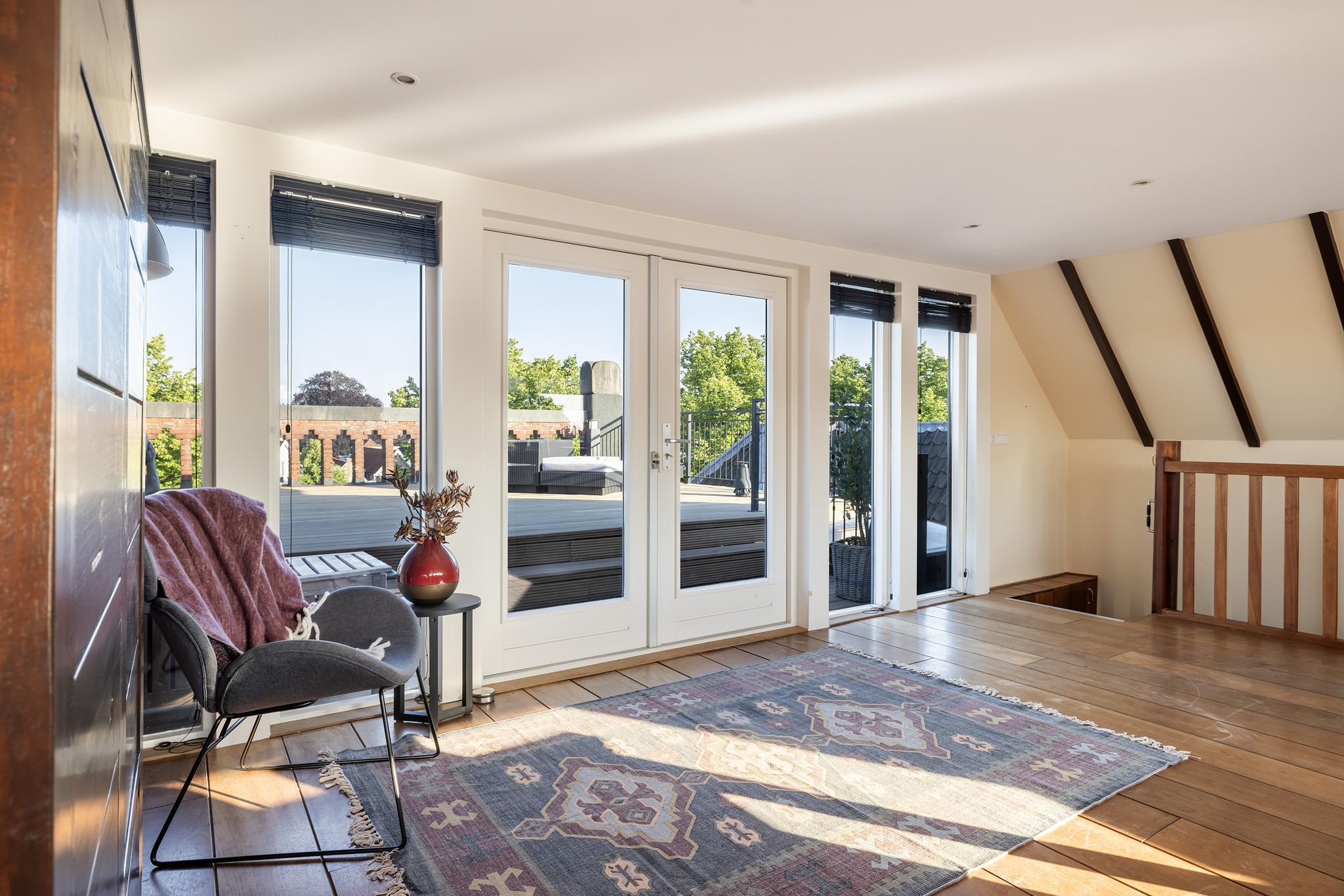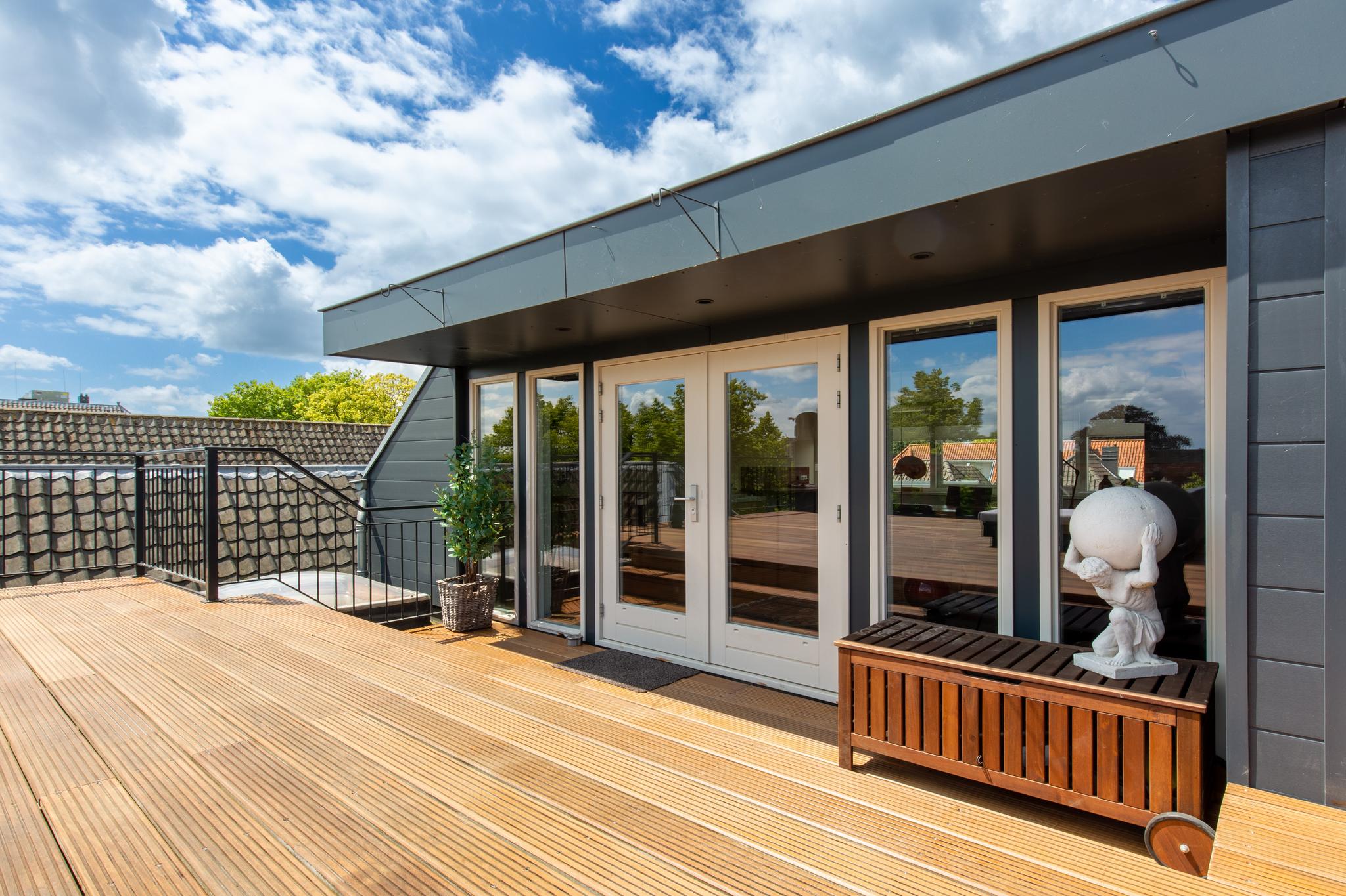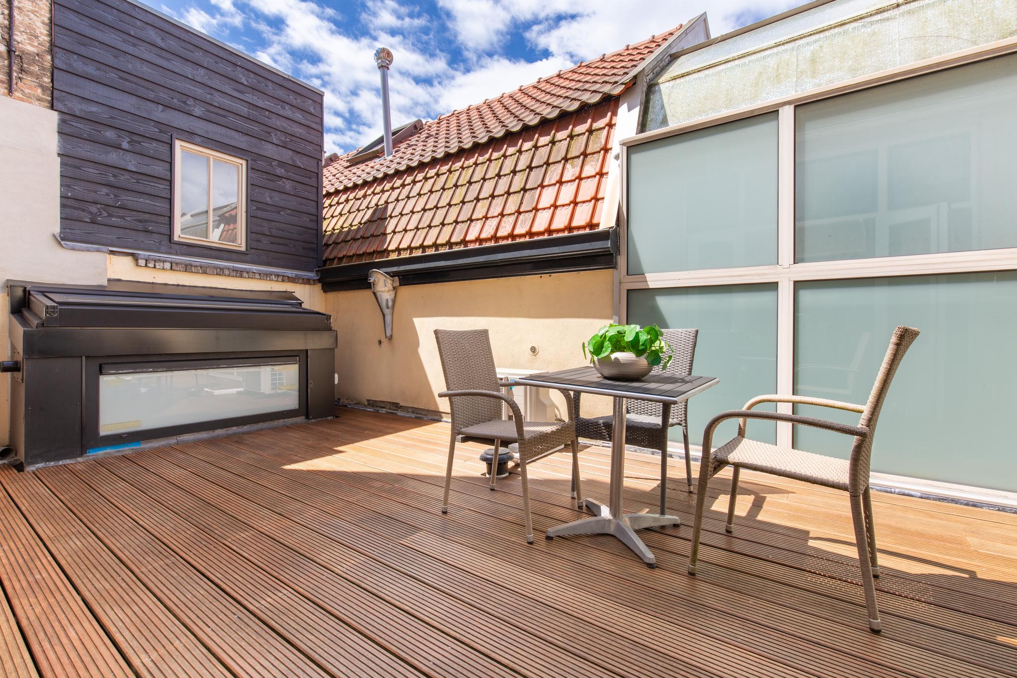 Het dakterras is gelegen op het noordwesten en biedt veel privacy. Dit is een heerlijke plek om 's zomers buiten te eten of na te tafelen, maar dat kan uiteraard ook op het royale dakterras, daar straks meer over!